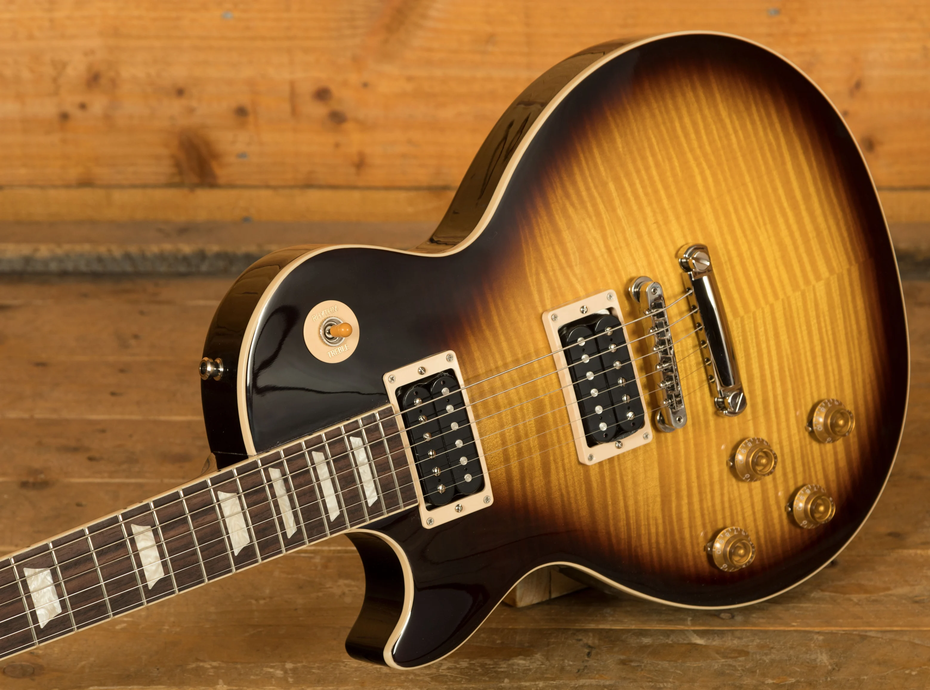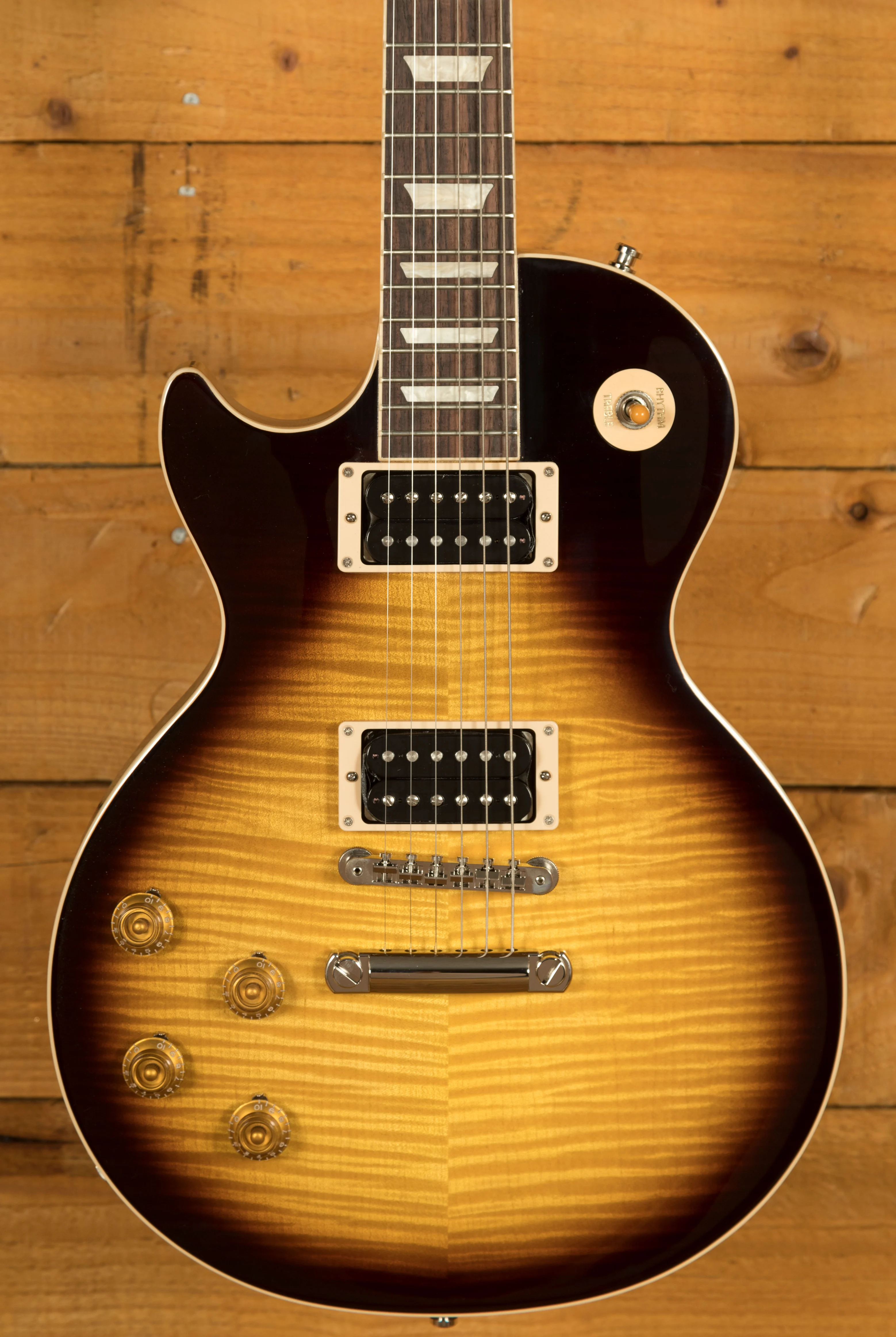 With a Solid Mahogany body it rocks a AAA Flame Maple top for that all time ultimate tonewood combination. Available in 4 prominent Slash finishes, November Burst, Appetite Burst, Vermillion Burst and Anaconda Burst these finishes are bold, vivid and the perfect look for a player as standout as Slash.