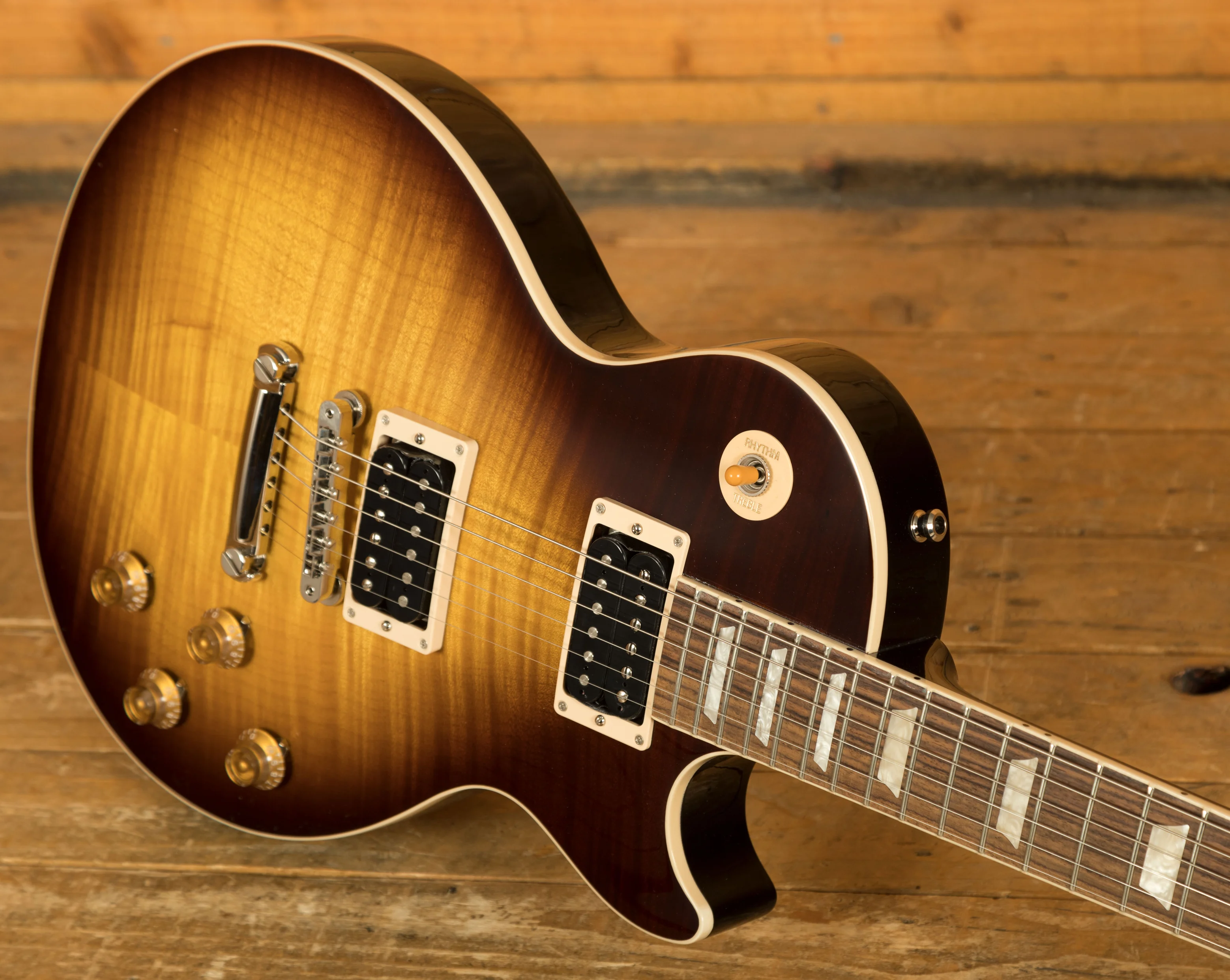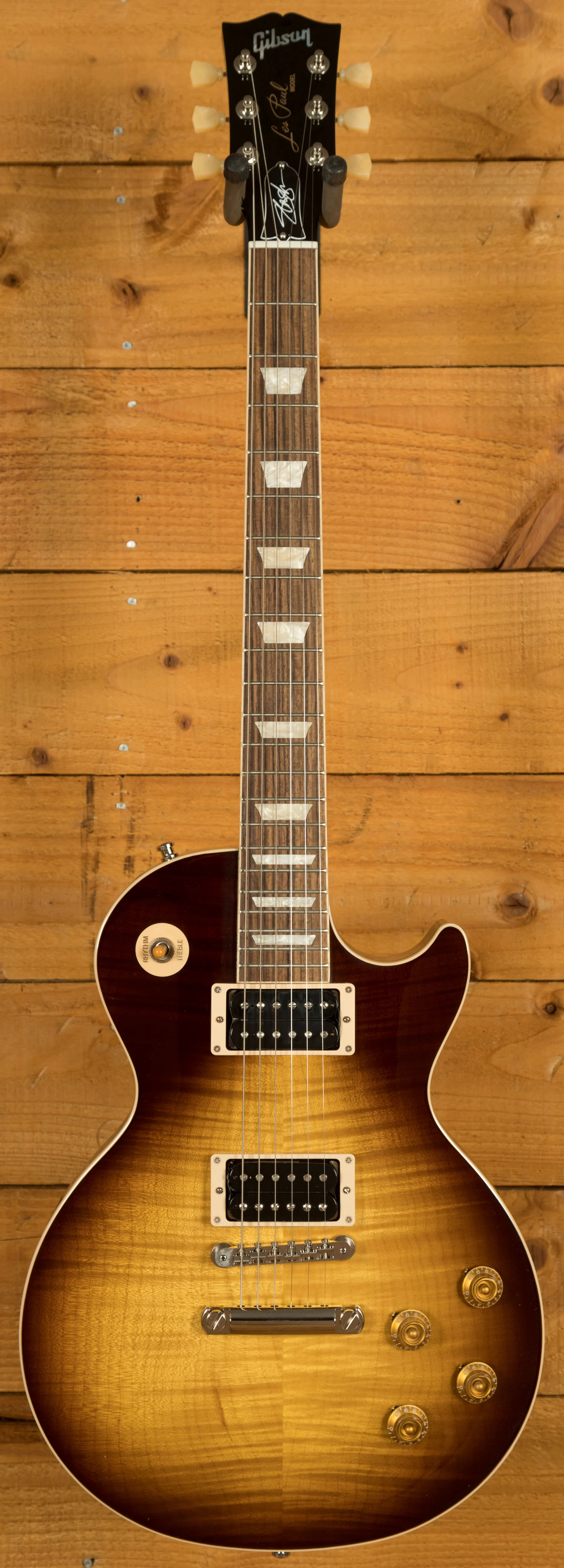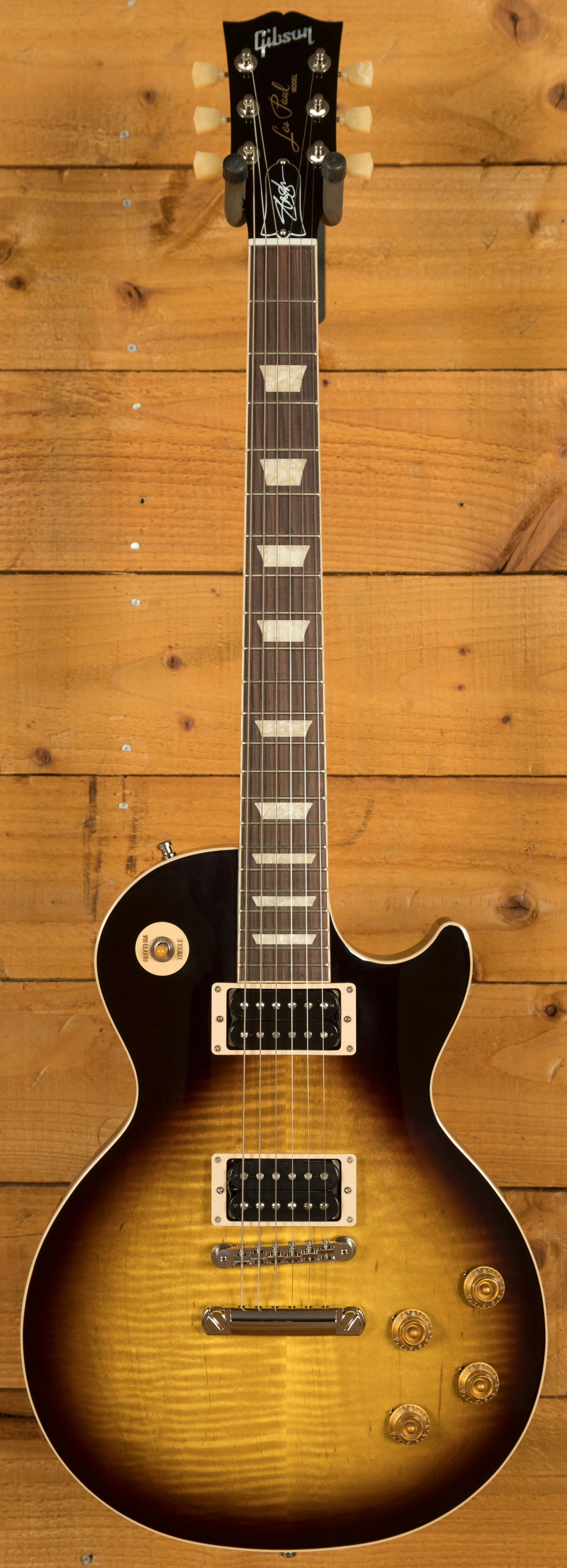 With a Solid Mahogany body it rocks a AAA Flame Maple top for that all time ultimate tonewood combination. Available in 4 prominent Slash finishes, November Burst, Appetite Burst, Vermillion Burst and Anaconda Burst these finishes are bold, vivid and the perfect look for a player as standout as Slash.