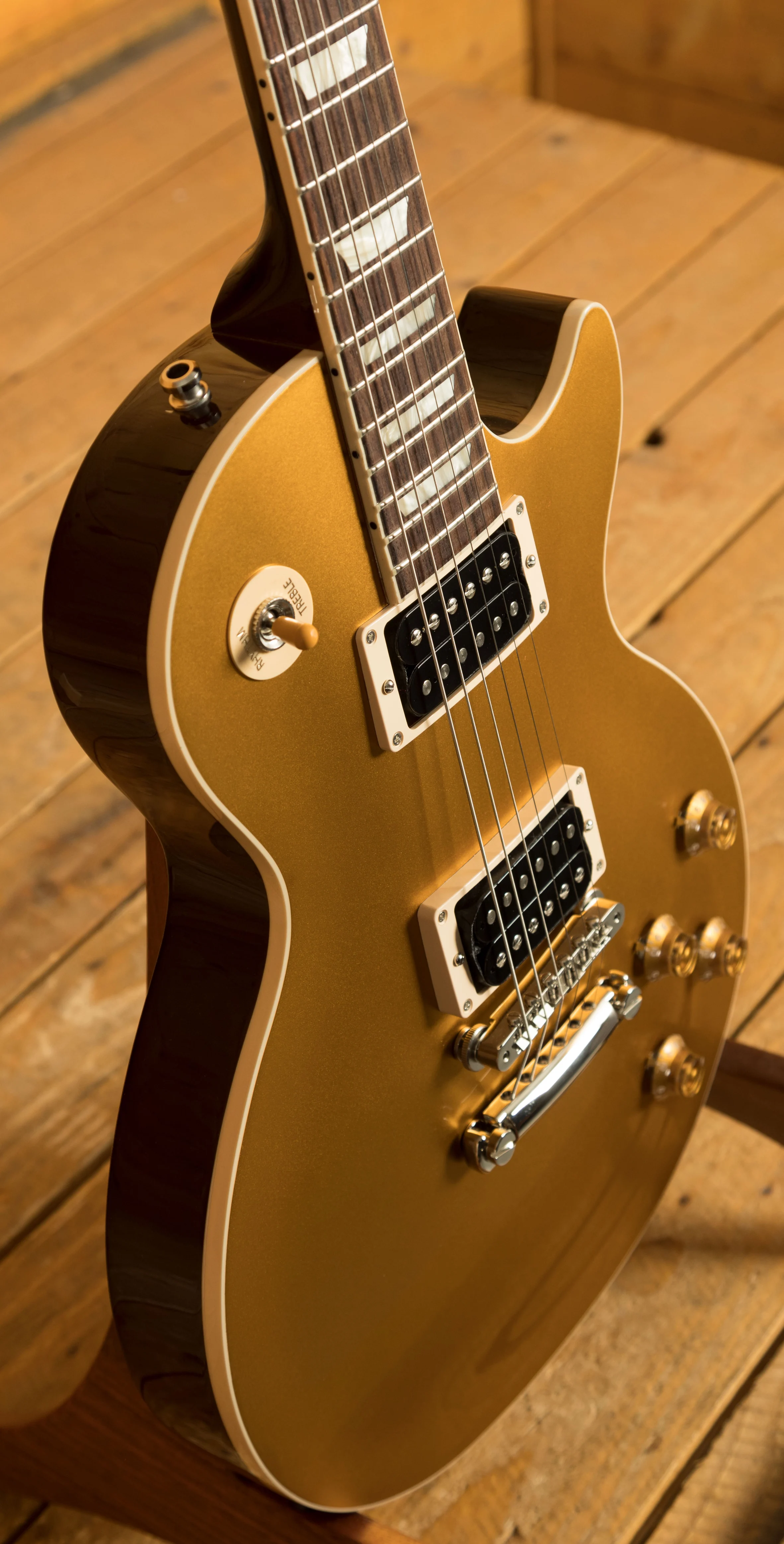 With a Solid Mahogany body it rocks a Maple top for that all time ultimate tonewood combination. The Gloss Nitro Goldtop finish is iconic, bold, vivid and the perfect look for a player as standout as Slash.