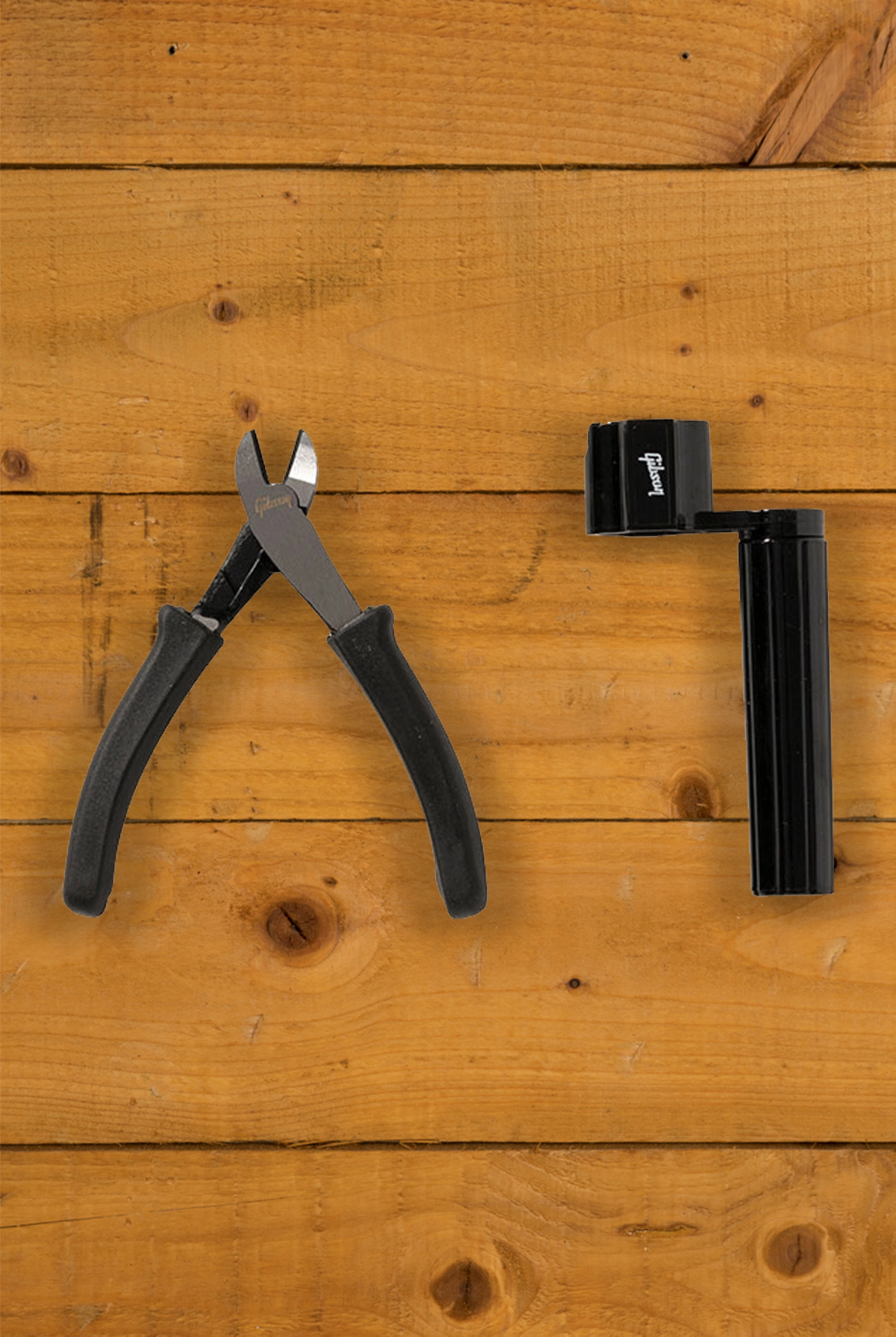 The Gibson String Change Kit includes all the tools you need to change your guitar strings like a pro. The heavy-duty string winder features a high-quality axle that allows for smooth, wobble-free rotations, a jumbo-sized grip, and a handy built-in bridge pin puller. The sharp, pro-quality string cutters feature ultra-soft grips that are built for comfort, making string changes simple. This kit is an essential accessory for any player's guitar case.