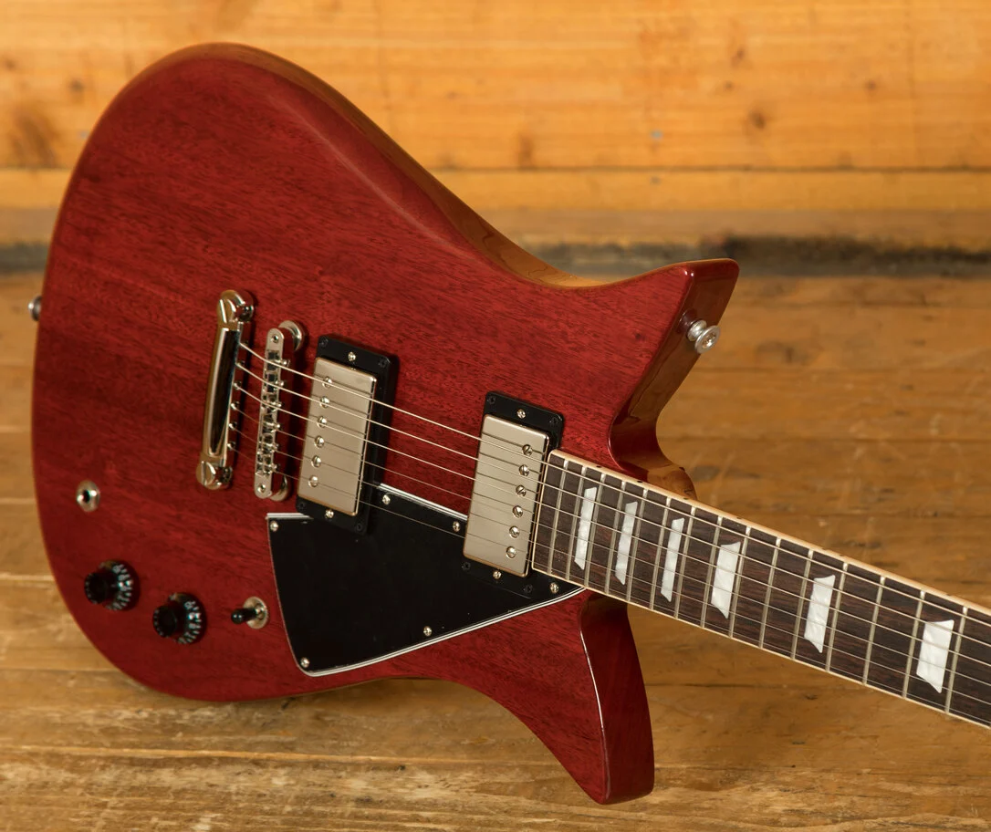 The Gibson USA Theodore standard features a lightweight Mahogany body finished with a visually stunning Vintage Cherry nitro lacquer, it looks super slick and really captures the feel and aesthetics associated with Gibson’s golden era. It is well weighted and super comfortable to play, just as every Gibson should be.