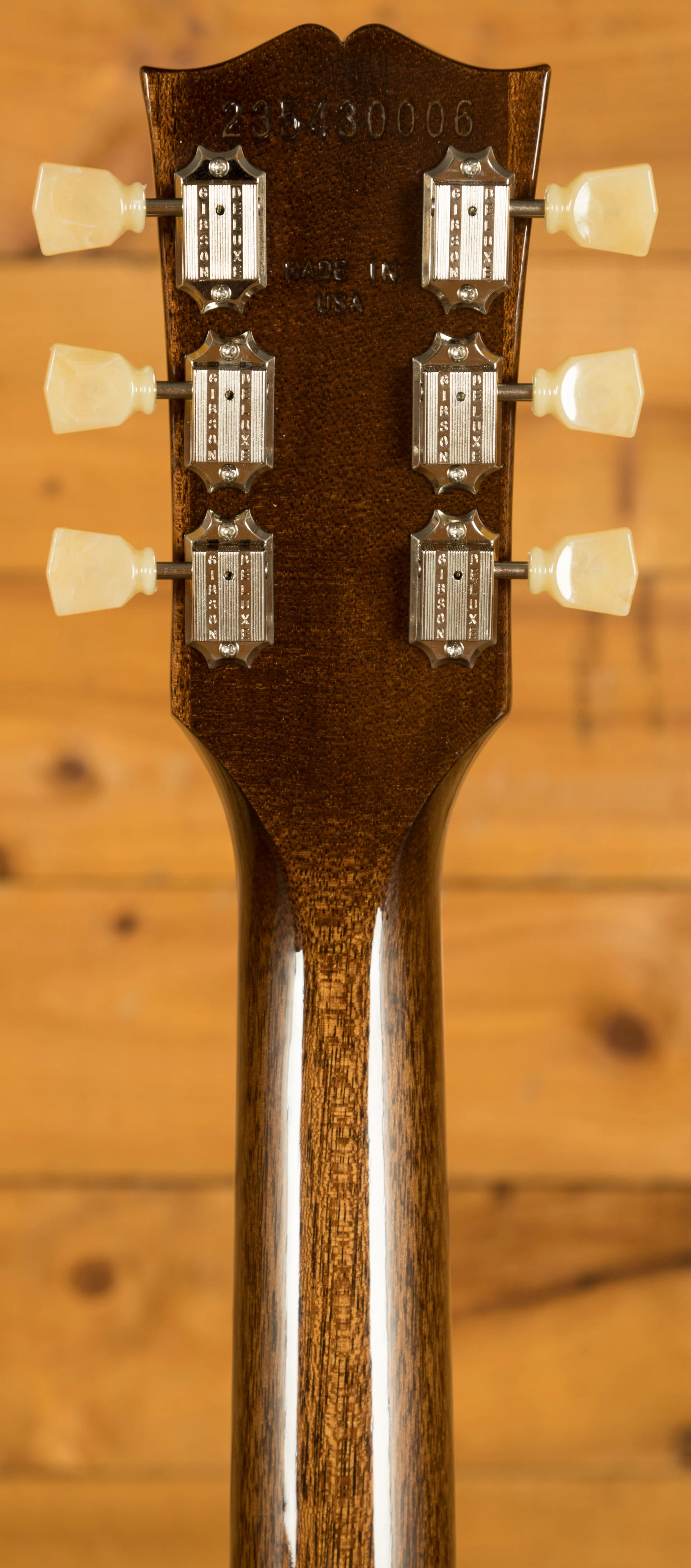 The Mahogany neck features a Rosewood fingerboard, Rounded C profile, 12" radius and classic vintage Gibson Split Parallelogram inlays. It is a brilliant platform for both lead and chords