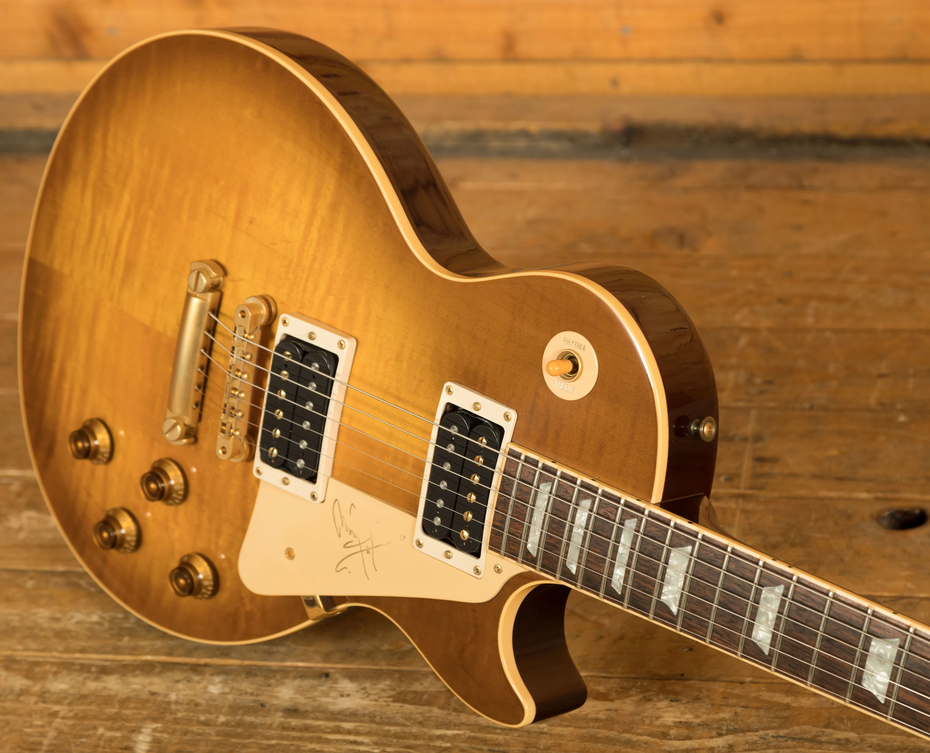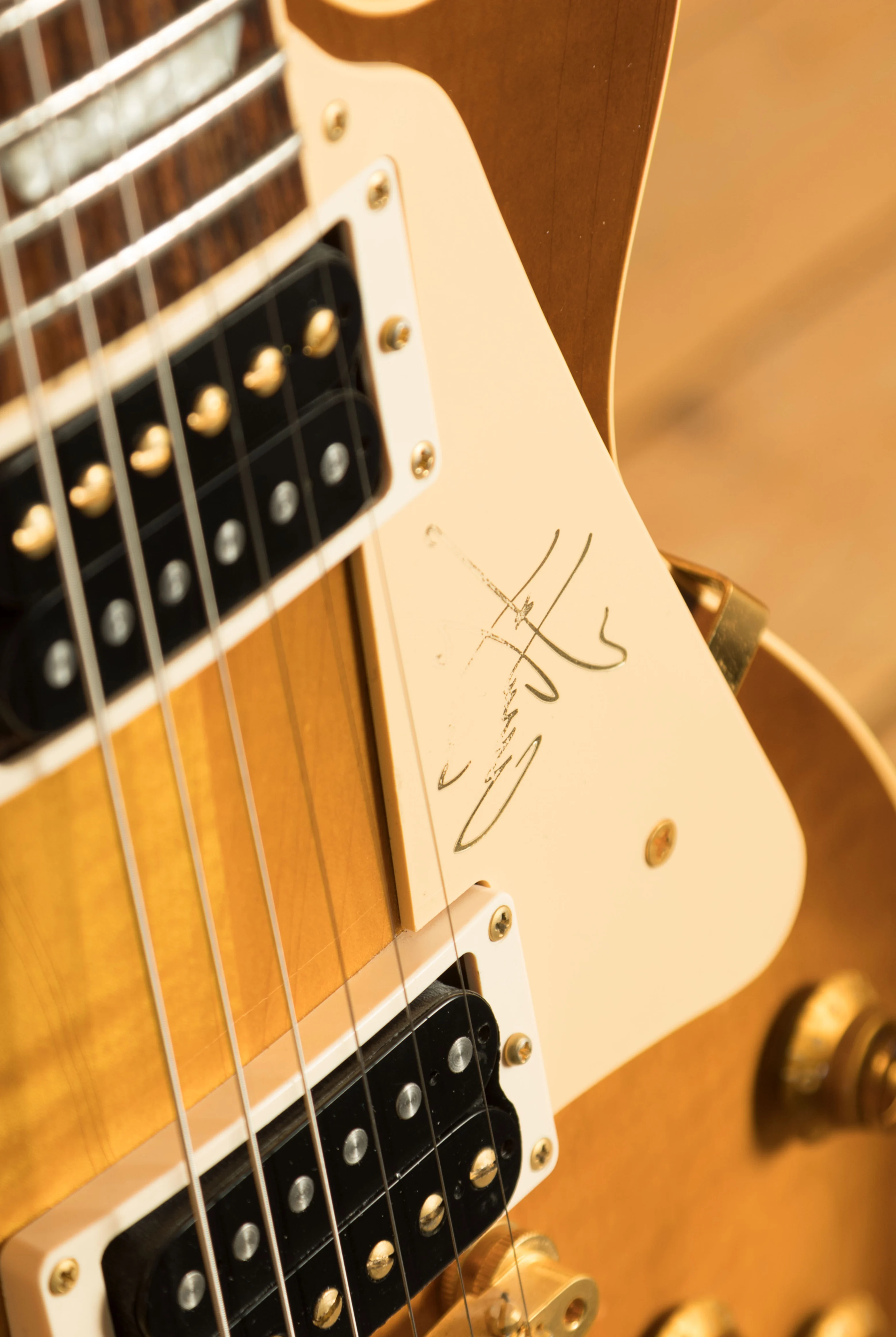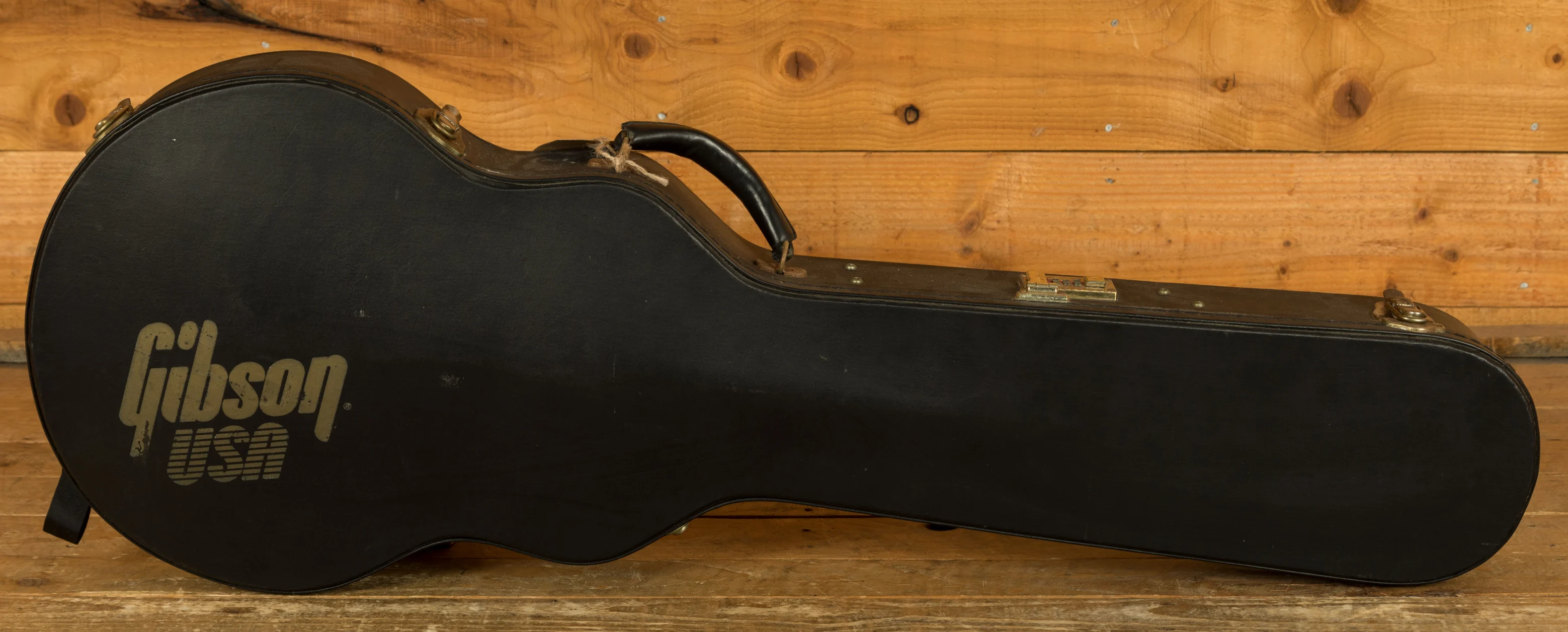 This used Gibson USA Jimmy Page Signature Les Paul Standard is a 1996-built icon, featuring a flame maple top, mahogany body, and custom neck profile with Jimmy Pages signature specs, in fair condition with lots of lacquer checking and lacquer cracking on the headstock but structurally sound, complete with its original hardshell case. Professionally set up by our skilled luthiers, this Les Paul delivers the iconic tone of a rock legend.