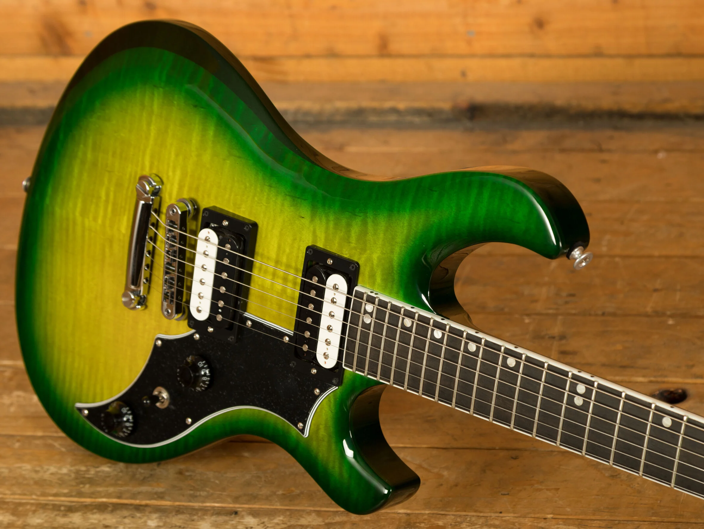 The Gibson Victory Figured begins with a lightweight Mahogany body, its extremely well weighted and feels great to play both sitting down and standing up. With refined body contours, alongside a 2A Figured Maple top finished with a vibrant Iguana Burst stain, the Victory Figured embraces its Gibson heritage looks truly stunning!