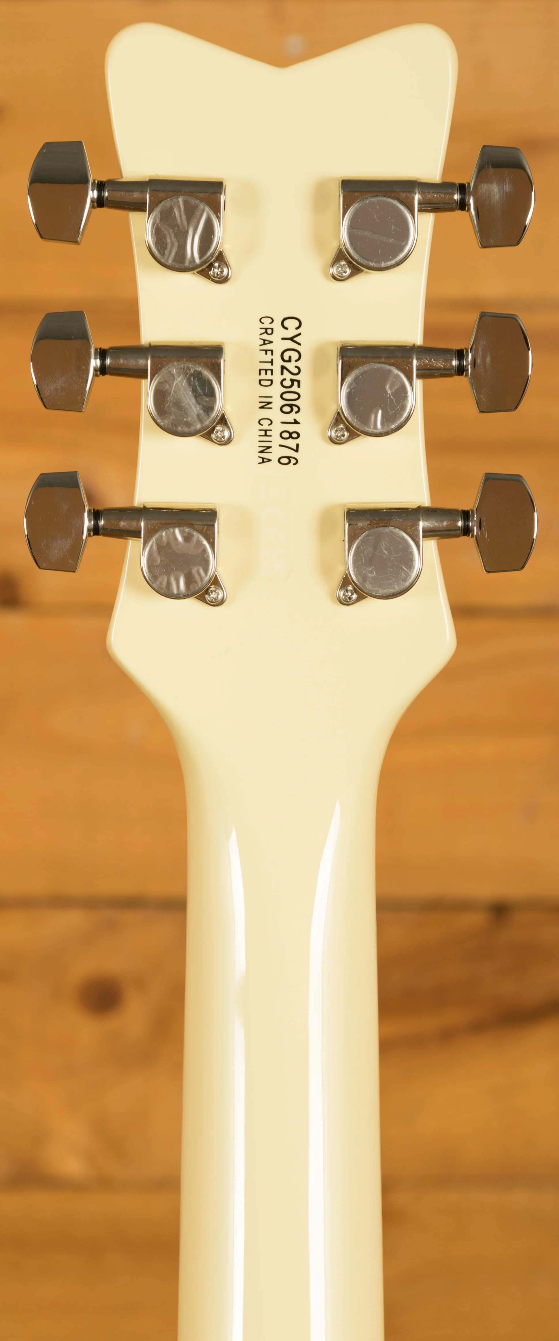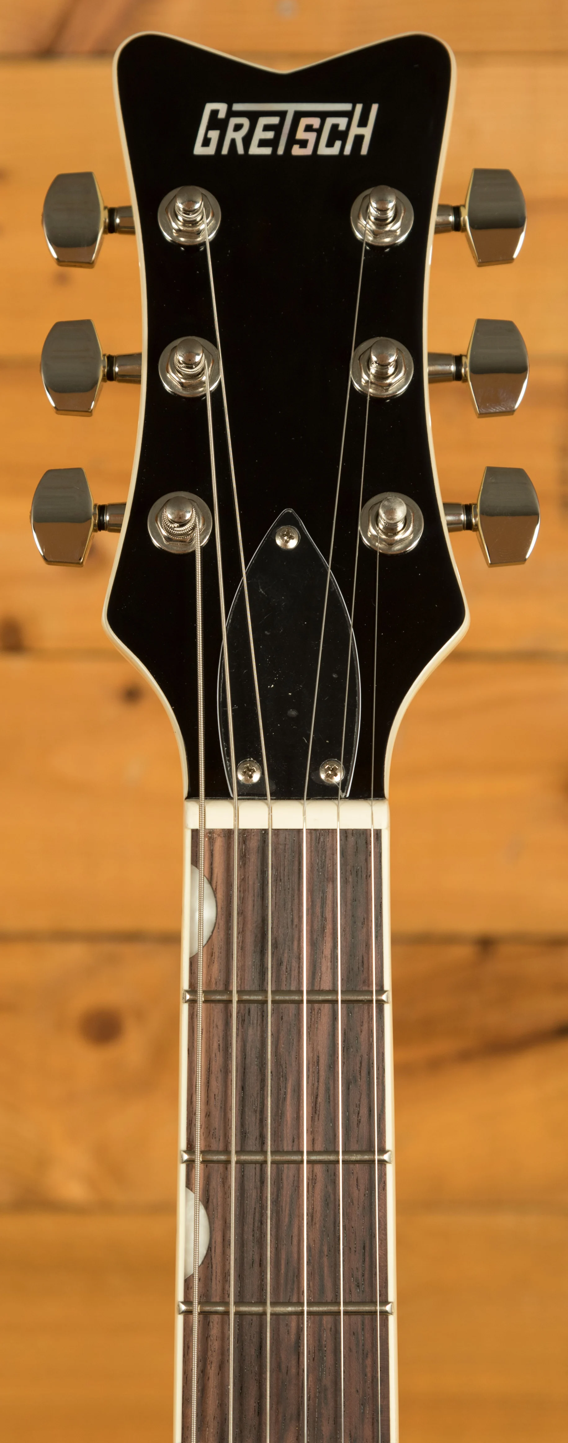 The Gretsch Electromatic Jet Club delivers the authentic Gretsch tone and performance that players expect, with a focus on precision, playability, and reliability. Its chambered mahogany body produces a full, resonant sound with strong attack and excellent balance, while the sculpted contours and rounded neck heel enhance comfort and provide easy upper-fret access. The result is an instrument that feels natural in any playing position, offering both ergonomic design and a dynamic tonal foundation suited to any style.