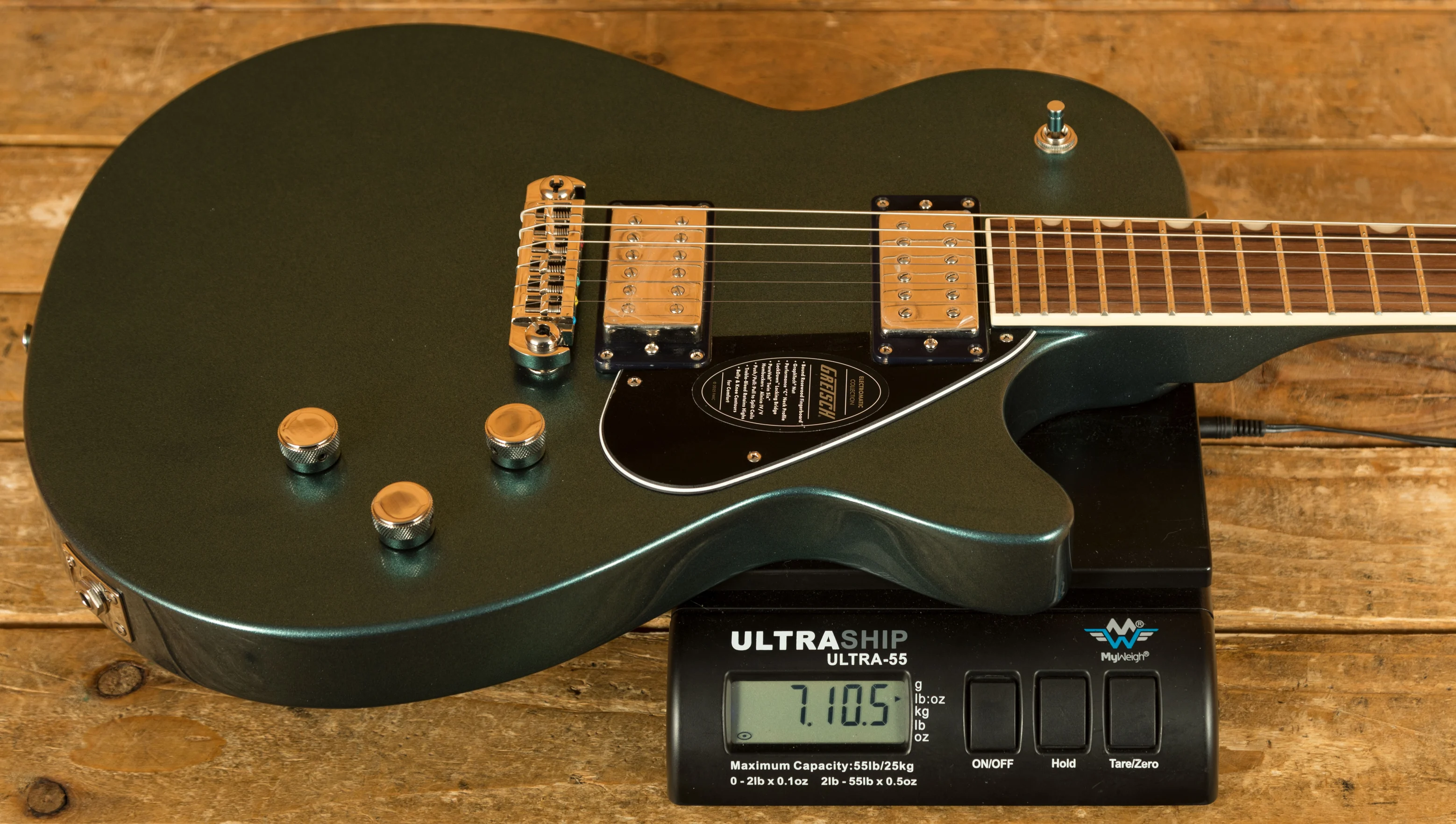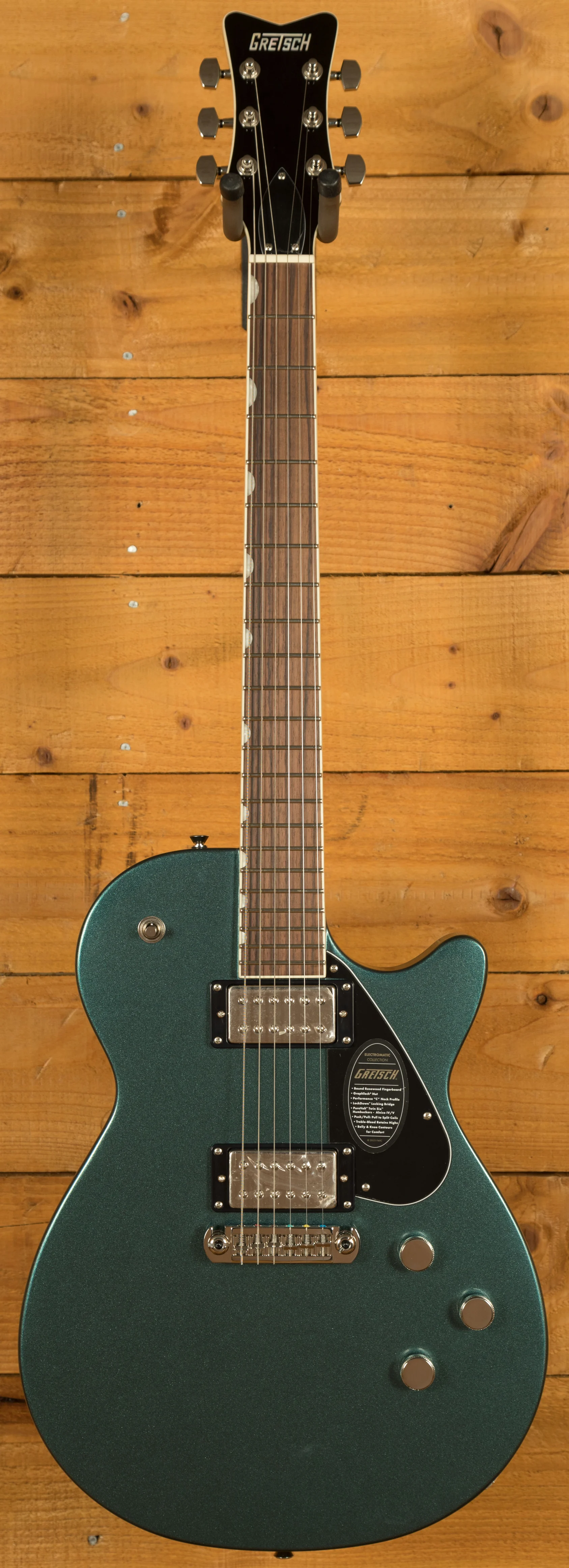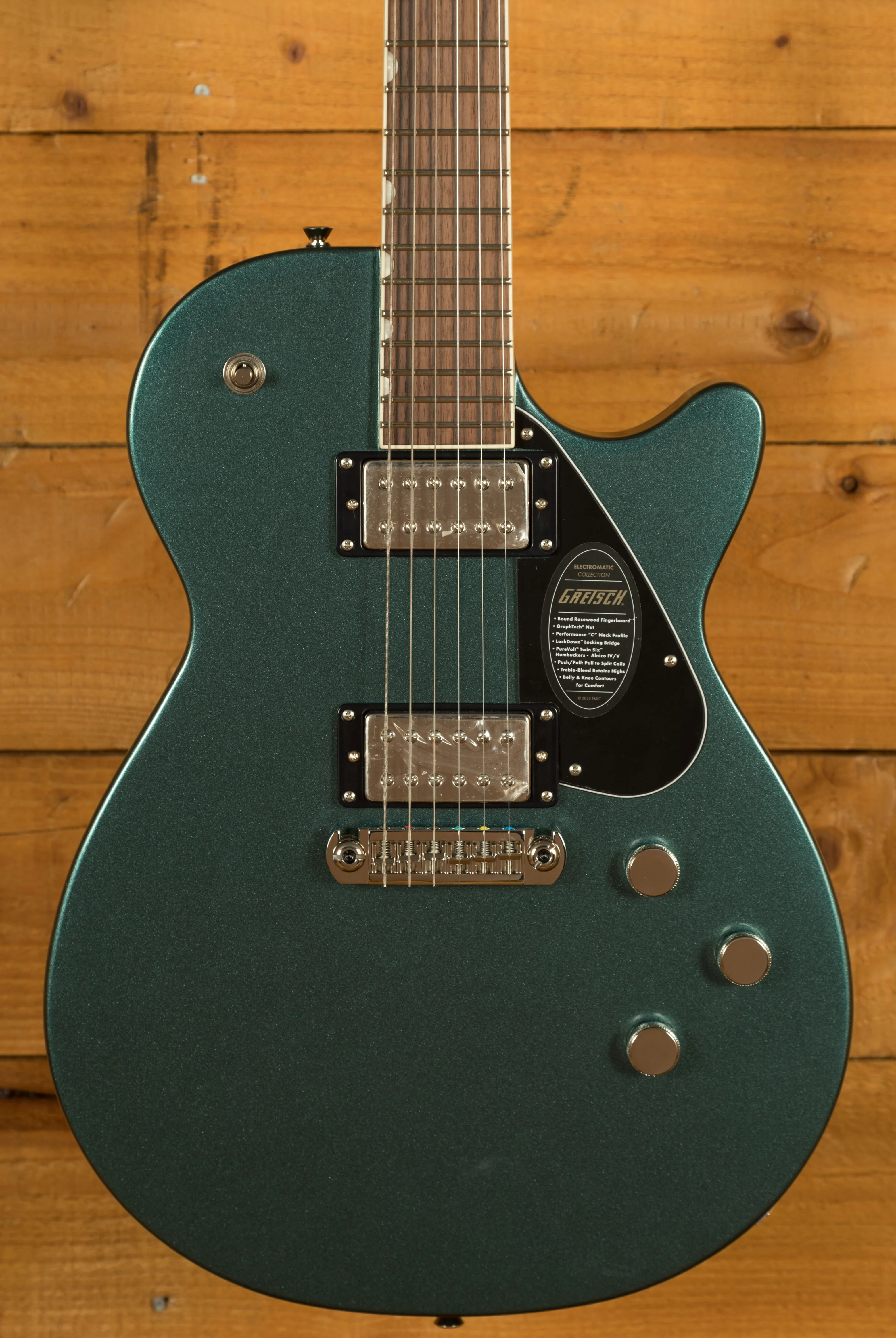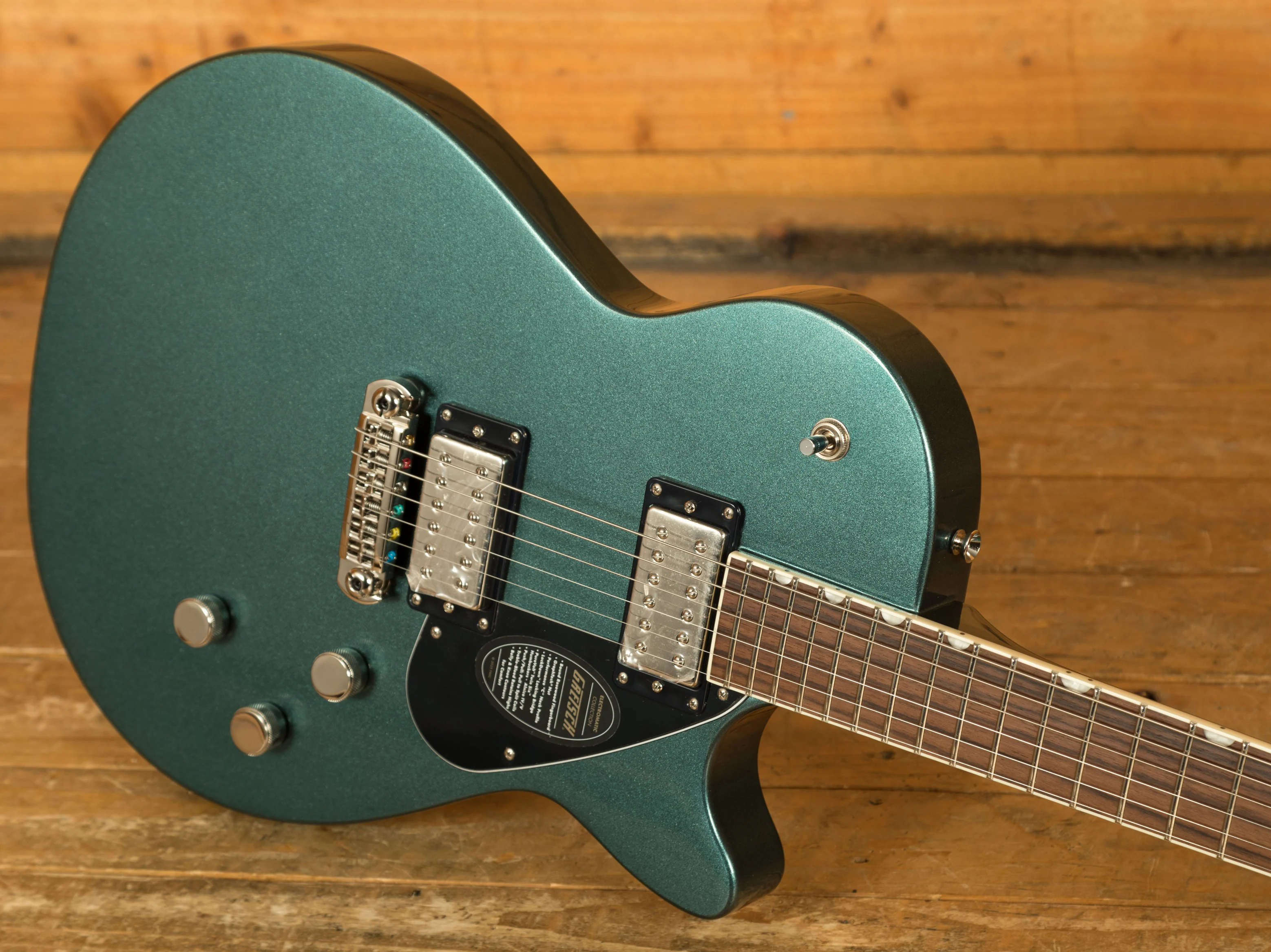 Equipped with PureVolt Twin Six humbuckers, the Electromatic Jet Club delivers a broad tonal range from articulate cleans to powerful overdrive. Each pickup features adjustable pole pieces and Alnico magnets, providing excellent clarity, output, and flexibility. The advanced electronic circuit includes a master volume with treble bleed for consistent brightness at lower volumes, individual tone controls for precise shaping, and push/pull coil-splitting for true single-coil tones without unwanted noise. Additional features such as the GraphTech NuBone nut ensure stable tuning and long-lasting sustain, while the Lockdown adjustable wraparound bridge enhances resonance, sustain, and intonation accuracy. Every element of the Electromatic Jet Club is designed to provide dependable performance, tonal versatility, and lasting quality.
