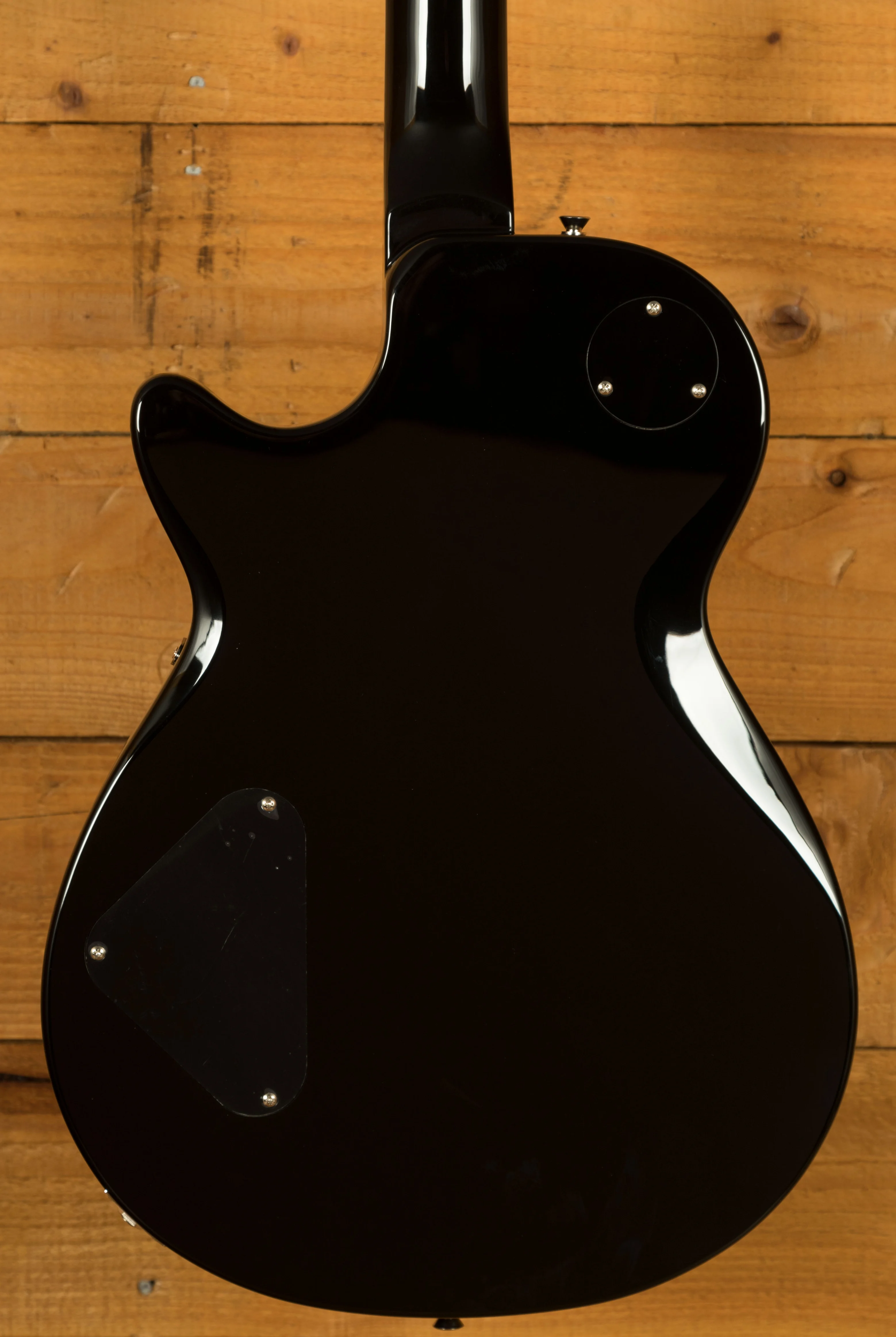 The chambered mahogany body with a bound carved maple top creates a resonant and balanced tone, offering strong lows, clear highs, and a defined midrange presence. Its sculpted forearm and body contours, combined with a rounded heel, ensure a comfortable playing experience and effortless access to higher frets. The mahogany neck features a Performance "C" profile that feels comfortable for any player, while the bound rosewood fingerboard provides a smooth surface and warm tonal character. With a 24.875" scale length, 12" fingerboard radius, and 22 medium jumbo frets, this design supports classic feel and consistent playability across the neck.