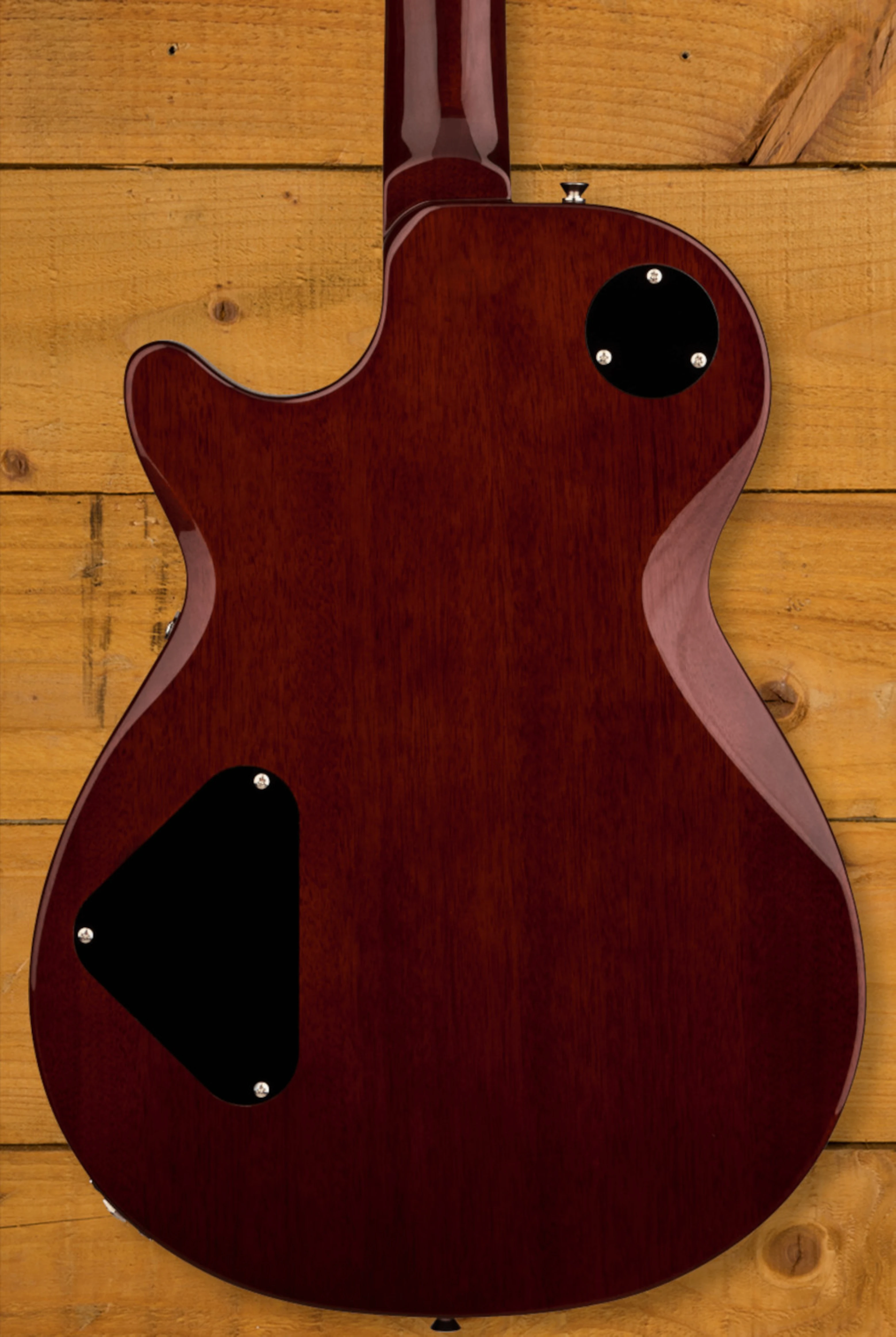 The chambered mahogany body with a bound carved maple top creates a resonant and balanced tone, offering strong lows, clear highs, and a defined midrange presence. Its sculpted forearm and body contours, combined with a rounded heel, ensure a comfortable playing experience and effortless access to higher frets. The mahogany neck features a Performance "C" profile that feels comfortable for any player, while the bound rosewood fingerboard provides a smooth surface and warm tonal character. With a 24.875" scale length, 12" fingerboard radius, and 22 medium jumbo frets, this design supports classic feel and consistent playability across the neck.