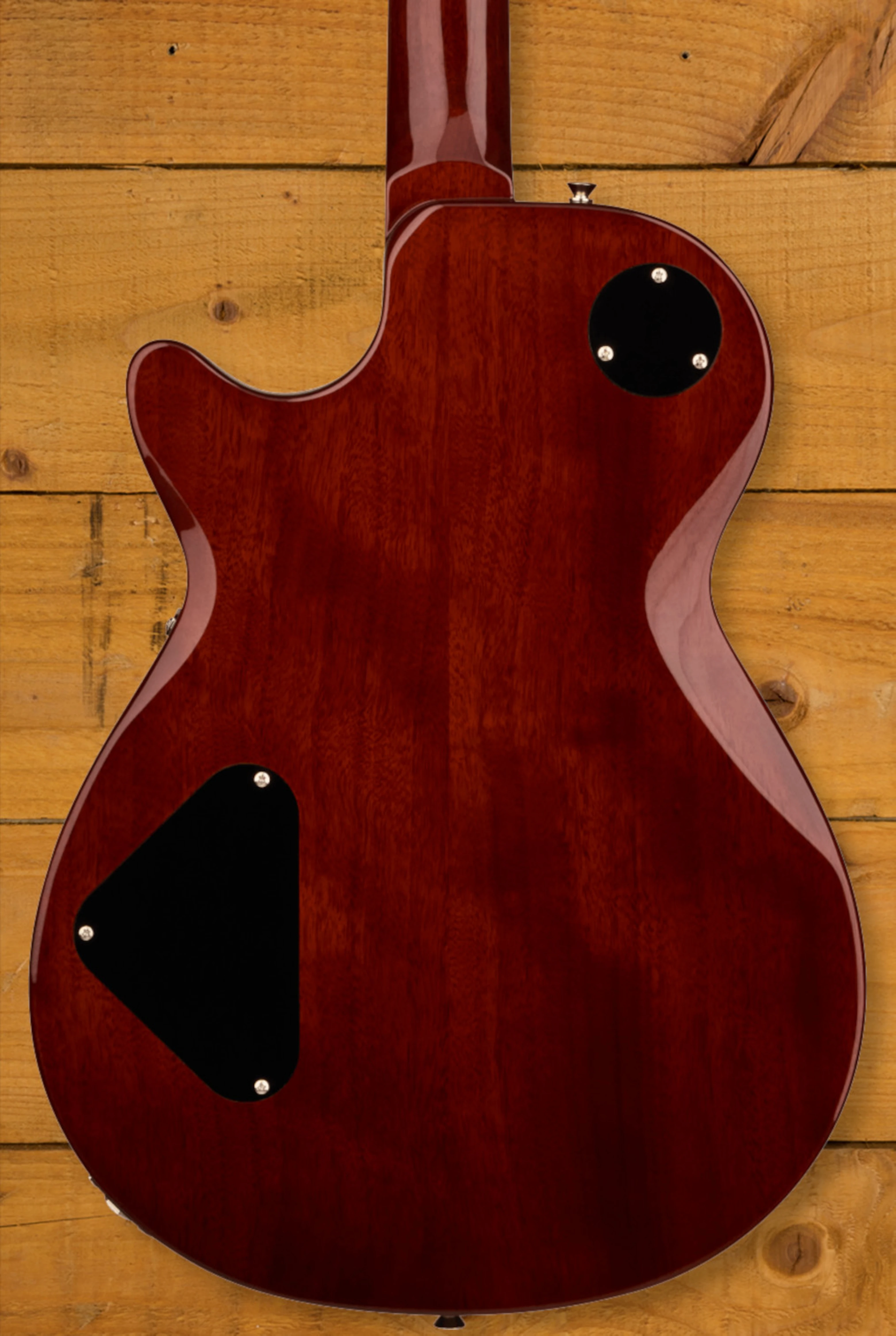 The chambered mahogany body with a bound carved maple top creates a resonant and balanced tone, offering strong lows, clear highs, and a defined midrange presence. Its sculpted forearm and body contours, combined with a rounded heel, ensure a comfortable playing experience and effortless access to higher frets. The mahogany neck features a Performance "C" profile that feels comfortable for any player, while the bound rosewood fingerboard provides a smooth surface and warm tonal character. With a 24.875" scale length, 12" fingerboard radius, and 22 medium jumbo frets, this design supports classic feel and consistent playability across the neck.