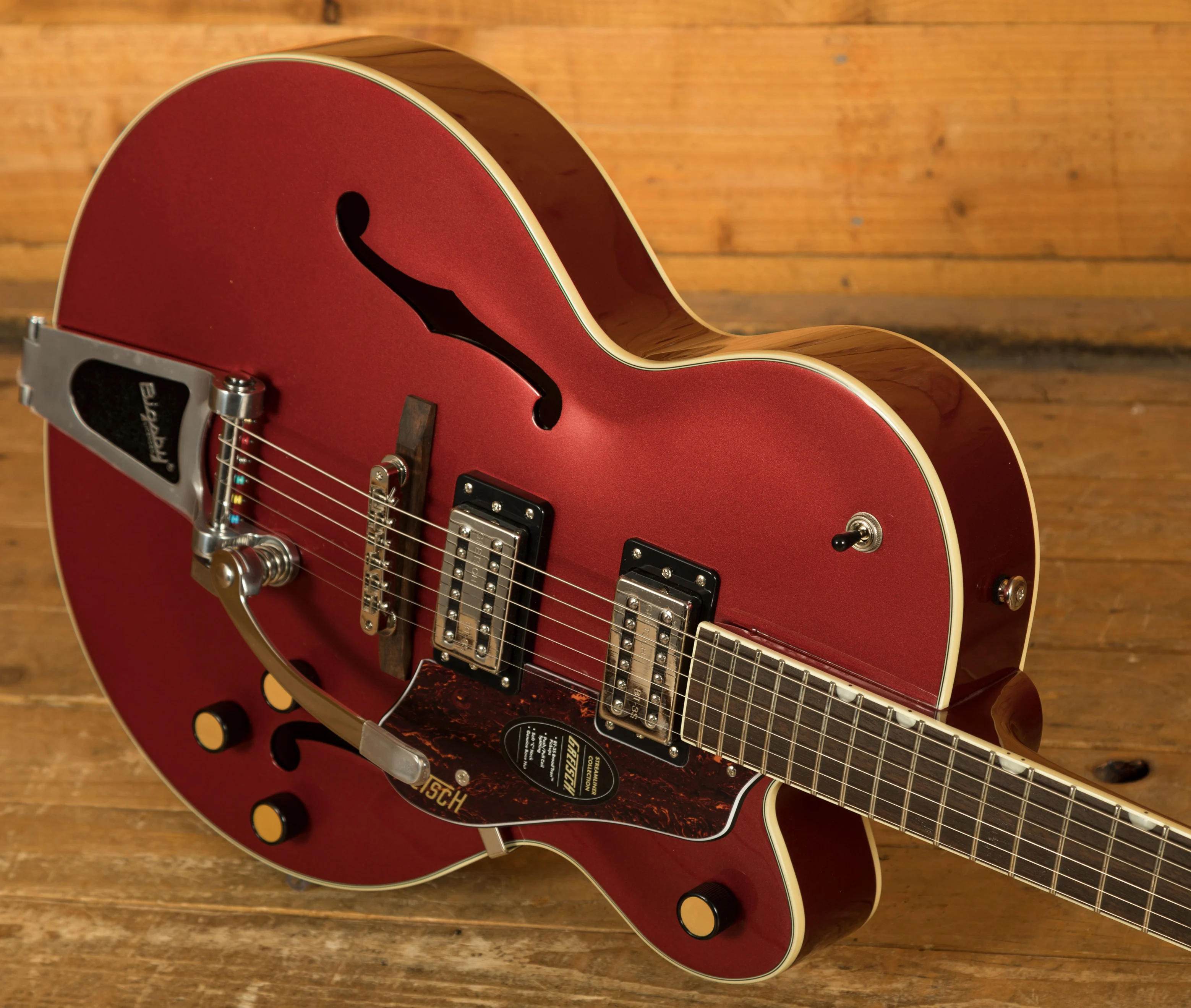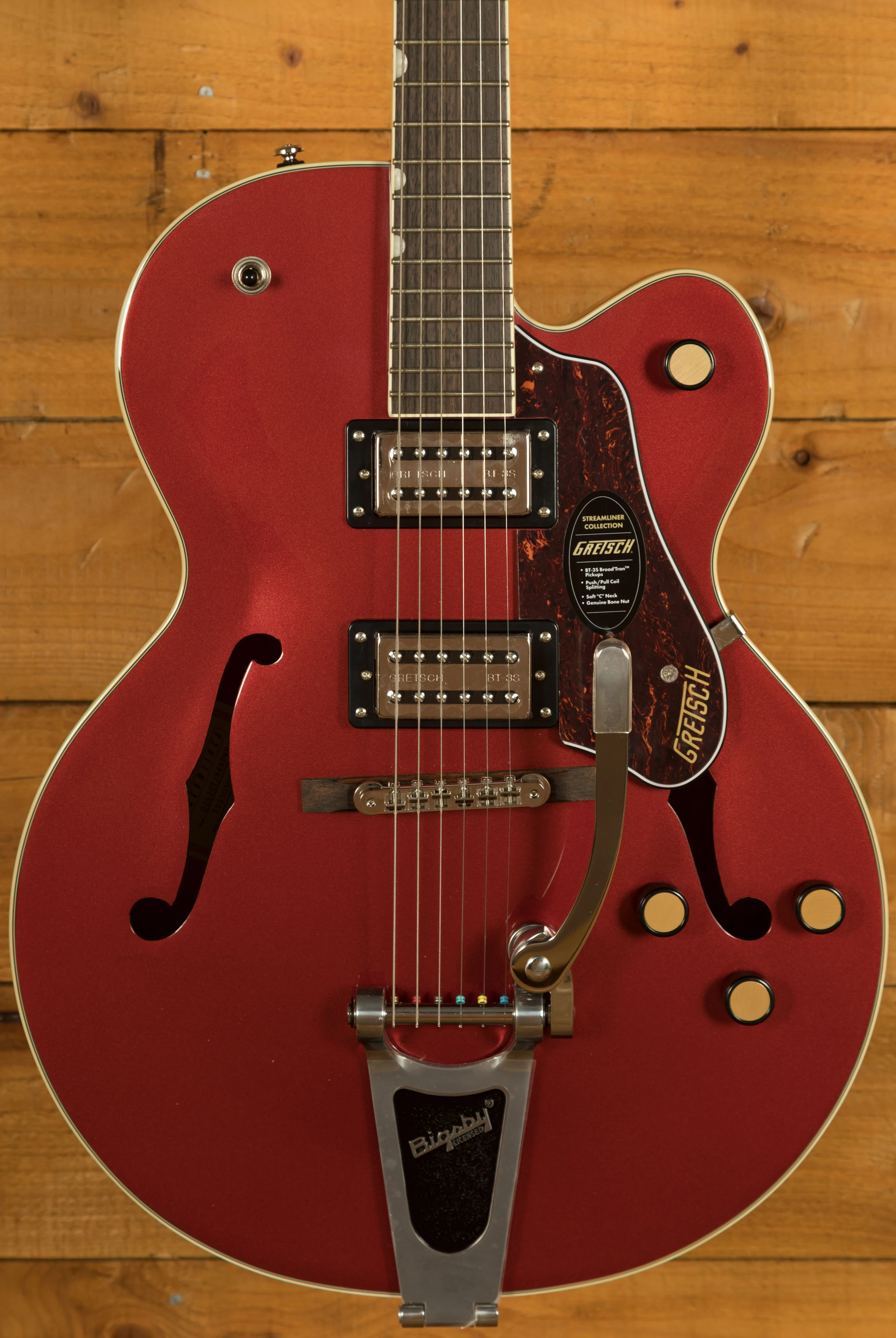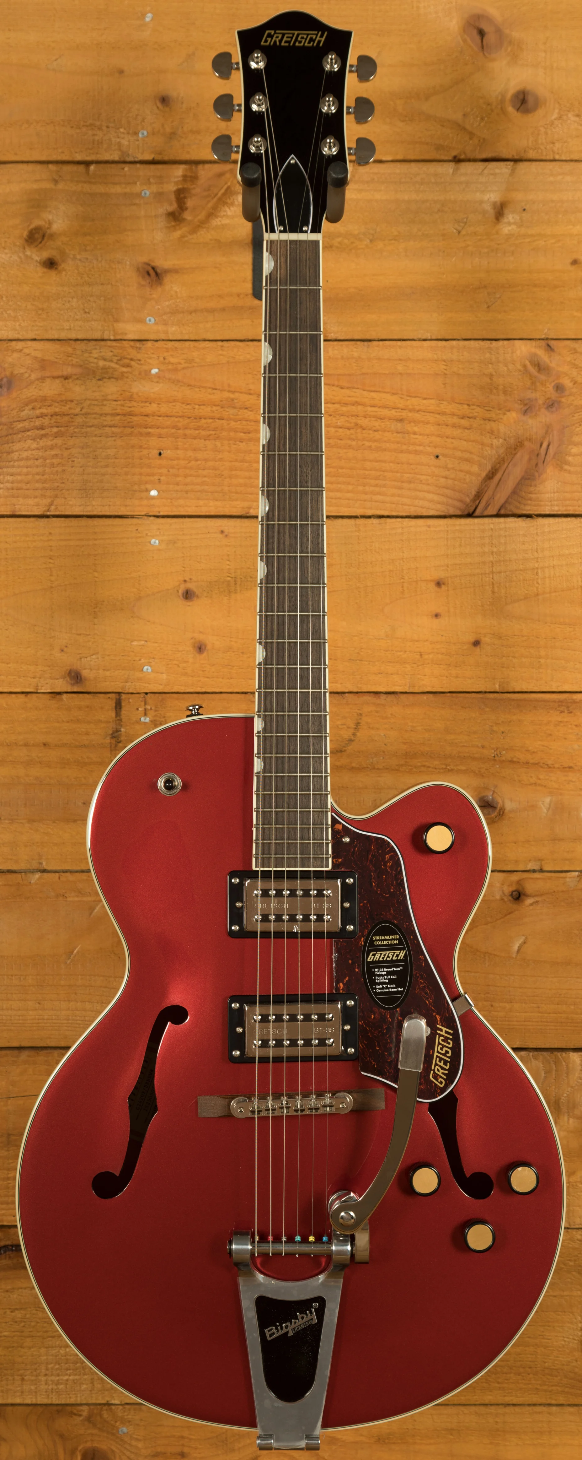 The Gretsch G2420T Streamliner Hollow Body Single-Cut with Bigsby is a versatile electric guitar designed to offer modern performance with classic Gretsch style. Part of the Streamliner Collection, this guitar combines vintage-inspired features with updated technology, making it a perfect choice for today's guitarist. The G2420T delivers outstanding tonal clarity, a smooth playing experience, and a stylish, distinctive appearance.