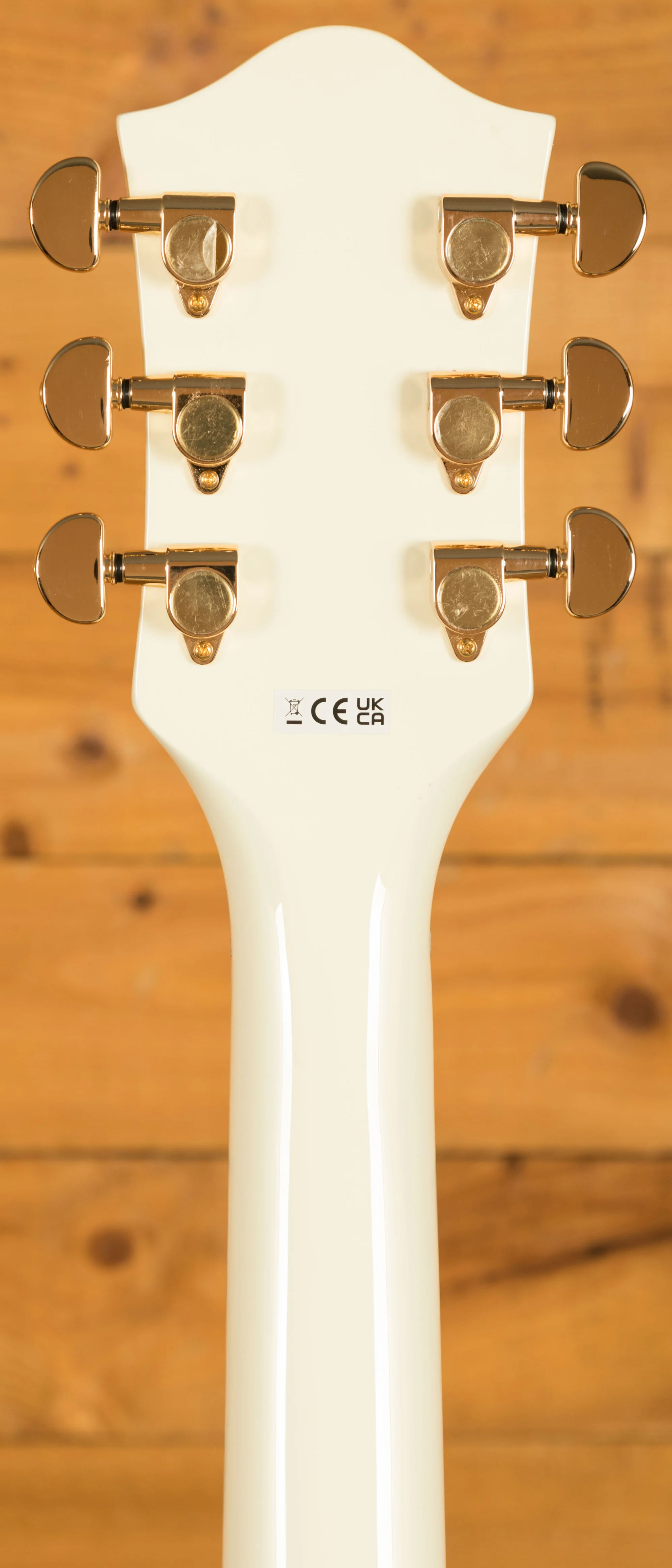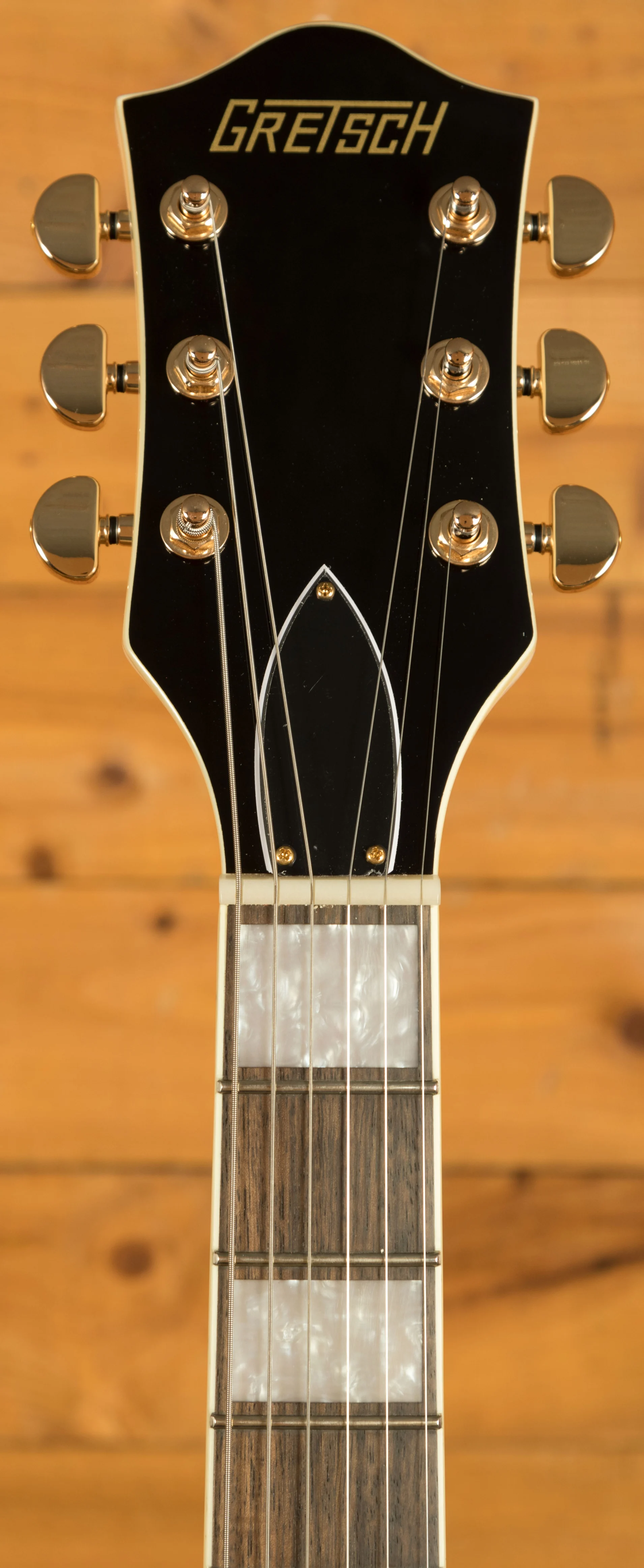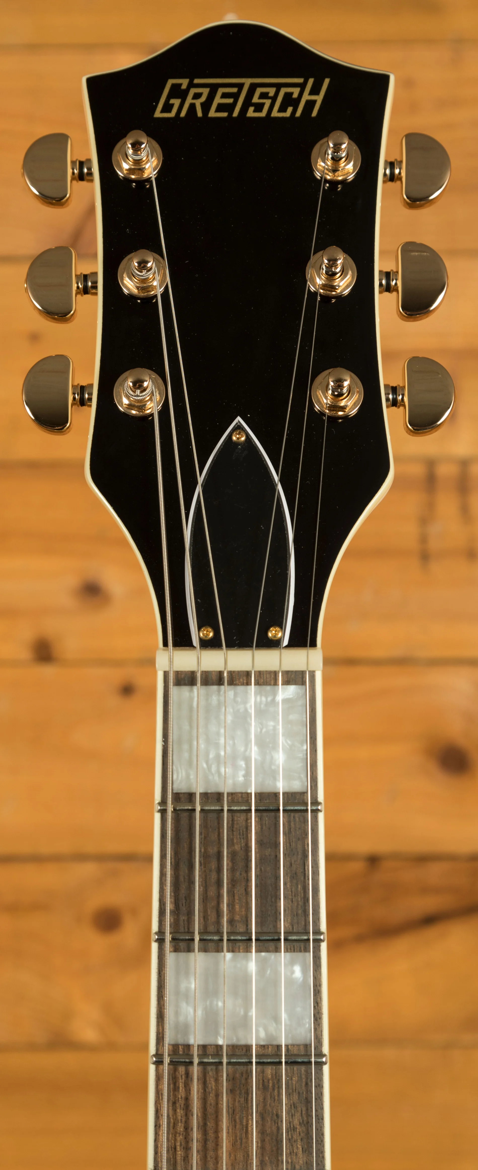 The Limited Edition Gretsch G2420TG Streamliner Hollow Body Single-Cut with Bigsby in Vintage White delivers the rich resonance, bold style and unmistakable character that define classic Gretsch hollow bodies, now enhanced with modern electronics and premium LTD appointments. With its gleaming gold hardware, metal G-Arrow control knobs and pearloid Big Block inlays, this model is built for players who want something beyond the ordinary while retaining the essence of That Great Gretsch Sound.