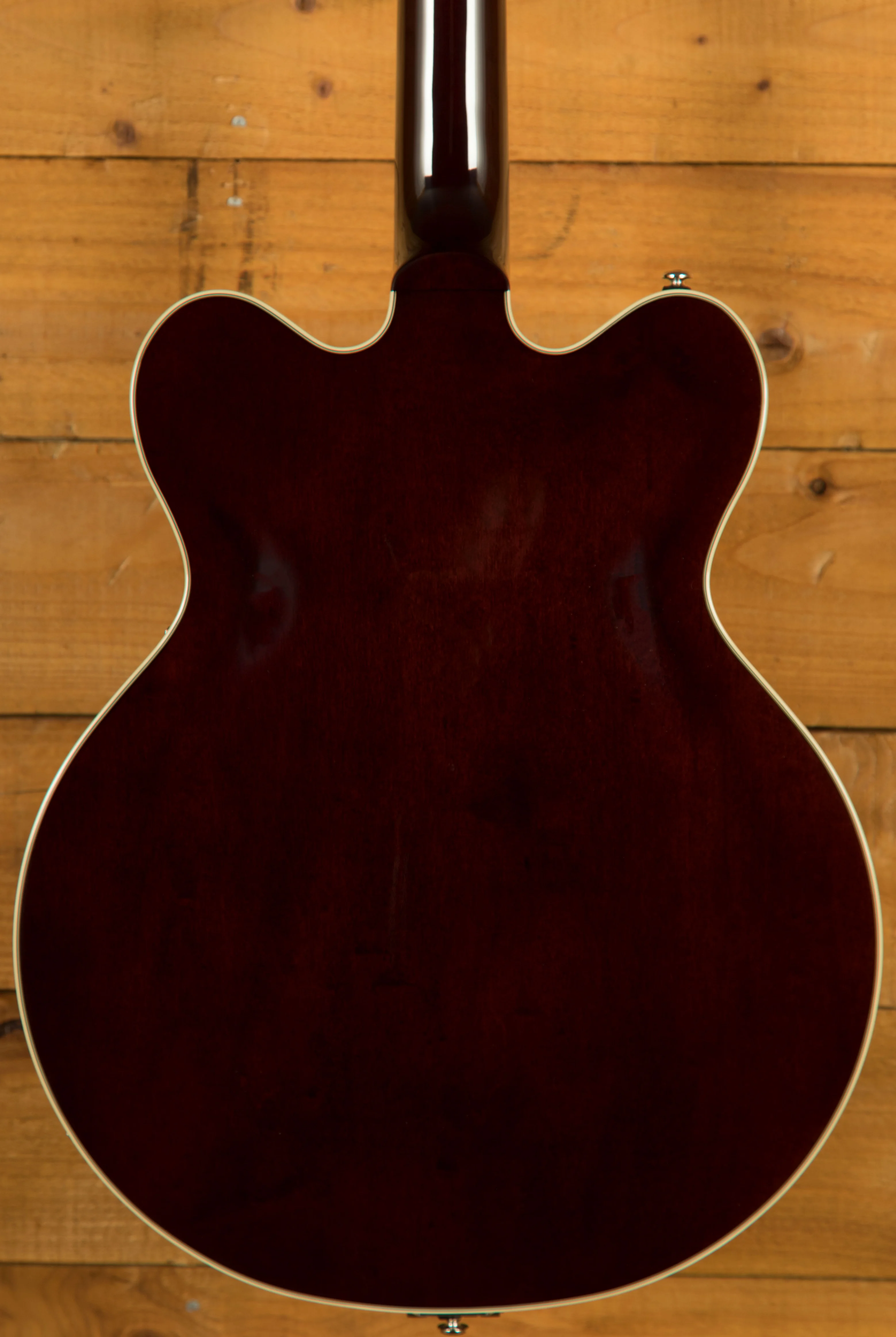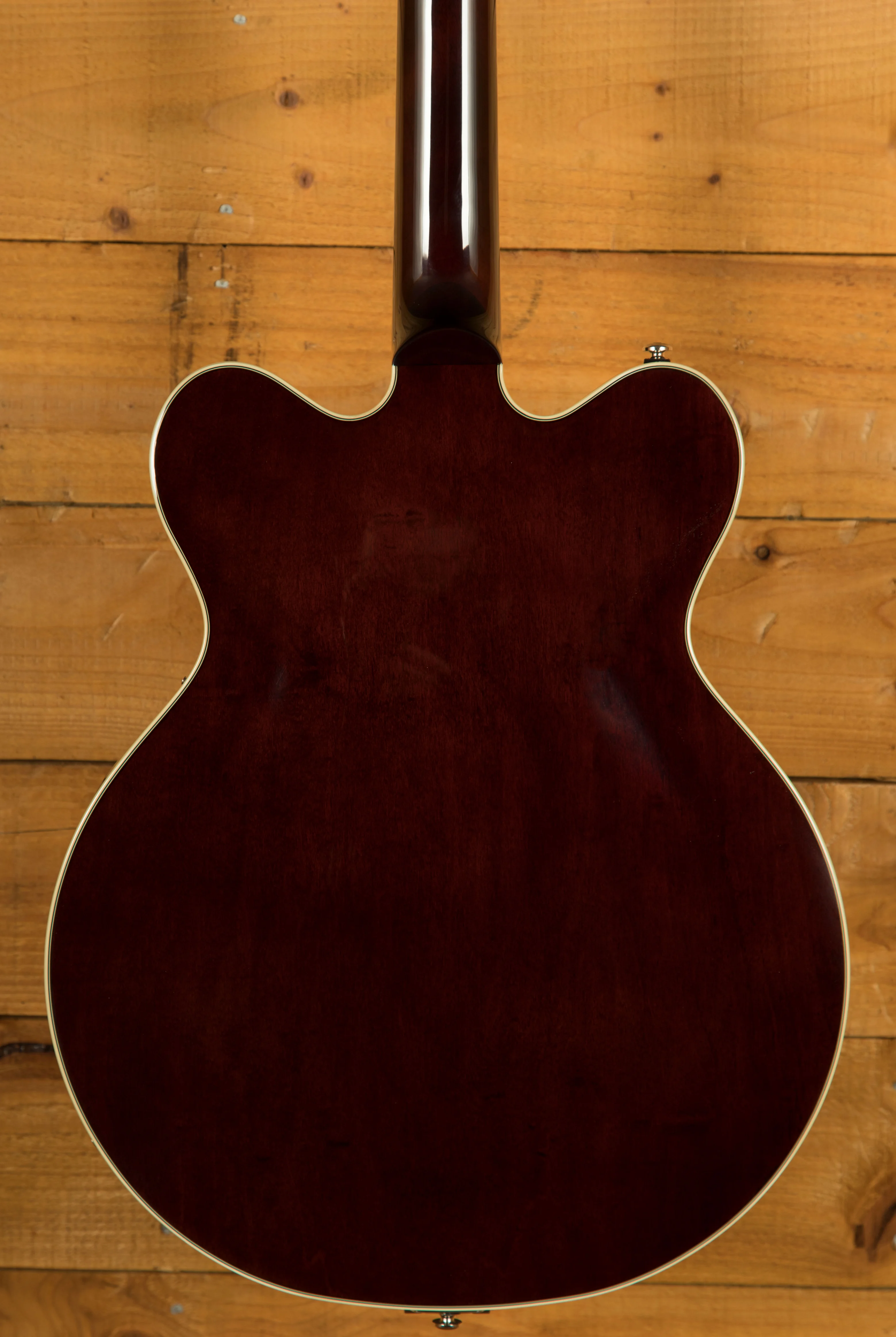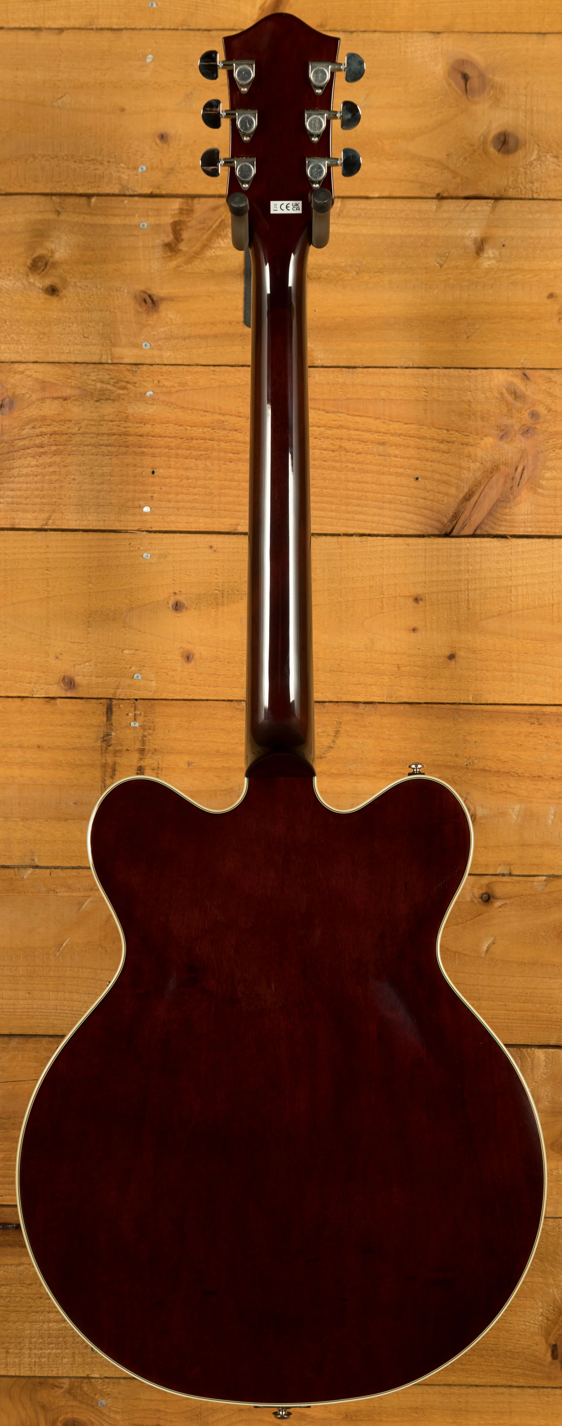 The G2622T also features a master volume, master tone, and individual pickup volume controls, giving players full control over their sound. The push/pull coil-splitting function on the master volume allows for even greater tonal flexibility, enabling the player to switch between humbucking and single-coil sounds. Additionally, the guitar is equipped with an anchored Adjusto-Matic bridge for superior tuning stability and a Bigsby B70 vibrato tailpiece, providing smooth pitch-bending capabilities. Other thoughtful details include a three-ply tortoise pickguard and nickel hardware, which add both durability and aesthetic appeal to the instrument.