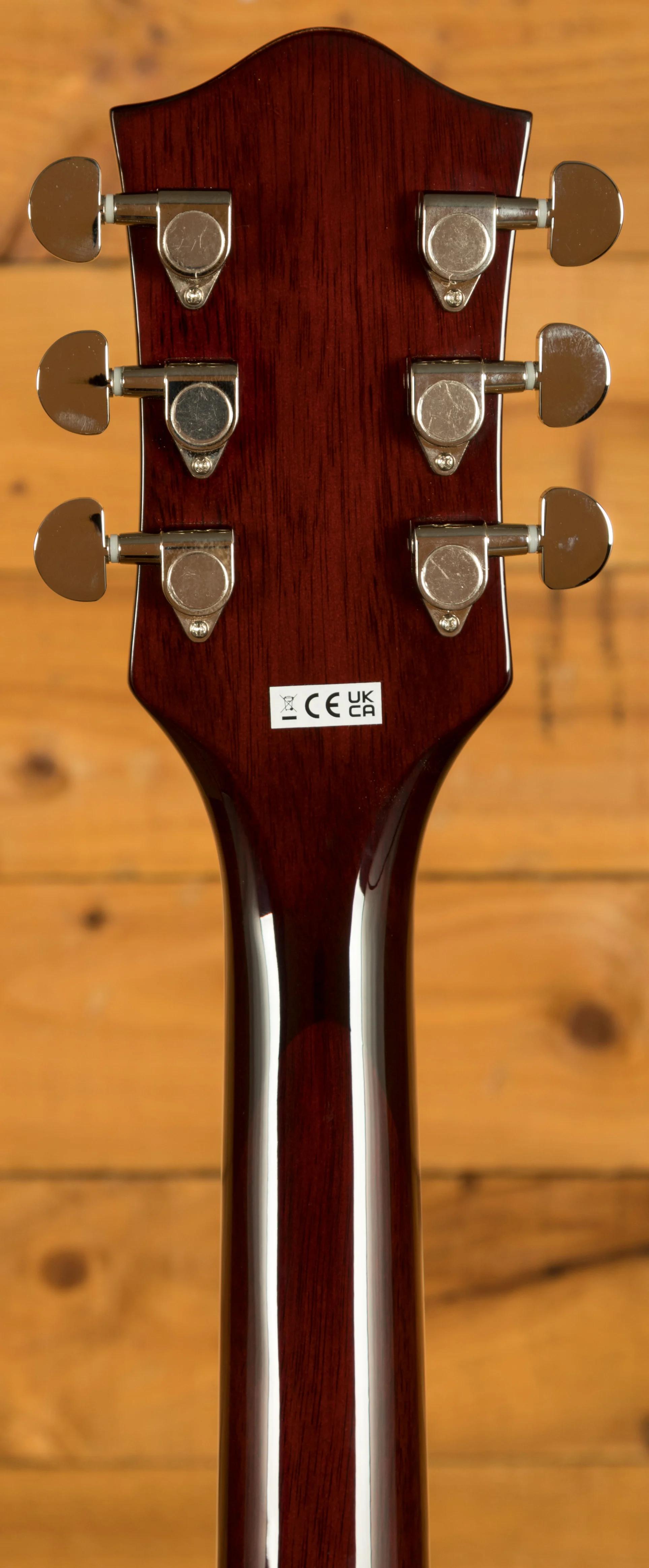 The guitar's double-cutaway 16" arched maple body is equipped with a chambered centre block, which enhances sustain and reduces feedback, making it ideal for high-volume performances. The soft "C" shaped nato neck provides comfort and ease of playability, while the 12"-radius laurel fingerboard, complete with pearloid Neo Classic thumbnail inlays, offers a smooth playing surface. The 22 medium jumbo frets make it easy to navigate the fretboard, providing ample space for both chord work and lead solos.