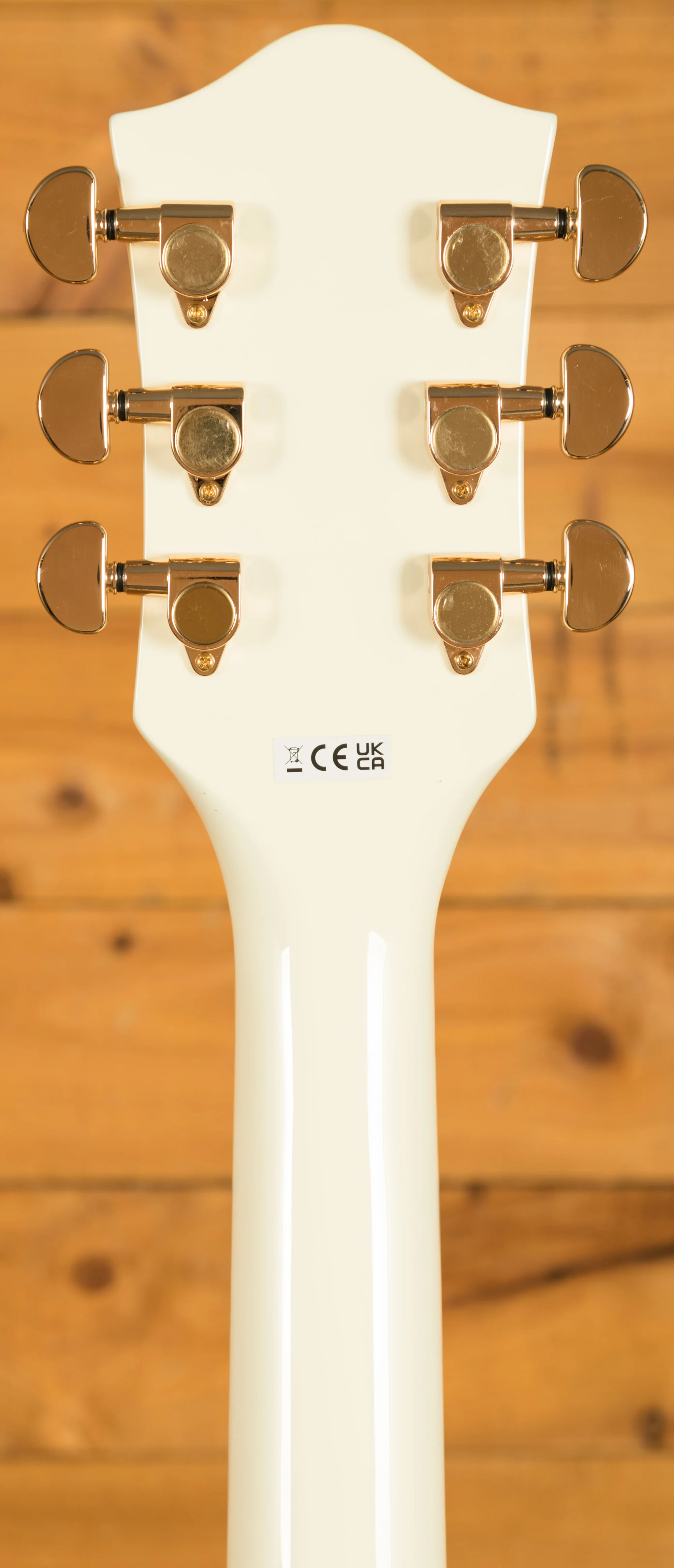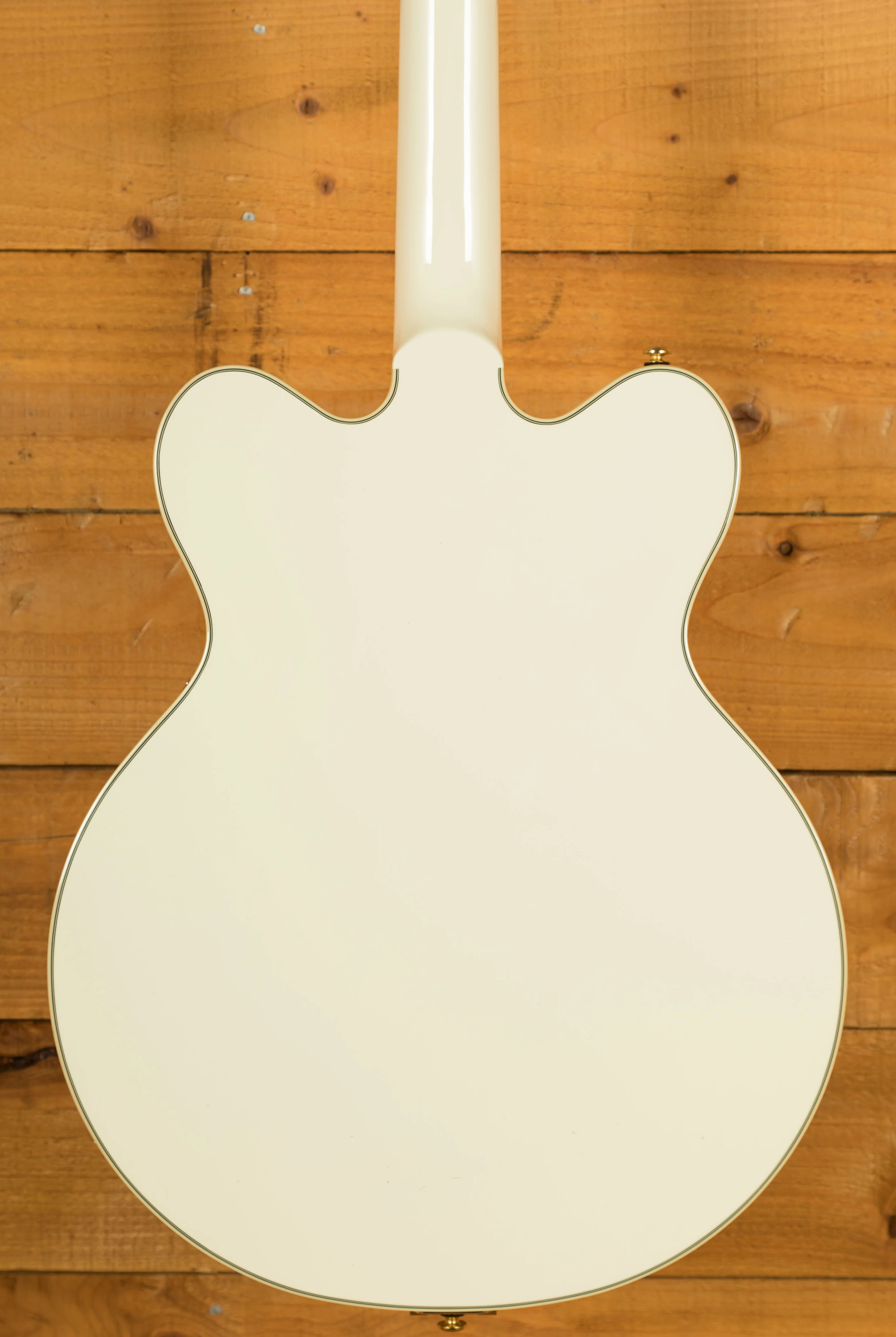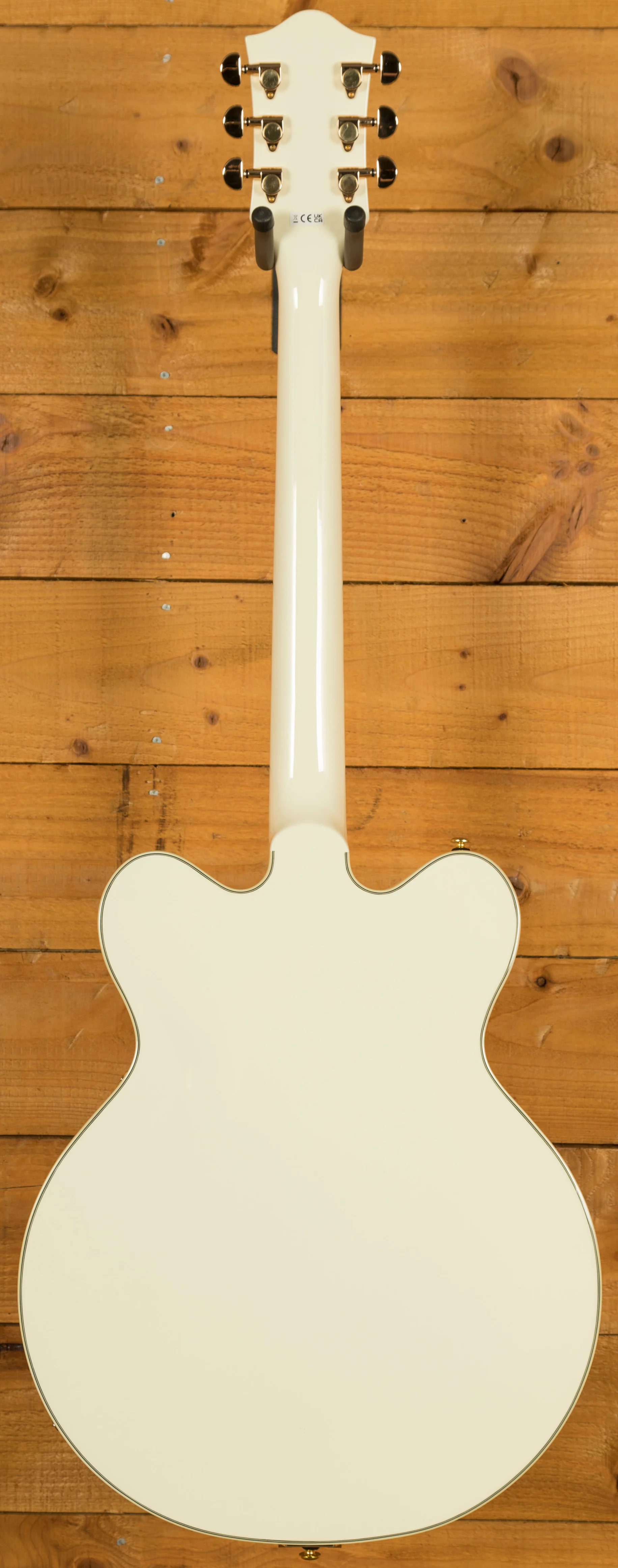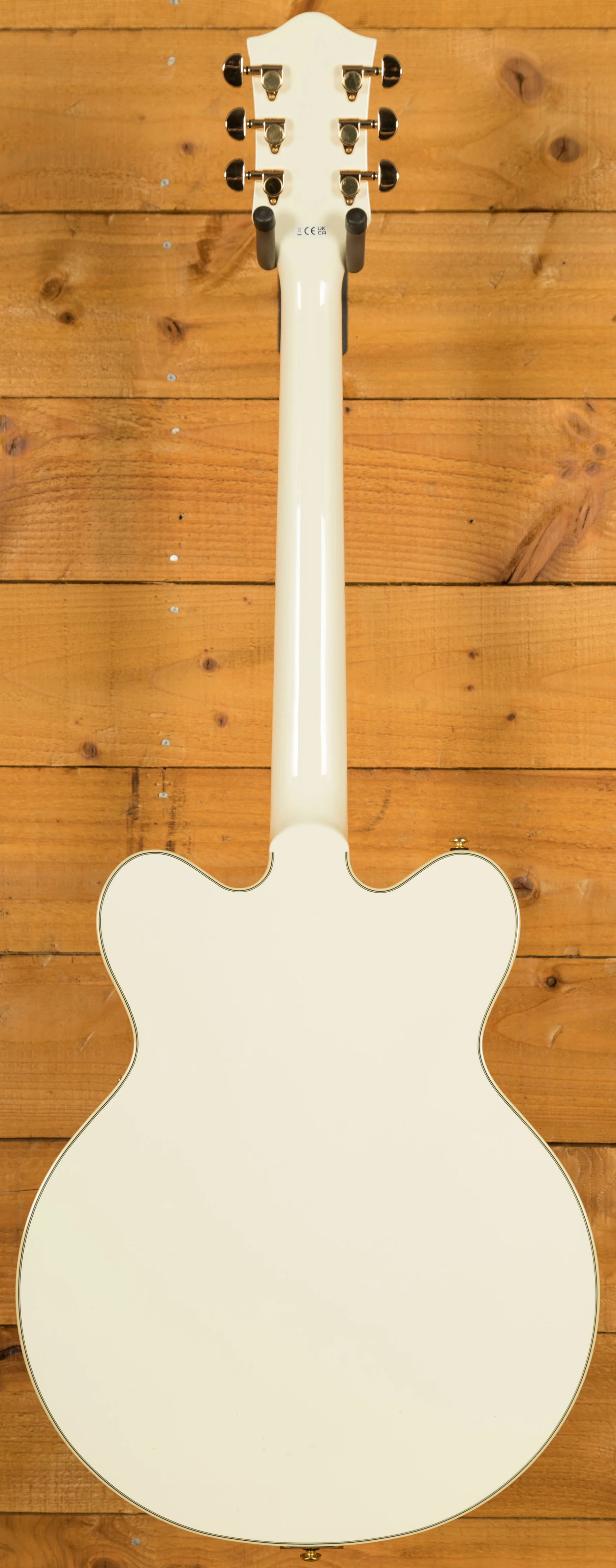 The double-cutaway 16" arched maple body features a chambered centre block that reduces feedback and enhances sustain, making this guitar ideal for high-volume stages and gain-heavy rigs. The Vintage White finish pairs beautifully with the gold hardware, giving the guitar a premium, elegant aesthetic that looks incredible under stage lights.