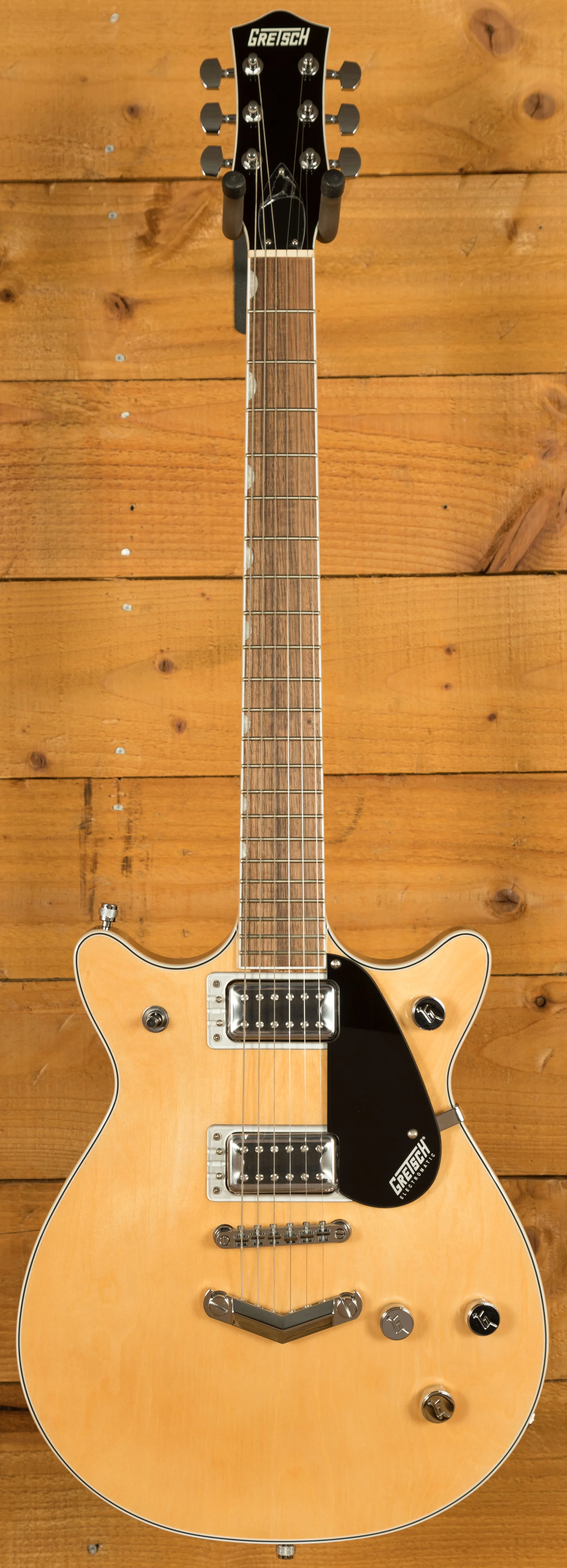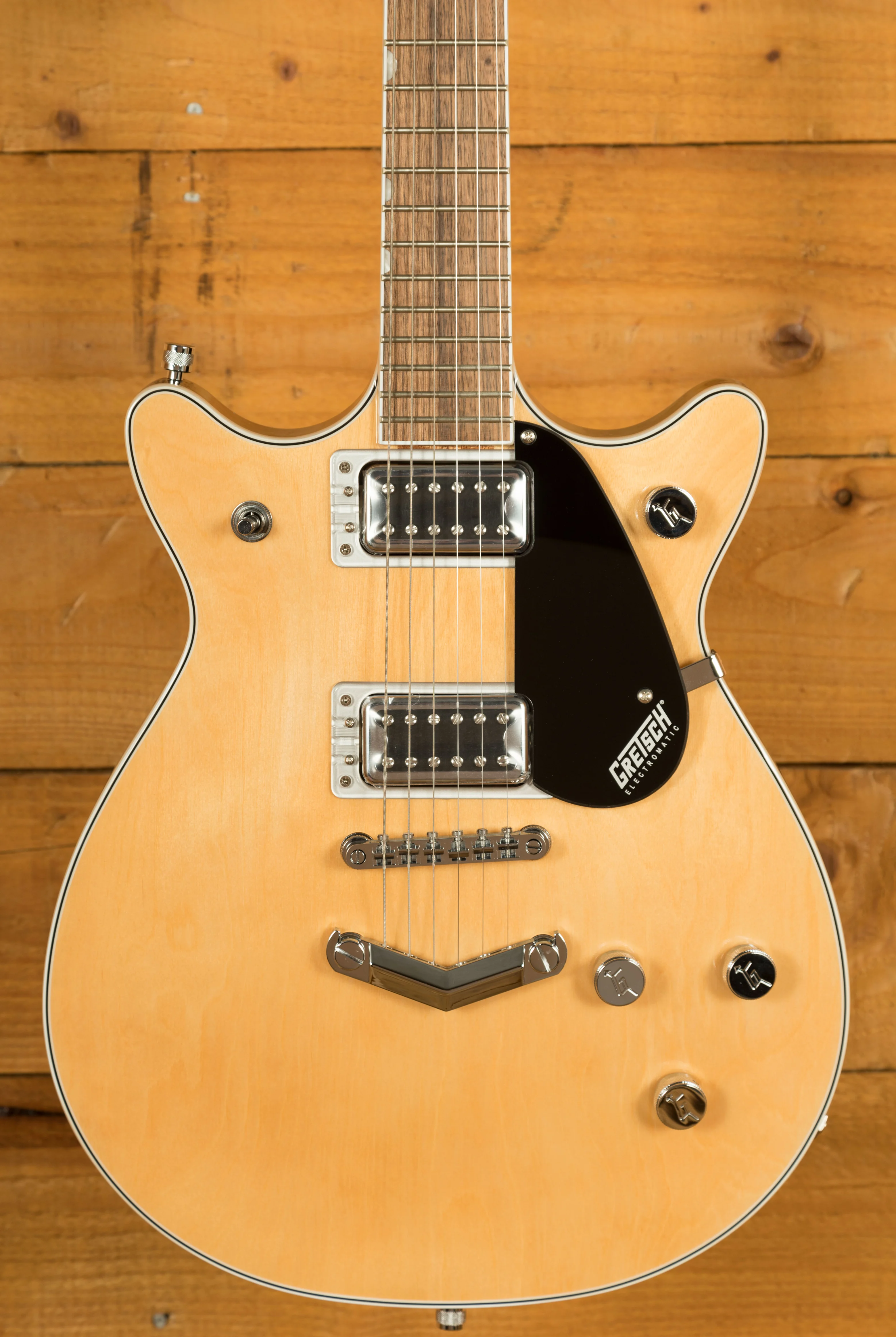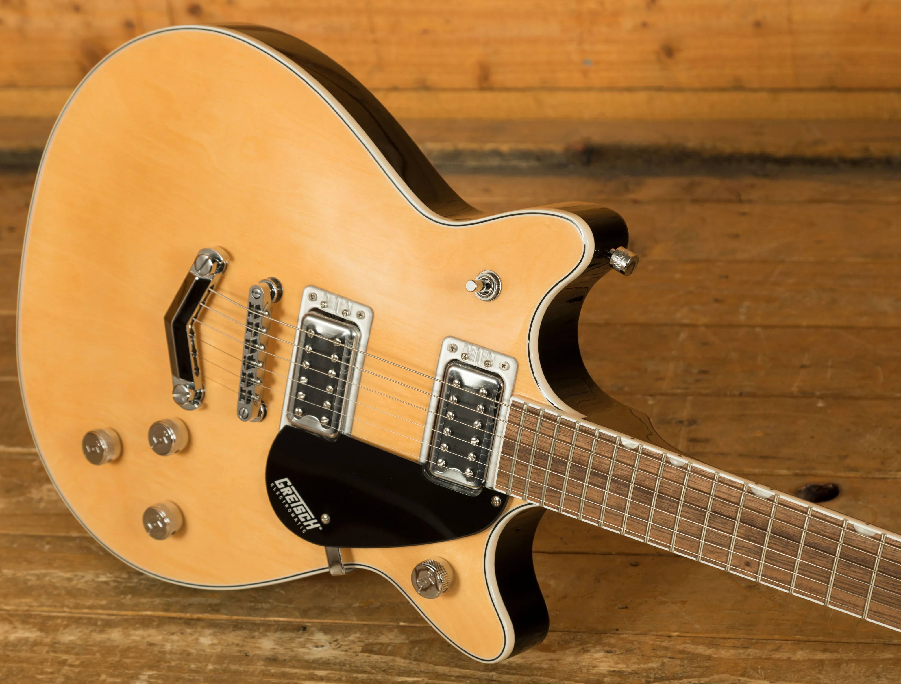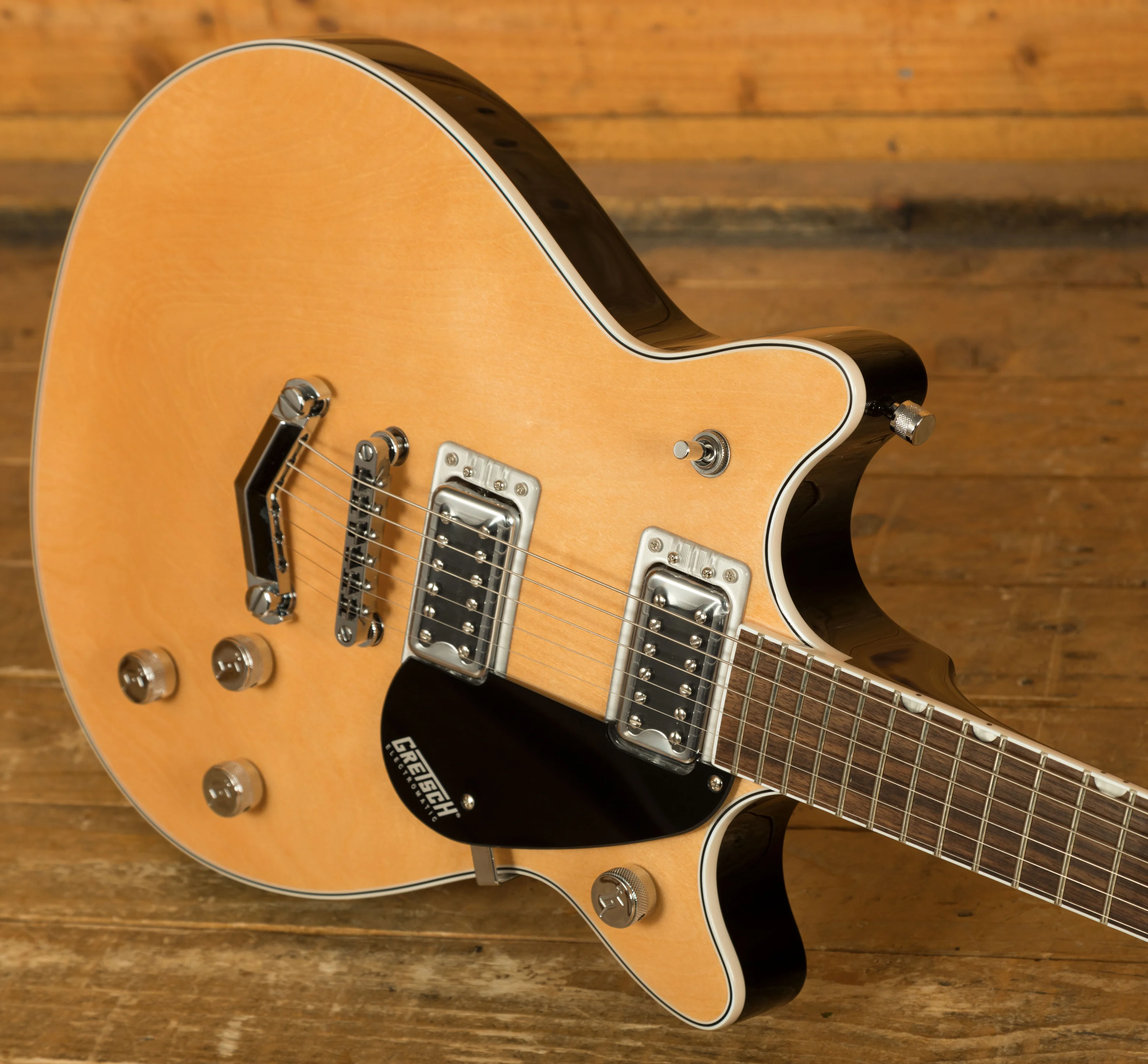 Additional features include a 12"-radius laurel fingerboard with 22 medium jumbo frets and pearloid Neo-Classic inlays, providing both a smooth playing surface and a stylish appearance. The anchored Adjusto-Matic bridge and V-Stoptail enhance tuning stability and sustain, making this guitar suitable for both studio and live performances. The G5222 is available in a variety of finishes, including Aged Natural, Jade Grey Metallic, London Grey, and Walnut Stain, giving players options for a personalised look.