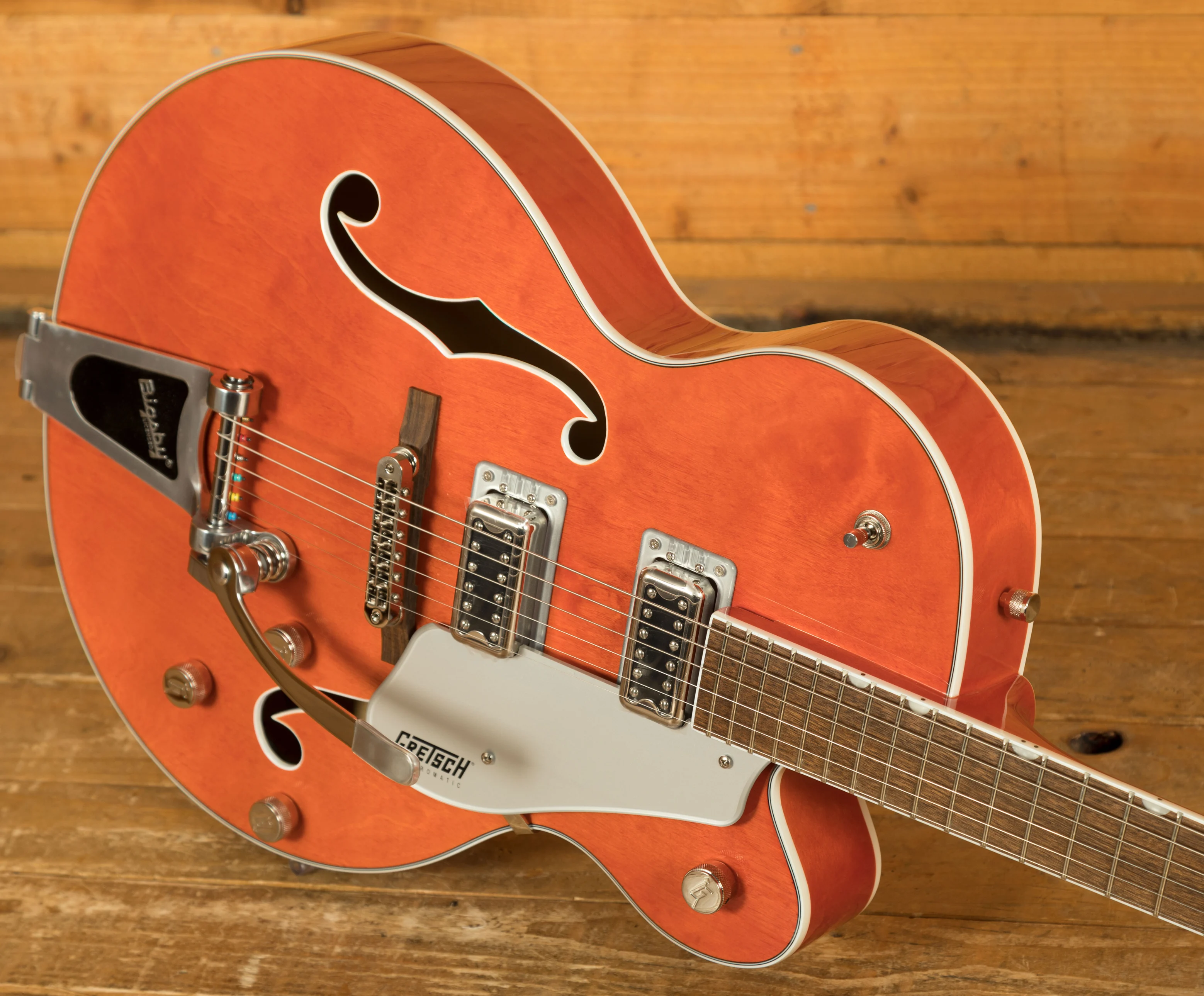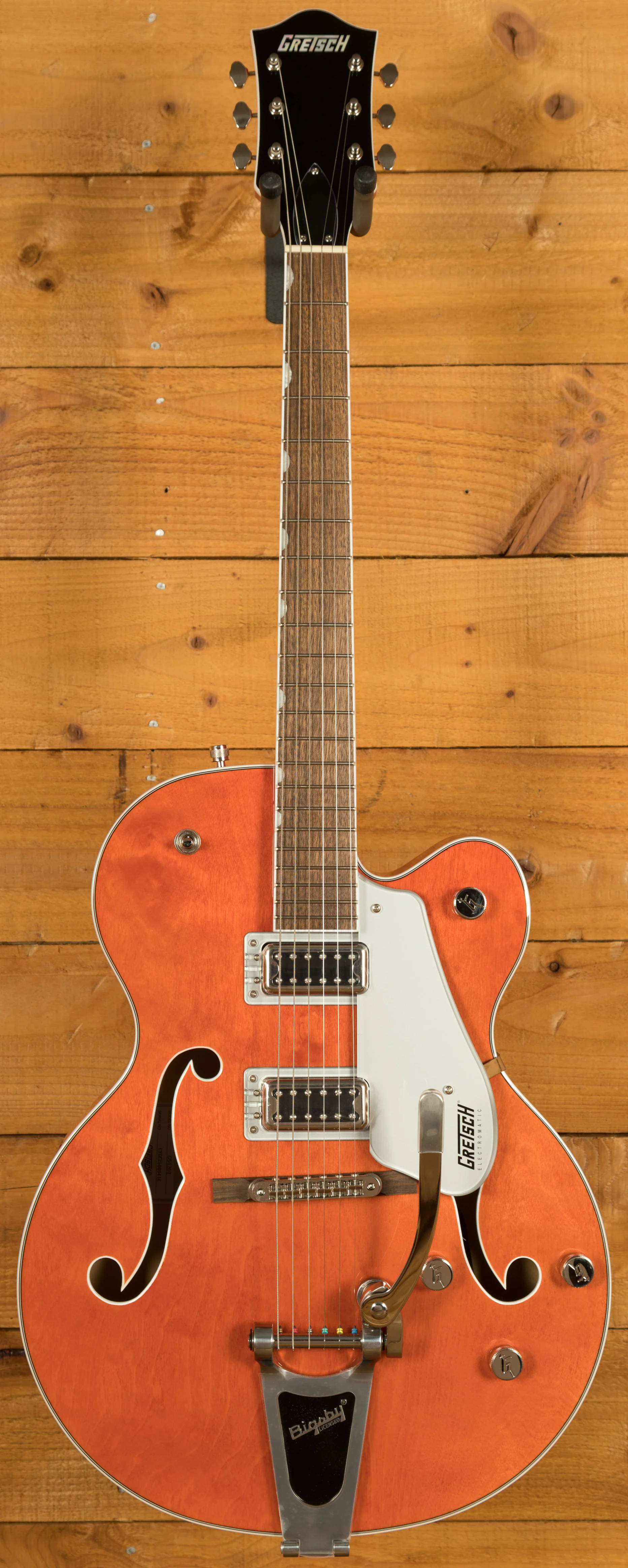 For a more comfortable playing experience, the G5420T is equipped with a new Classic "C"-shaped maple neck and a 12"-radius laurel fingerboard. These upgrades improve the feel of the guitar and contribute to better playability, making it easier to navigate the fretboard and execute precise note changes.
