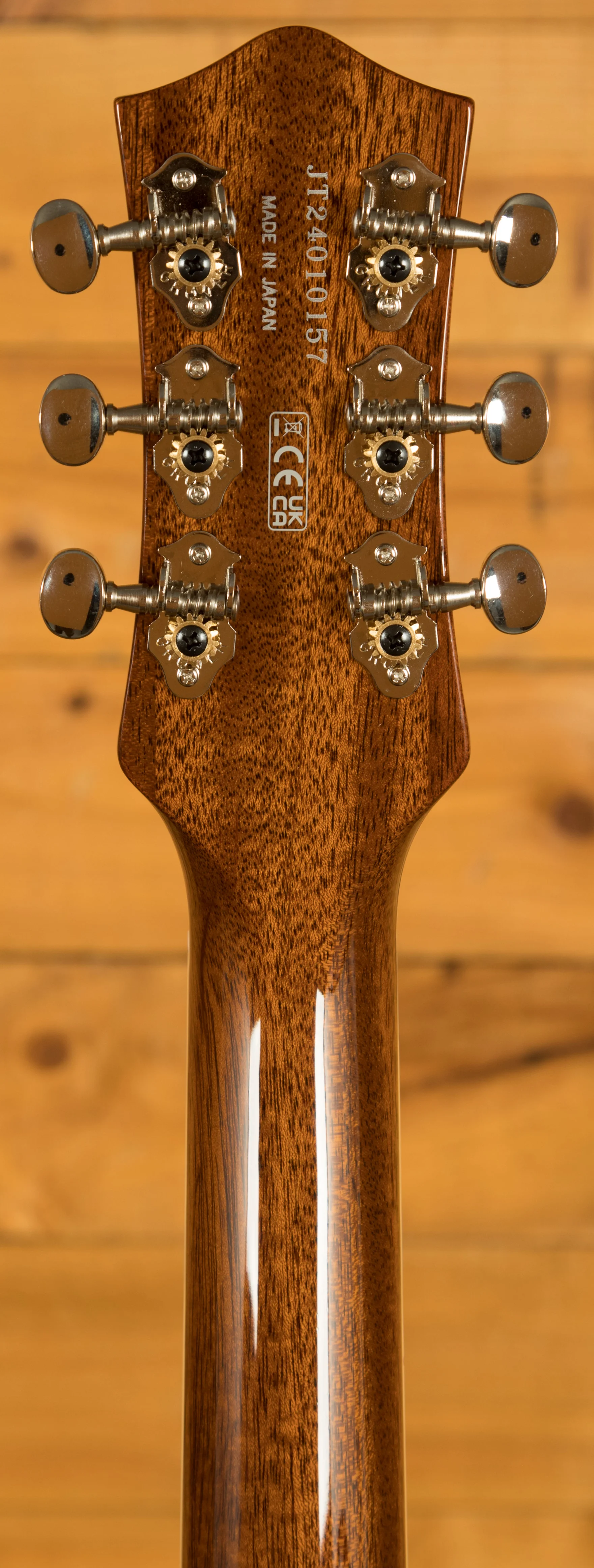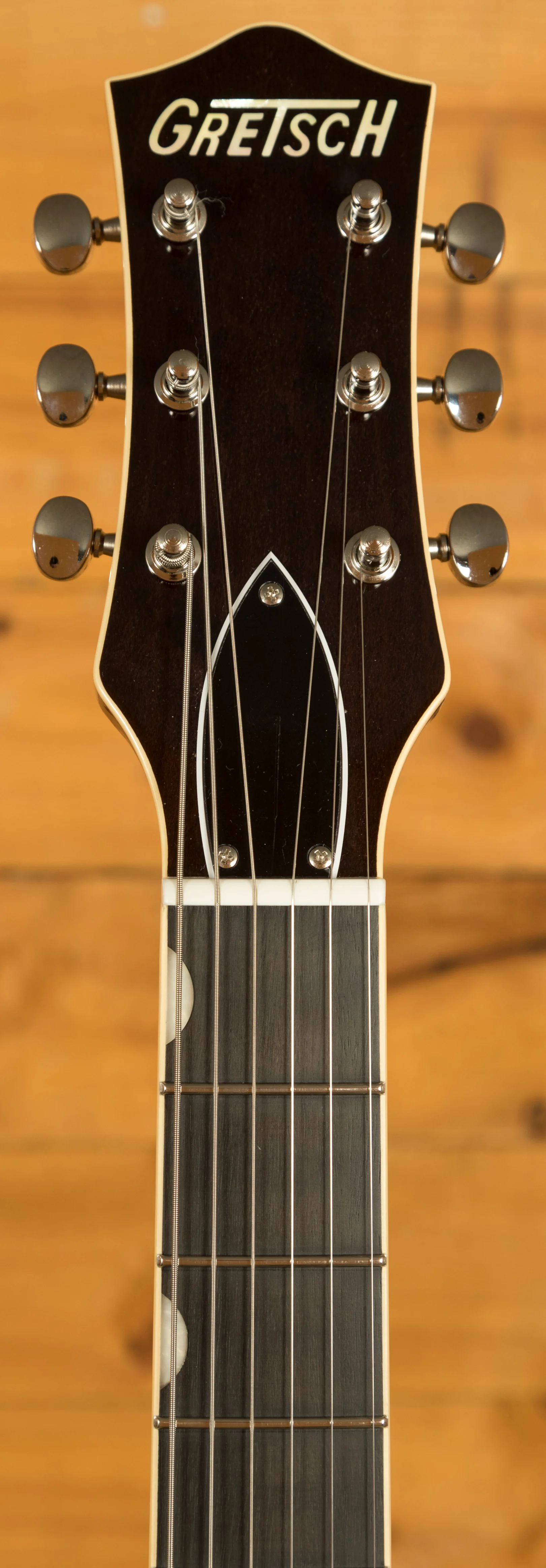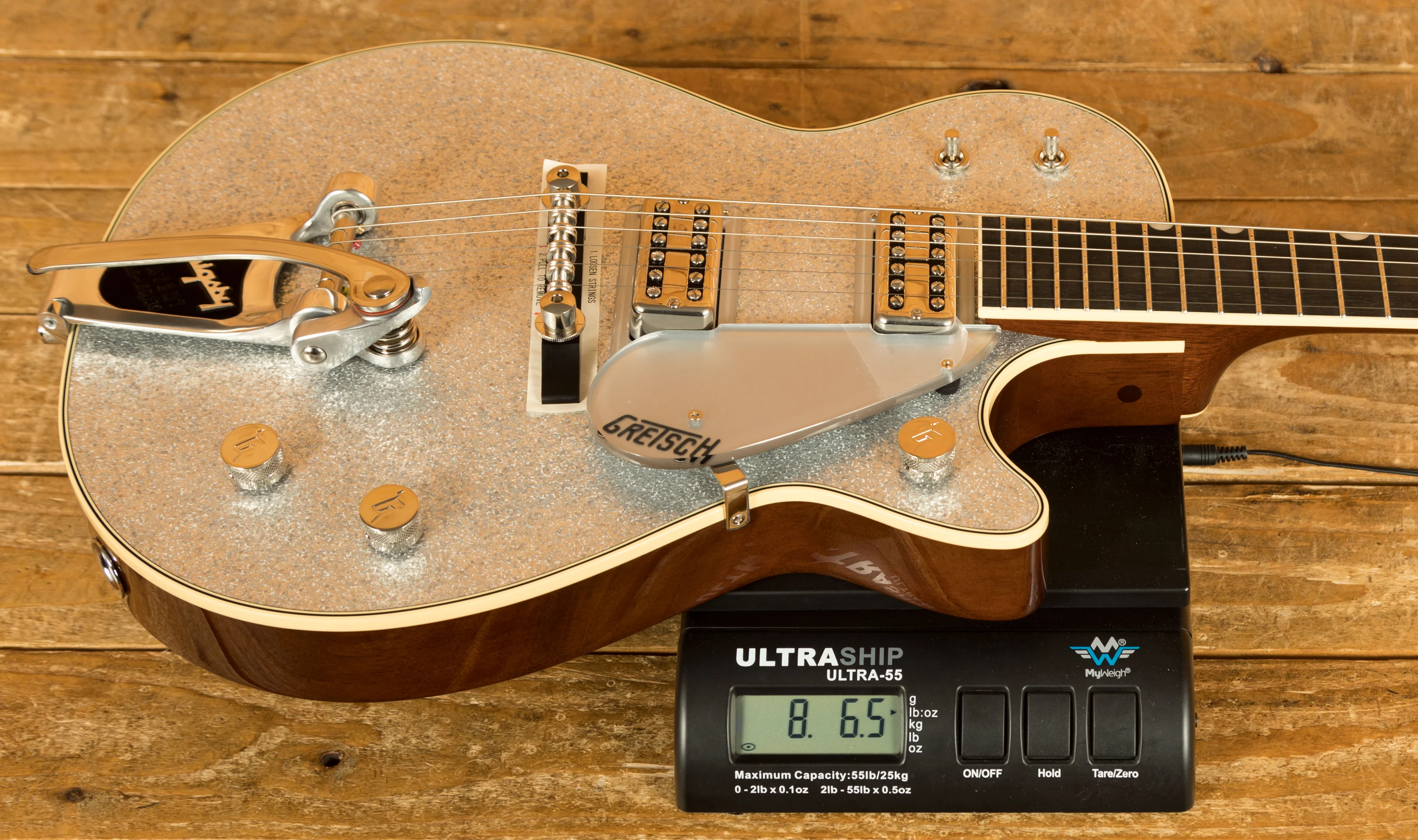 Introducing the G6129T-59 Vintage Select '59 Silver Jet with Bigsby from Gretsch's renowned Vintage Select Edition. Designed to capture the essence of the golden age of Gretsch guitars in the 1950s and early '60s, this instrument is a testament to the impeccable craft skills and musical heritage that discerning players appreciate. The Silver Jet, a revered silver-sparkle variant of the iconic Duo Jet, embodies the power and punch that made its predecessor legendary. Crafted with a chambered mahogany body, it delivers unparalleled harmonic richness by allowing the air to resonate between the top and body, resulting in a vibrant and articulate tone. Building upon its vintage roots, this magnificent '50s-inspired beauty features dual TV Jones Classic pickups that faithfully reproduce the unmistakable Filter'Tron sound. With its shimmering aesthetics and futuristic allure, the G6129T-59 Vintage Select '59 Silver Jet with Bigsby is a sparkling tribute to the timeless legacy of Gretsch guitars.