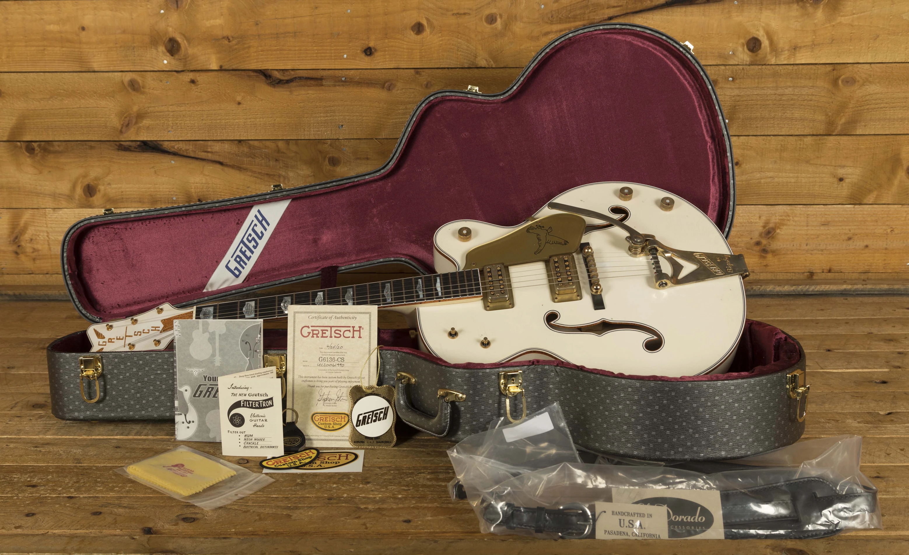 The Gretsch G6136T-58 White Falcon is one of those incredible guitars that seamlessly manages to honour its rich heritage whilst pushing forward with modern vision and functionality. Inspired by the Golden Era of Gretsch production, the '50s and '60s, this White Falcon is one of Gretsch's rarest birds. If you are looking for the highest level of Gretsch craftsmanship, the Custom Shop is the place to go, offering incredible attention to detail and true historic design, these are the best of the best!