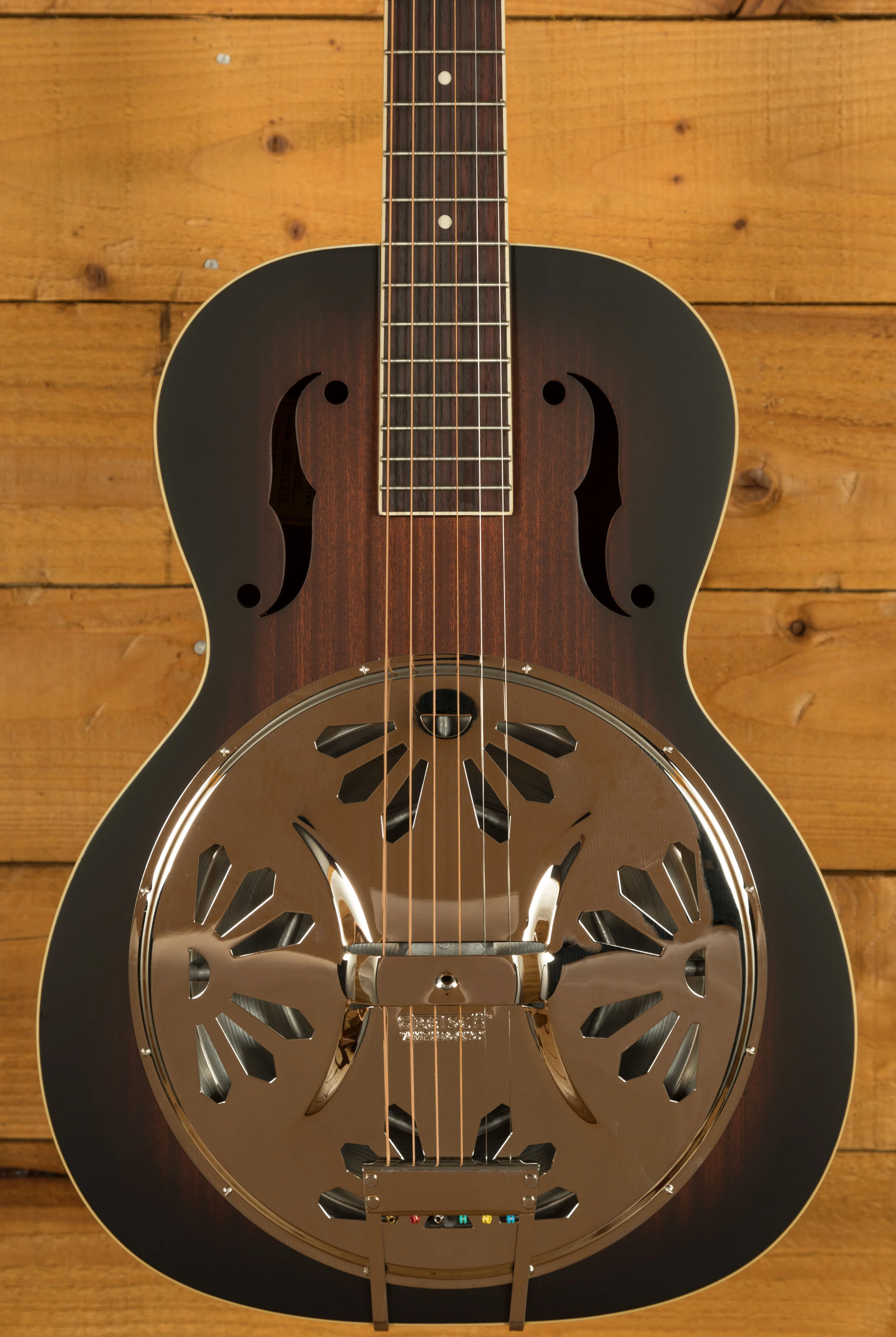 The Gretsch G9240 Bobtail Roundneck Electro Reso is a delta blues infused resonator that takes you back to the early days of slide blues. With a Laminated Mahogany body, this resonator delivers a crisp and raspy tone, perfect for slick fingerpicking and ruthless slide work. Like all fine Gretsch resonator guitars, the vital feature of the G9220 is the all-new Gretsch "Ampli-Sonic" resonator cone. Hand-spun in Eastern Europe from nearly 99-percent pure aluminium, the Ampli-Sonic diaphragm yields an impressive quality and volume of tone.