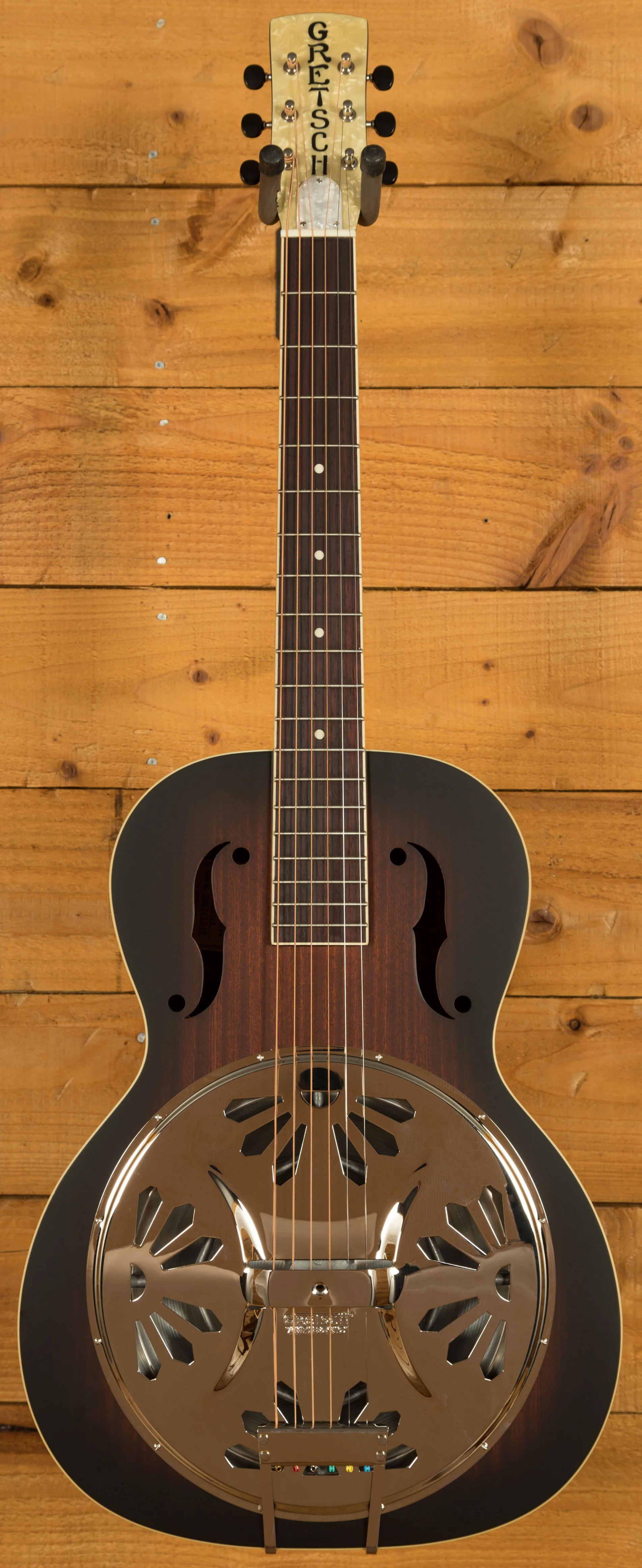 With Grover Sta-Tite tuners and a weathered trapeze tailpiece the G9220 offers great tuning stability and a real vintage appearance. If you are looking for a Resonator that really captures the heart of the Mississippi Blues, this Gretsch will certainly catch your interest!
