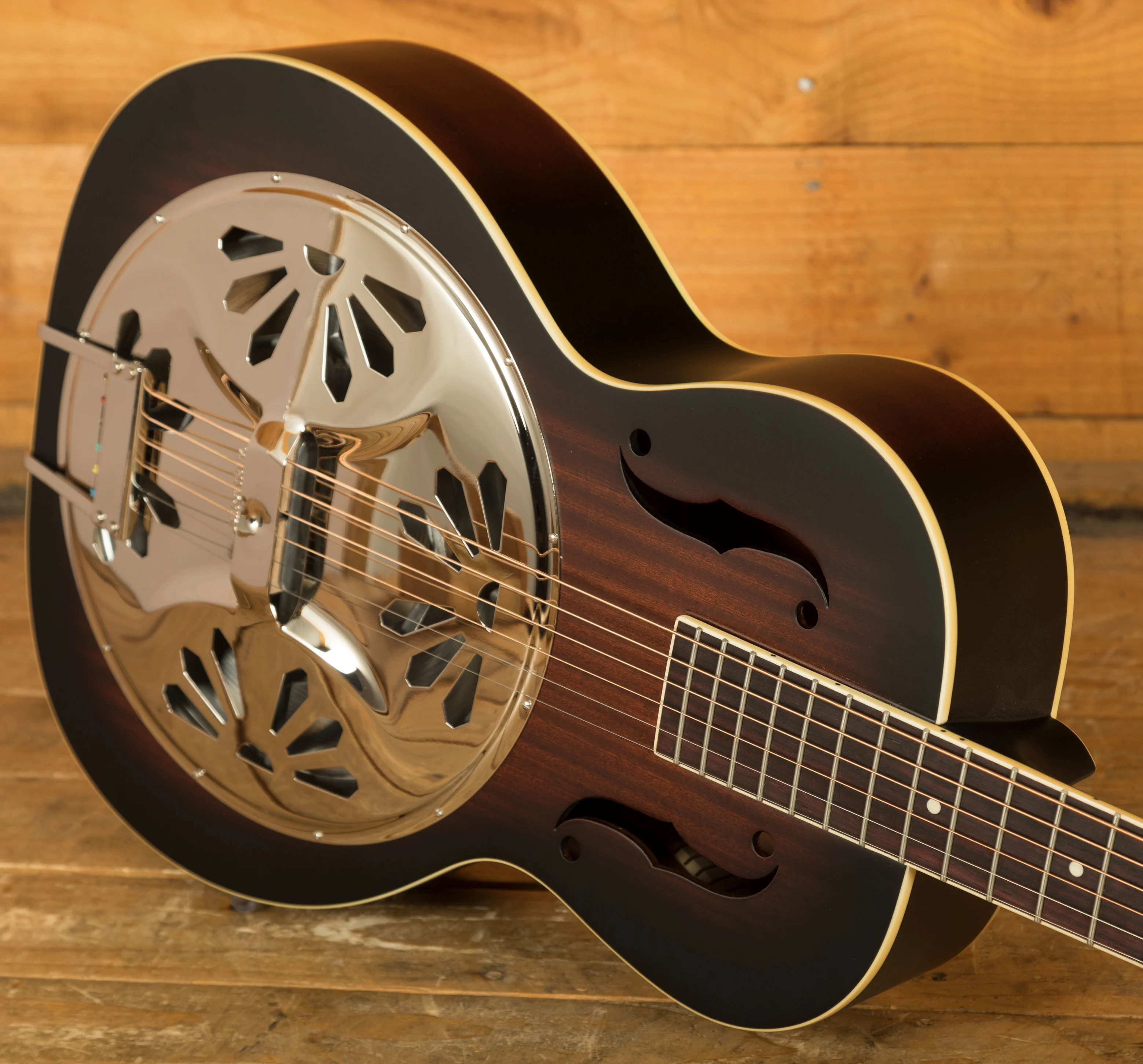 The Mahogany neck features a vintage semi-gloss finish and Medium V profile, sturdy underhand and super smooth, this reso is a great option. With a 15.75" radius, 25" scale length, Padauk fingerboard and medium jumbo frets it's the real deal.