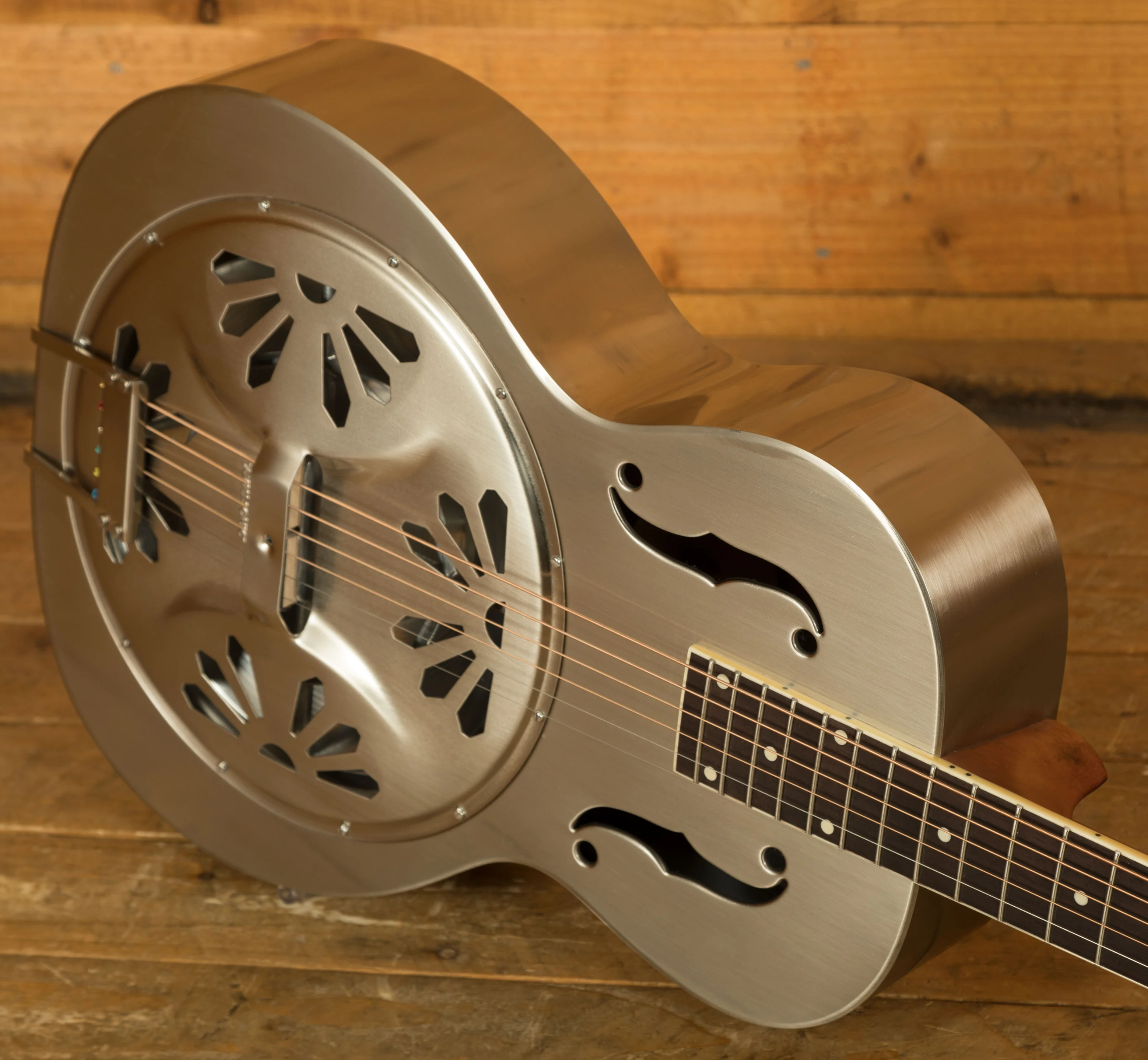 The Mahogany neck features a vintage semi-gloss finish and soft V profile, sturdy underhand and super smooth, this reso is a great option. With a 15.75" radius, 25" scale length, Padauk fingerboard and medium jumbo frets it's the real deal.