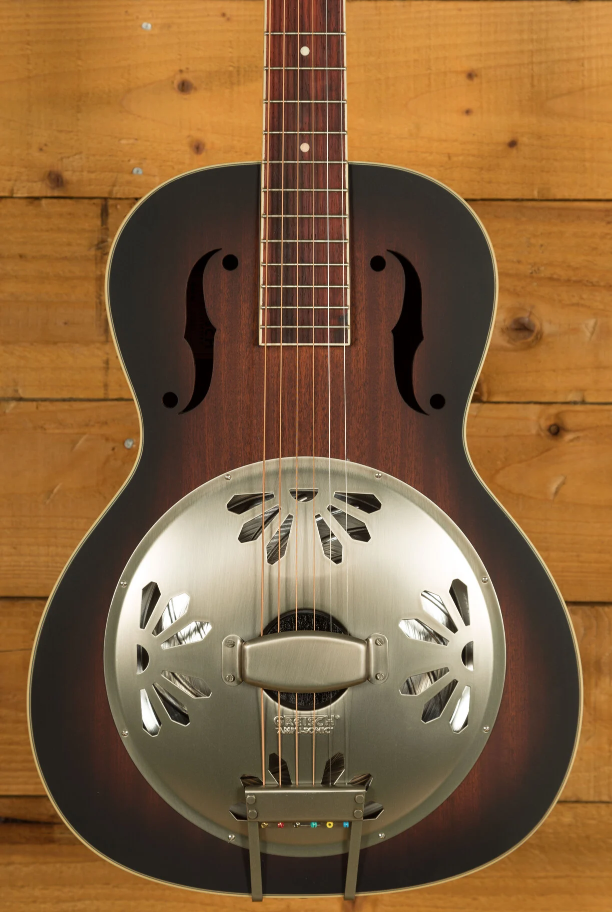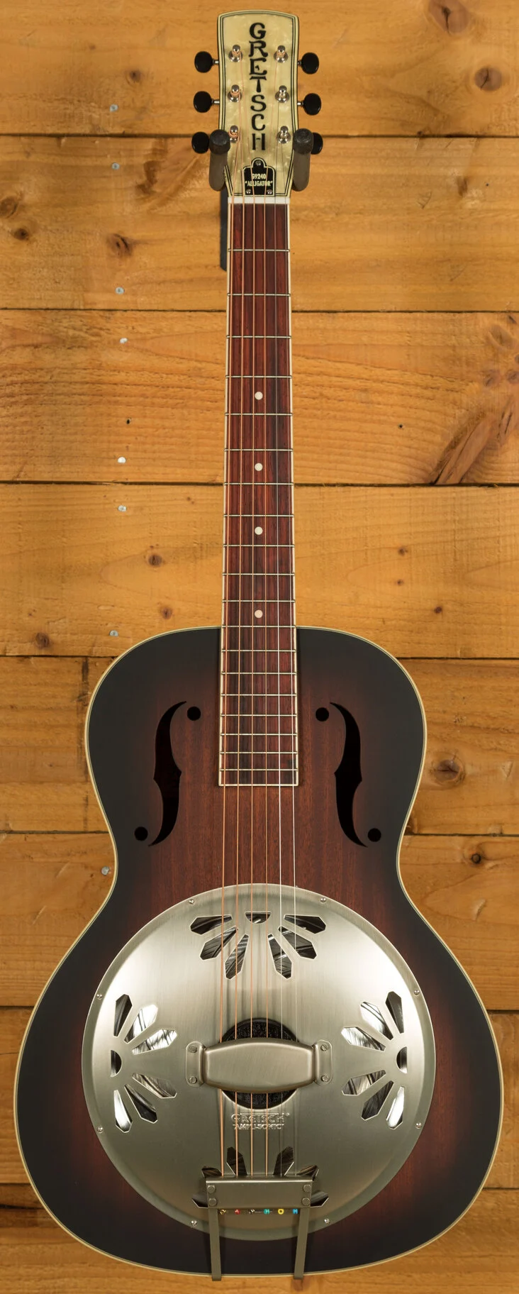 With Grover Sta-Tite tuners and a weathered trapeze tailpiece the G9240 offers great tuning stability and a real vintage appearance. If you are looking for a Resonator that really captures the heart of the Mississippi Blues, this Gretsch will certainly catch your interest!