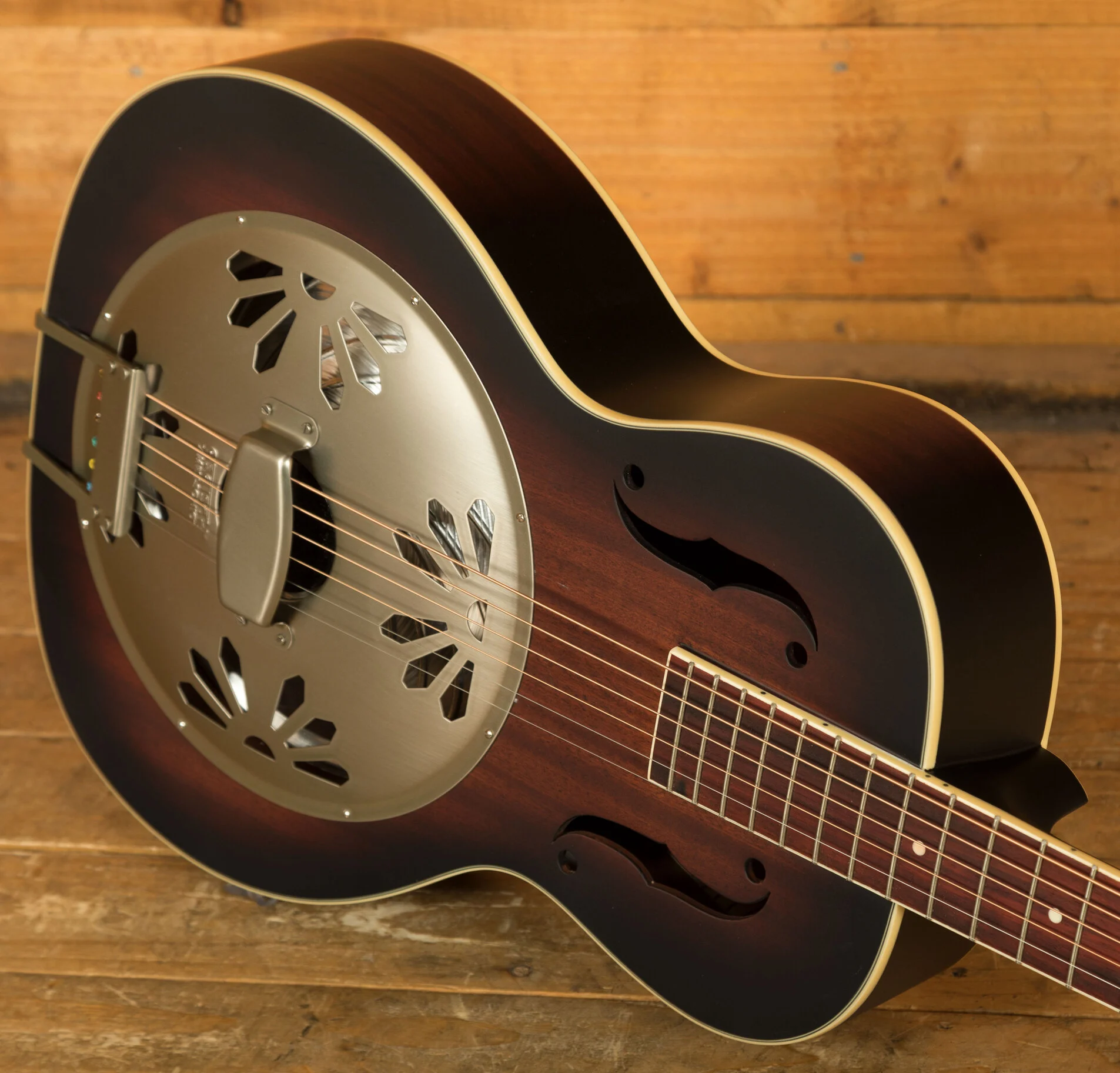 The Mahogany neck features a vintage semi-gloss finish and medium V profile, sturdy underhand and super smooth, this reso is a great option. With a 15.75" radius, 25" scale length, Padauk fingerboard and medium jumbo frets it's the real deal.