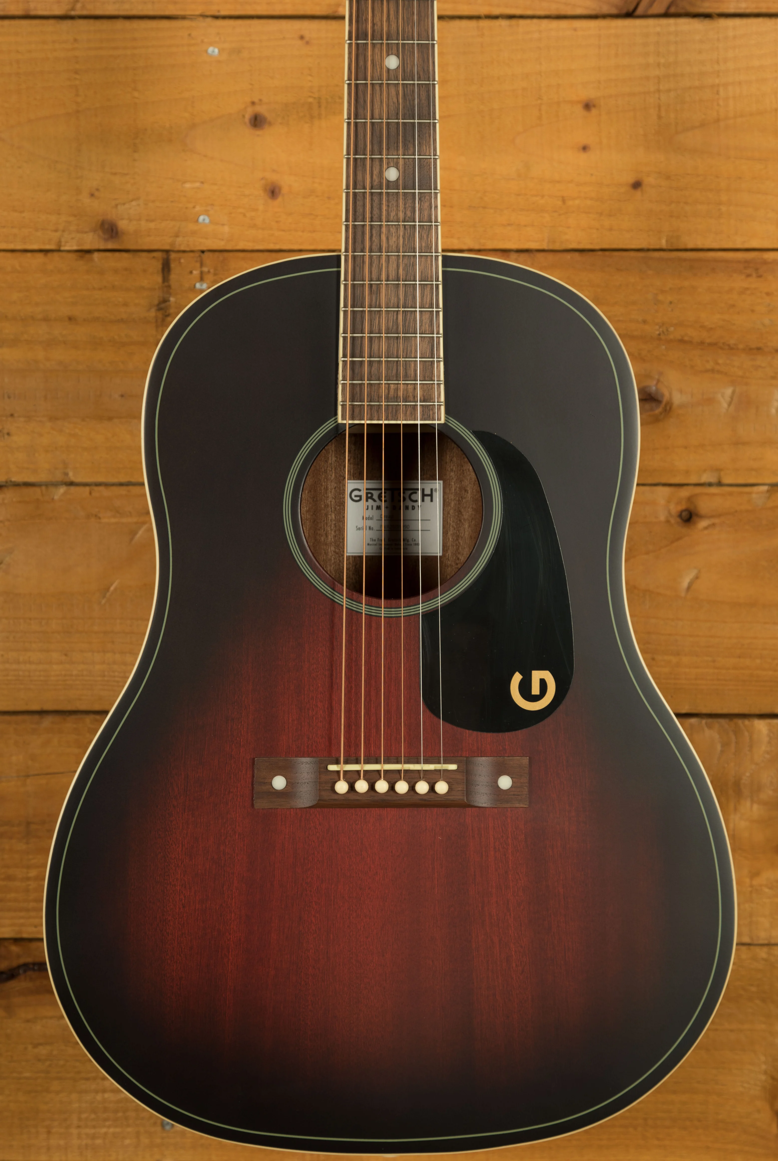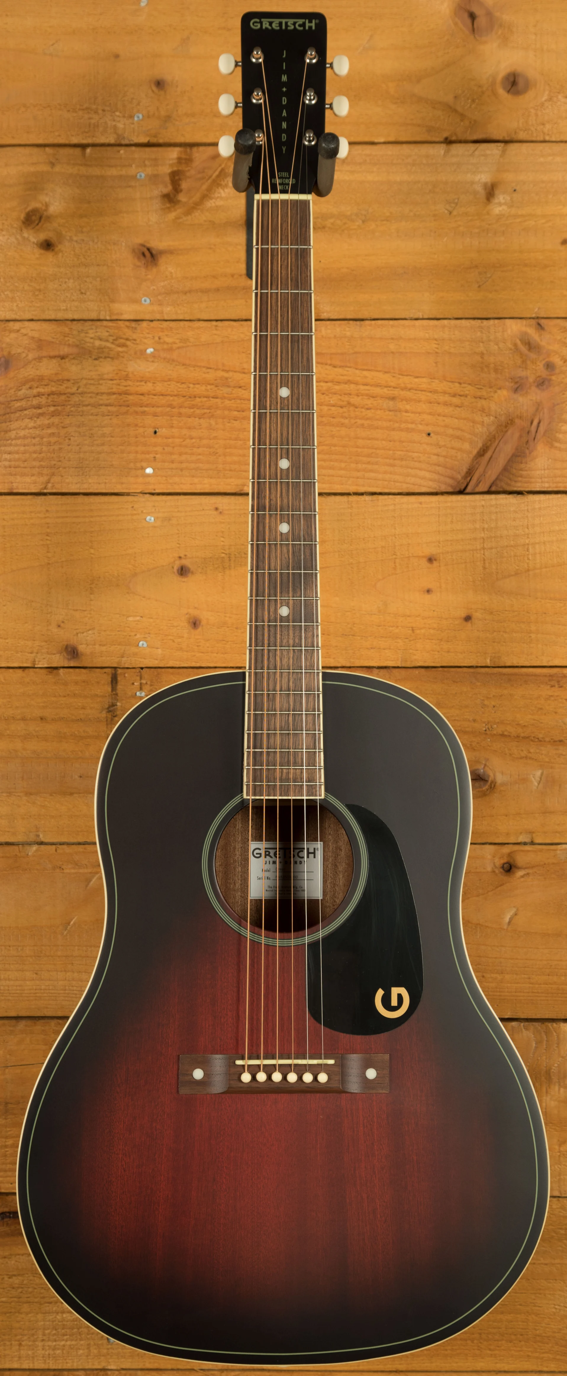 The Gretsch Jim Dandy Dreadnought blends historic vintage charm with modern comfort, offering classic tone and smooth playability in a compact dreadnought form. Whether you're strumming bluesy porch melodies or picking out speakeasy-inspired swing, this slope-shoulder acoustic delivers warm mids, balanced bass, and impressive projection.