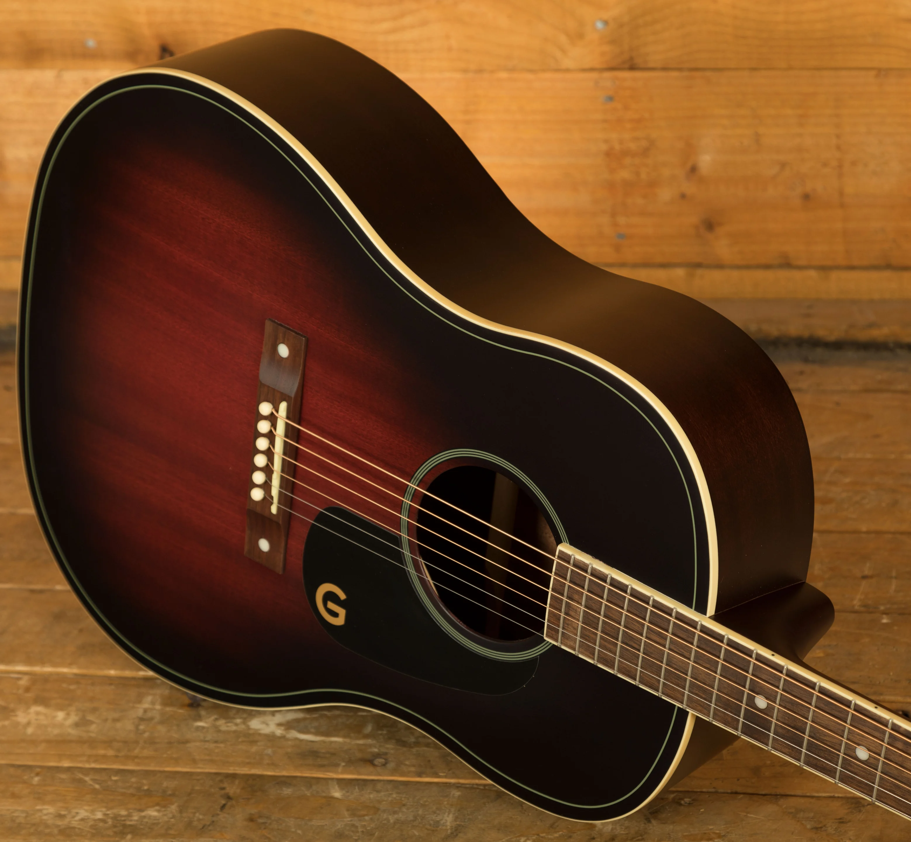 Authentic period-correct details, including a pinned bridge, G-graphic pickguard, painted pinstripe purfling, and oversized dot inlays, embody classic Gretsch style. The 3-on-a-plate open-gear tuning machines and 1950s-style vintage end-pin strap buttons round out its timeless aesthetic and reliable functionality.