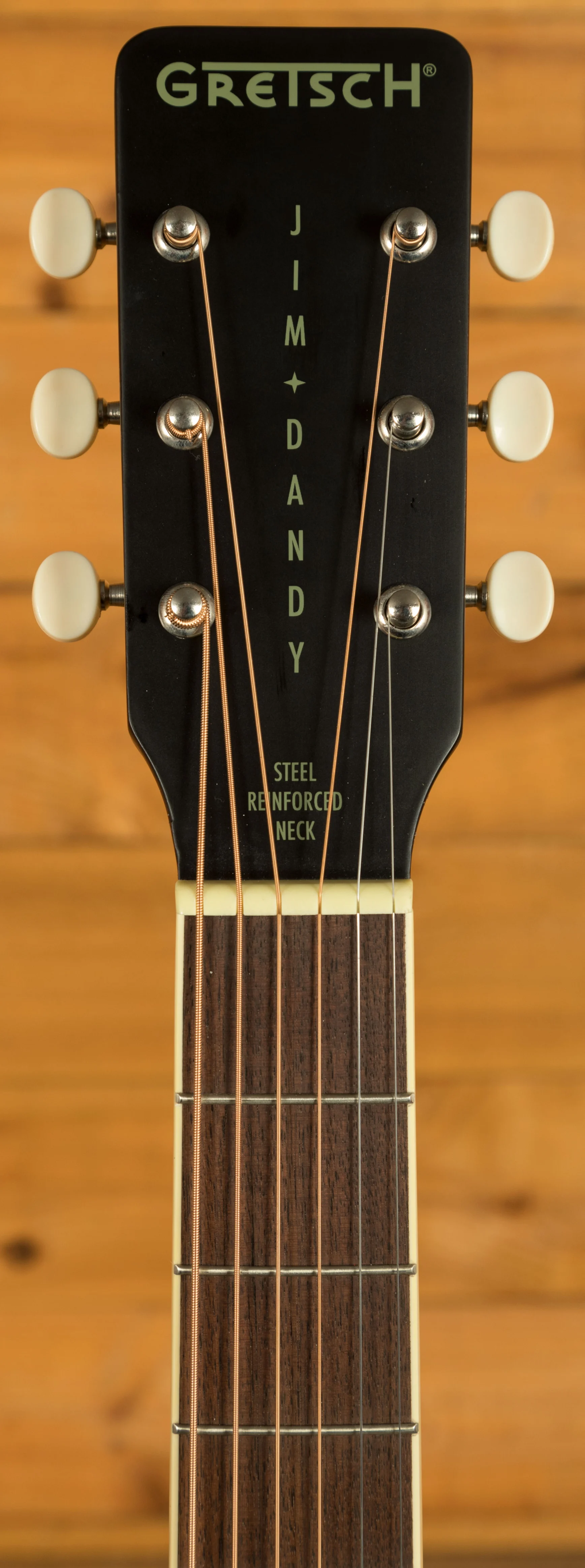 Featuring a petite parlour body and short 24" scale length, the Jim Dandy maintains portability while packing a surprisingly punchy voice. The X-braced basswood body ensures a balance of vintage warmth and modern durability, while the comfortable "C"-shaped nato neck provides hours of effortless playability.
