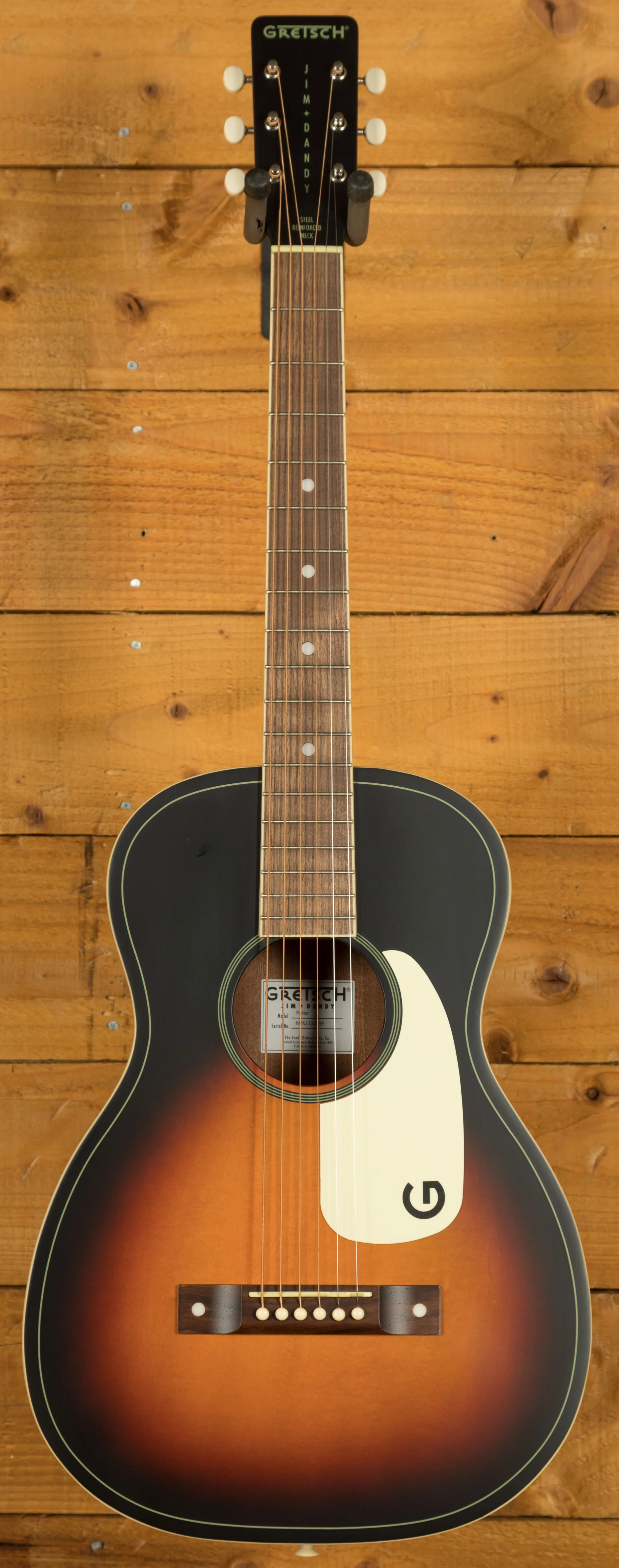 Introducing the Gretsch Jim Dandy Concert - a homage to the iconic "Rex" instruments from the 1930s, '40s, and '50s mail-order catalogues. This model captures the essence of early Gretsch flat-top guitars, offering superior playability and outstanding tone.
