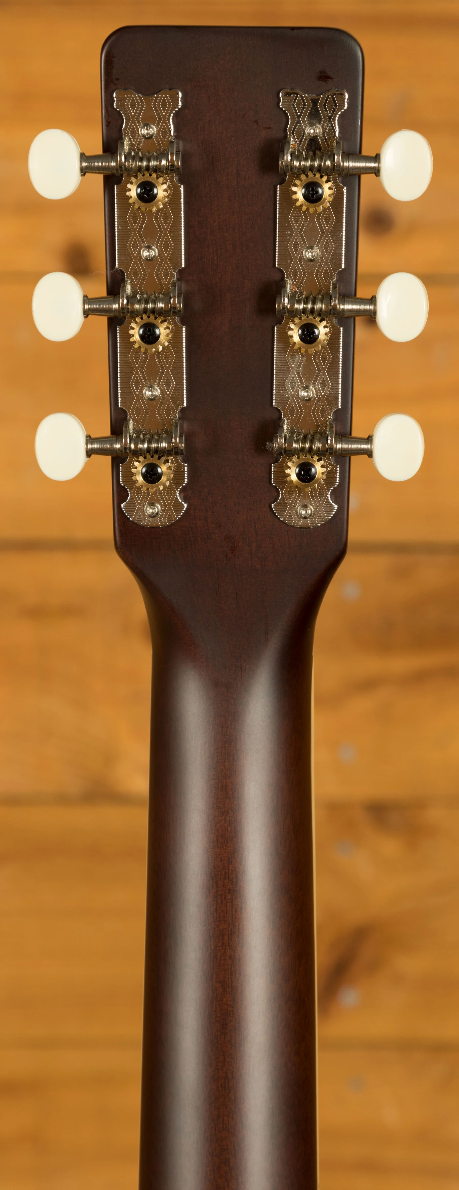 The "C"-shape Nato neck ensures an inviting feel, making it a pleasure for extended playing sessions filled with old-timey inspiration. The Walnut fingerboard, synthetic bone nut, and compensated saddle contribute to the guitar's exceptional playability. Vintage-style features like a pinned bridge, "G"-graphic pickguard, painted pinstripe purfling, 3-on-a-plate open-gear tuning machines, and oversized dot fingerboard inlays add a touch of nostalgia, making it perfect for barnburners or jamborees.