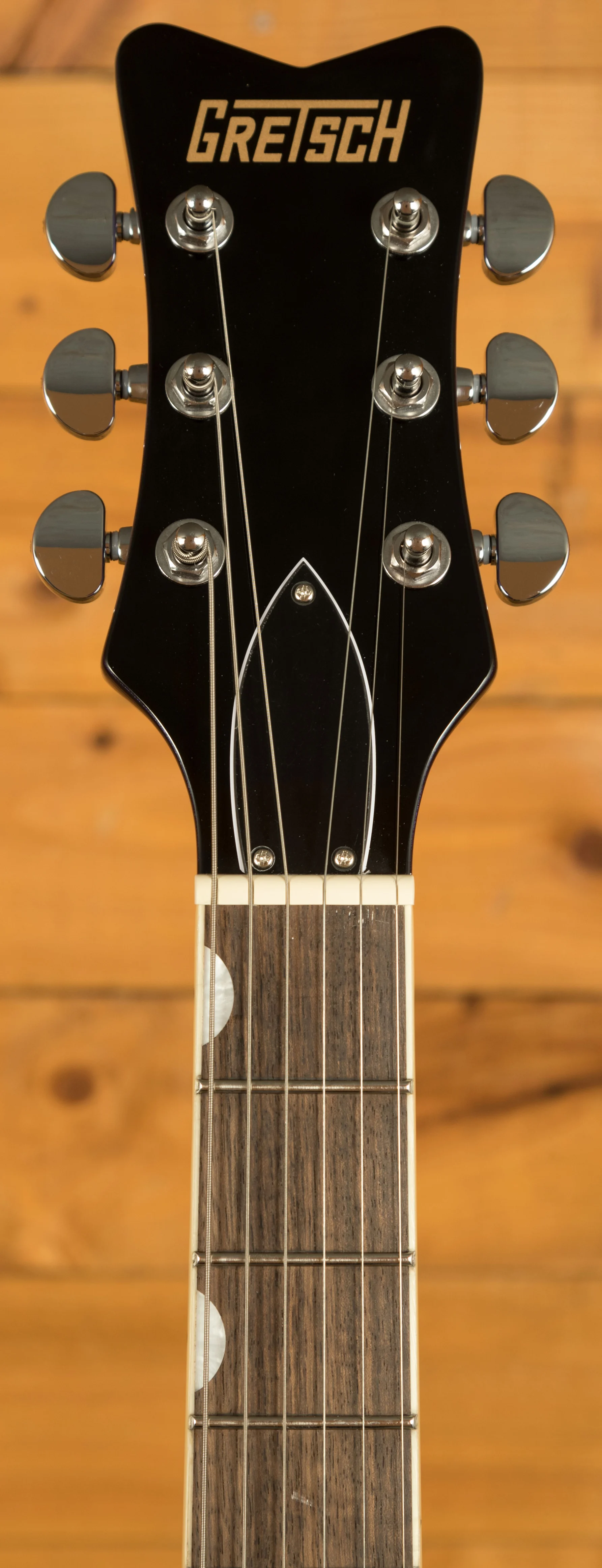 The Gretsch Streamliner Jet is designed to deliver powerful tone, reliable performance, and easy playability at a price that makes it highly accessible. Its mahogany body with a bound, carved maple top produces a rich midrange, deep lows, and clear highs, while sculpted body contours and a rounded neck heel provide excellent comfort during long playing sessions. The combination of premium tonewoods and thoughtful construction ensures a guitar that feels balanced and responsive in any setting.