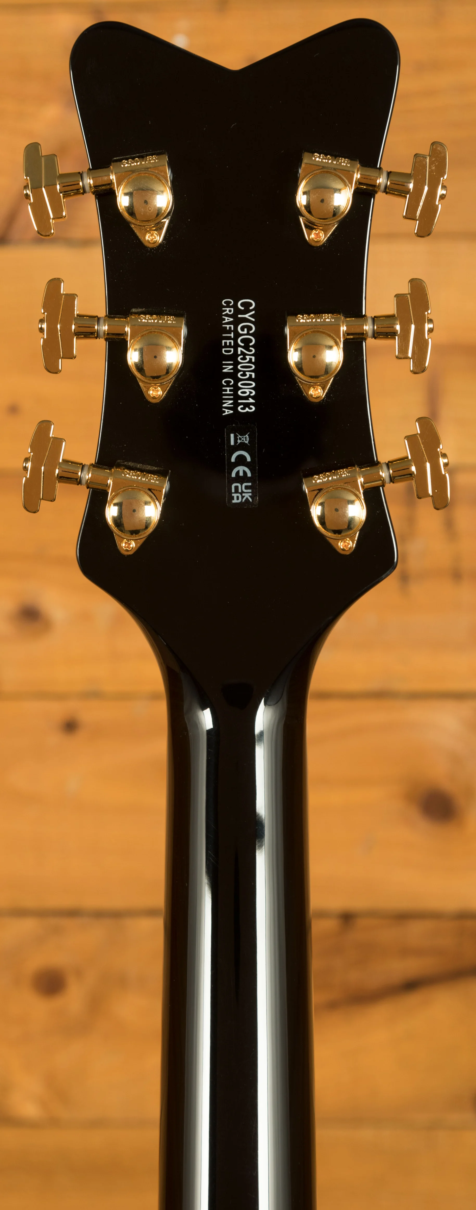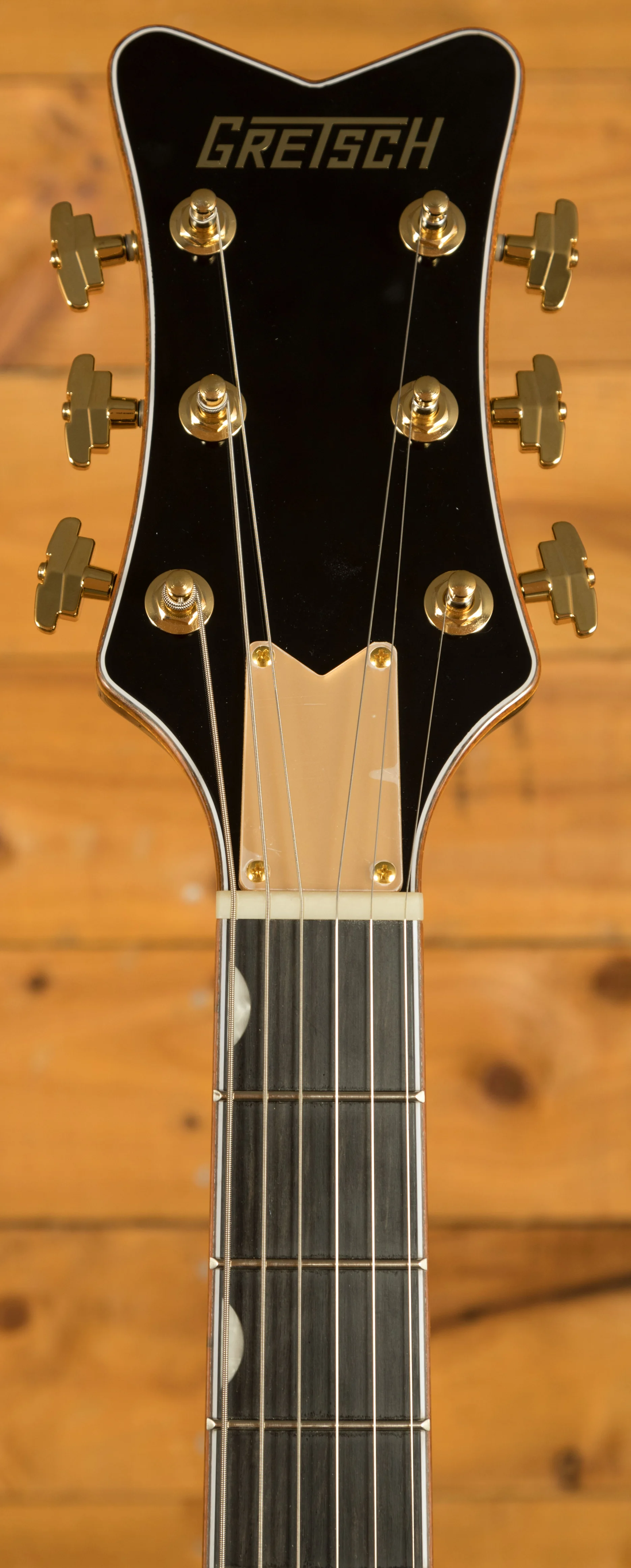 This model features a soft "C"-shaped maple neck paired with a 12"-radius ebony fingerboard for smooth playability and fast, accurate fretting. With 22 medium jumbo frets, pearloid Neo-Classic thumbnail inlays, and a genuine bone nut, players benefit from both stability and a premium feel. The Hi-Fidelity Filter'Tron pickups provide the distinctive Gretsch tone - clear, dynamic, and articulate - while the versatile control layout, including master volume with treble bleed, individual pickup volumes, a master tone, and a three-position toggle switch, allows for a wide tonal range.