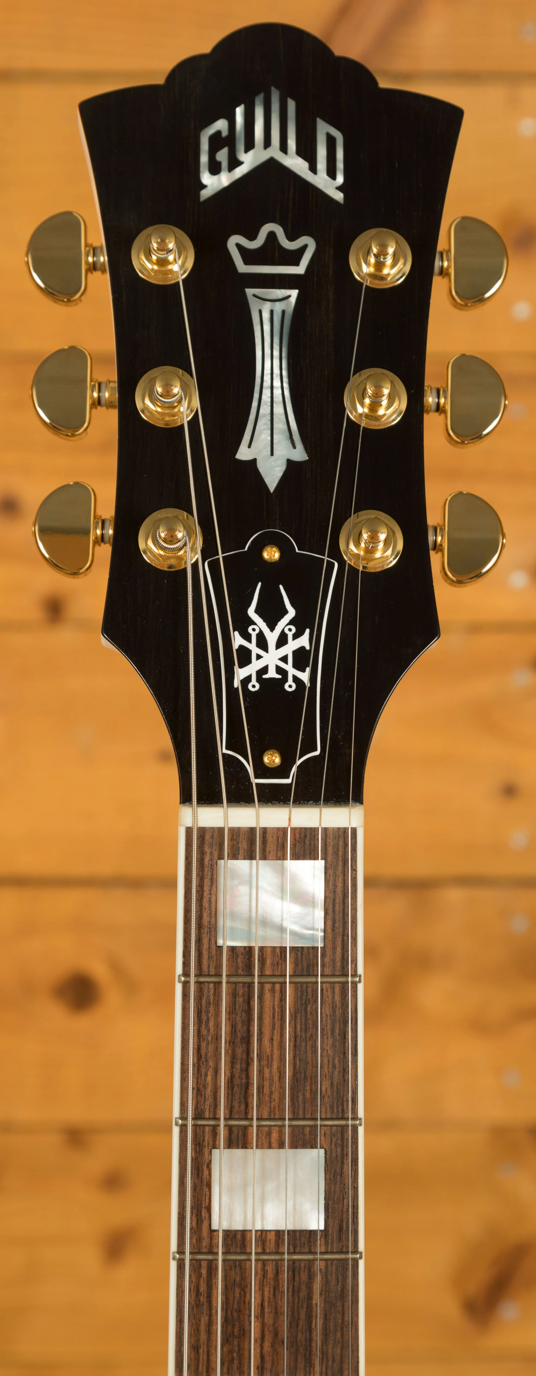 A true highlight of this guitar is the inclusion of custom USA Guild HB-1 Humbuckers, handwound by Jason Lollar. These pickups are incredibly versatile, offering everything from the creamy, thick mids of traditional humbuckers to a tighter low end and sparkling highs. Equipped with a phase switch, the guitar provides a broad tonal palette, allowing for creative versatility in different musical contexts.