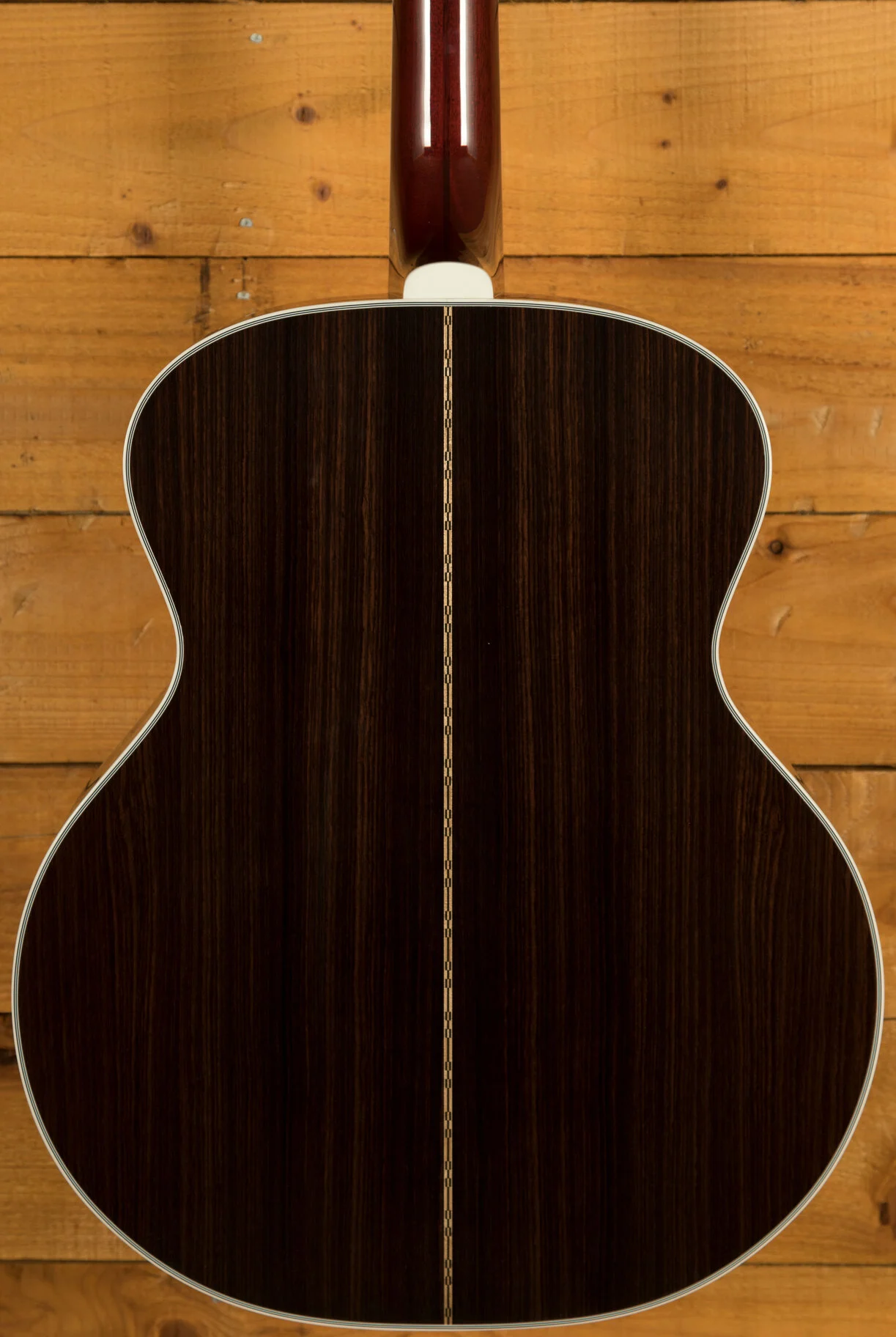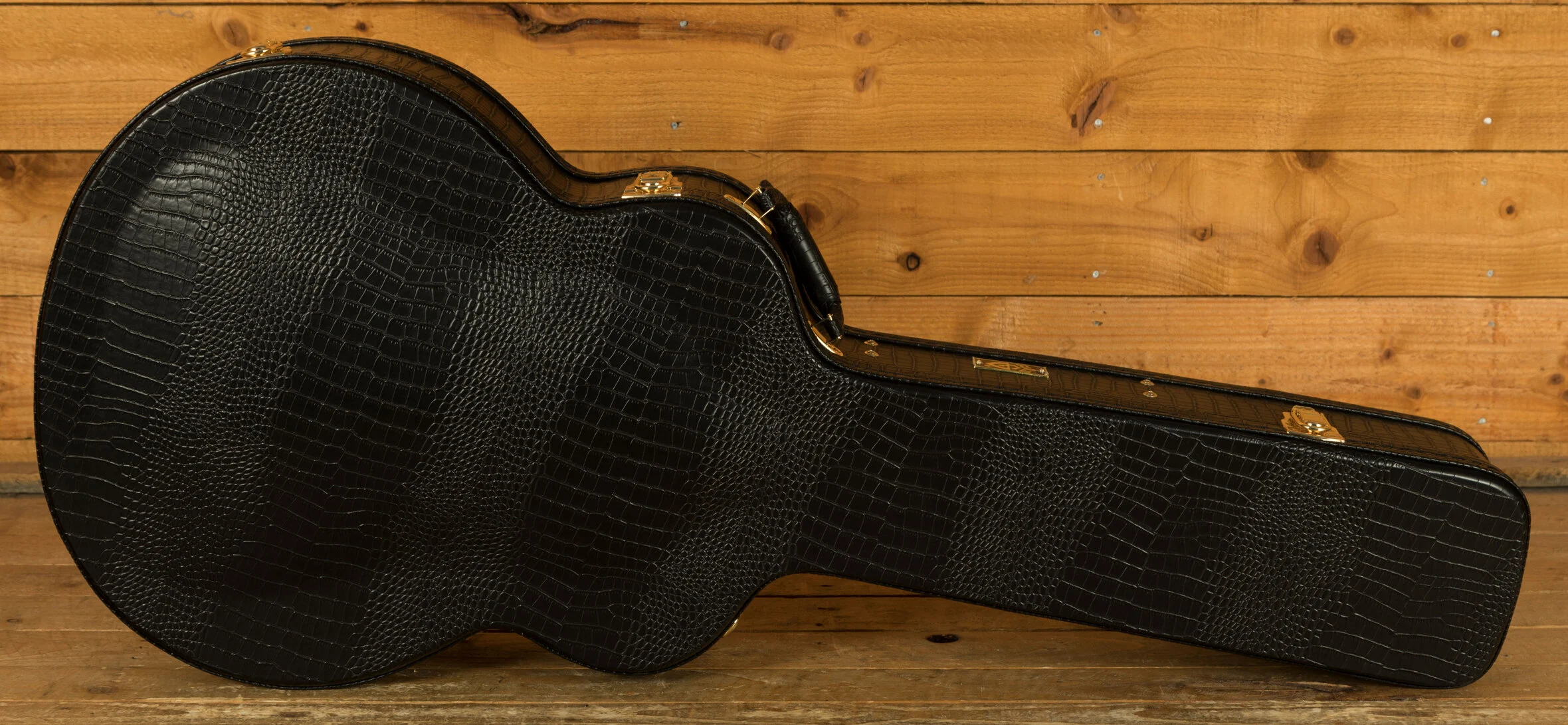 The nut width on this guitar is 48mm and the neck is a C-shape with a 25 5/8" scale length and 12" fingerboard radius, offering a very comfortable feel for most players - not too big and not too small. The saddle and nut are made of bone which allow excellent energy transference between the strings and the wood and the guitar comes complete with a deluxe humidified wooden hard case.