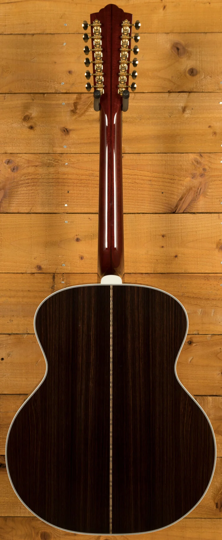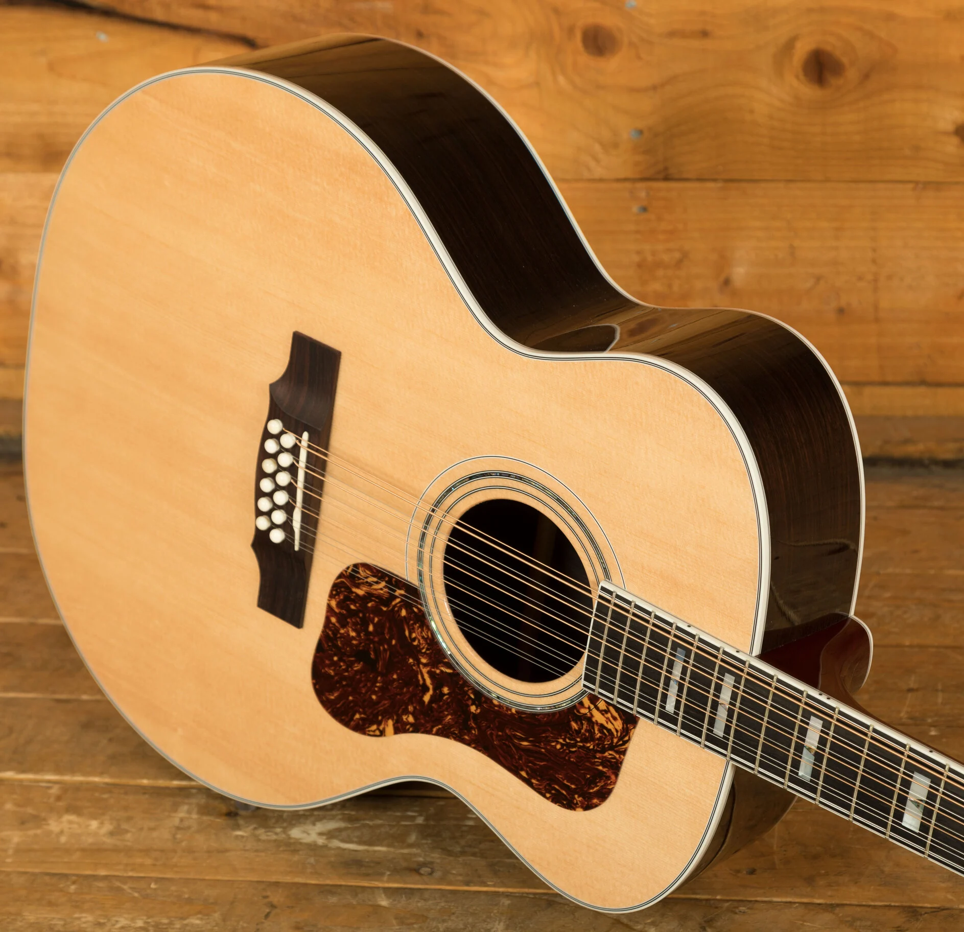 The F-512 brings the quality that always comes with Guild's USA models. The guitar features an all-solid build utilising the classic spruce and rosewood combination. If you have ever played one of Guild's jumbo-sized models, you'll know how impressive they are. They have an awesome thump to the bass and a crispness to the treble. If you prefer things on the more-vintage side, once the strings wear in a little the tone becomes deader and they have so much vibe to them. Inside the guitar we are treated to Adirondack spruce braces, which have been scalloped for a refined tone. The look of the guitar is gorgeous, with an ebony fingerboard having a beautifully dark appearance that really makes the inlays shine out. Both the headstock and fingerboard are bound, the machine heads are gold and the finish is a hand-applied gloss nitrocellulose. This Guild really does look and sound the part - not surprising seeing as it's a model that's been chosen by Tom Petty, David Gilmour and Stevie Ray Vaughan, to name just a few.