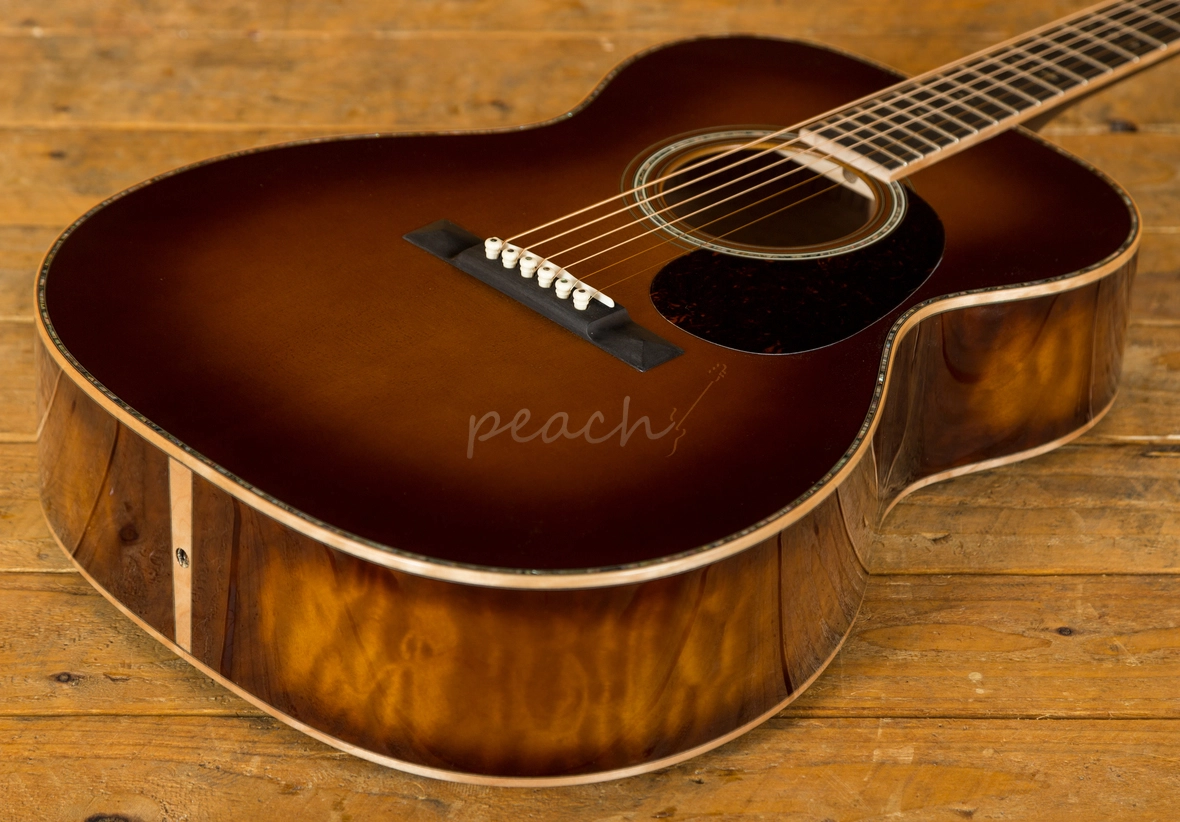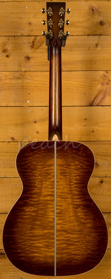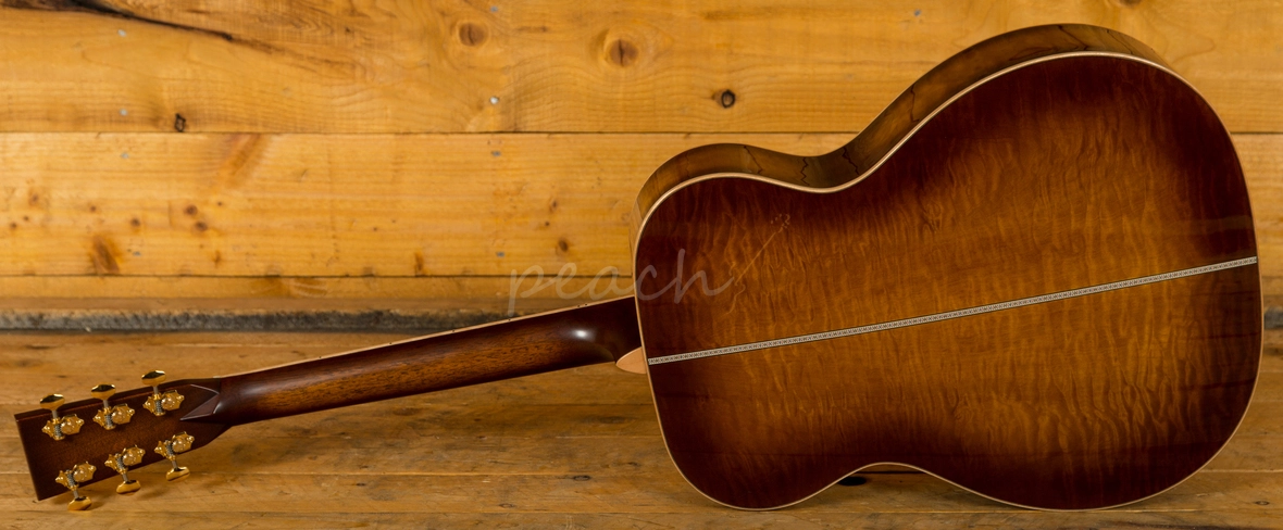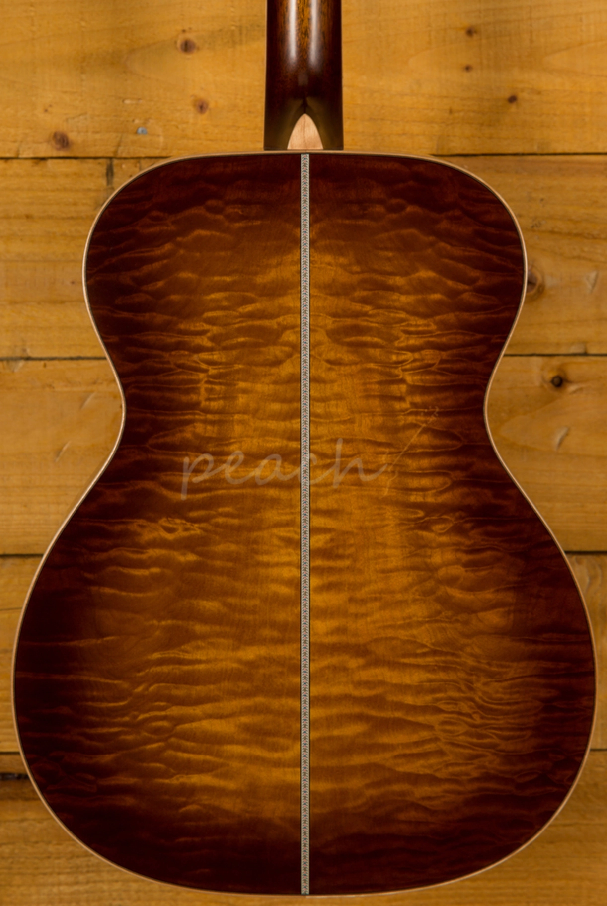 With an incredible Engelmann Spruce top, this 000-14 Fret offers a really dynamic and rounded tone. Engelmann Spruce is clear and light, known for having great projection. Pair that with the Quilted Maple back and sides and you have a tonal dream team, its visually and tonally stunning. The 14th fret join allows for great access up the neck and a perfectly poised and balanced playing experience.