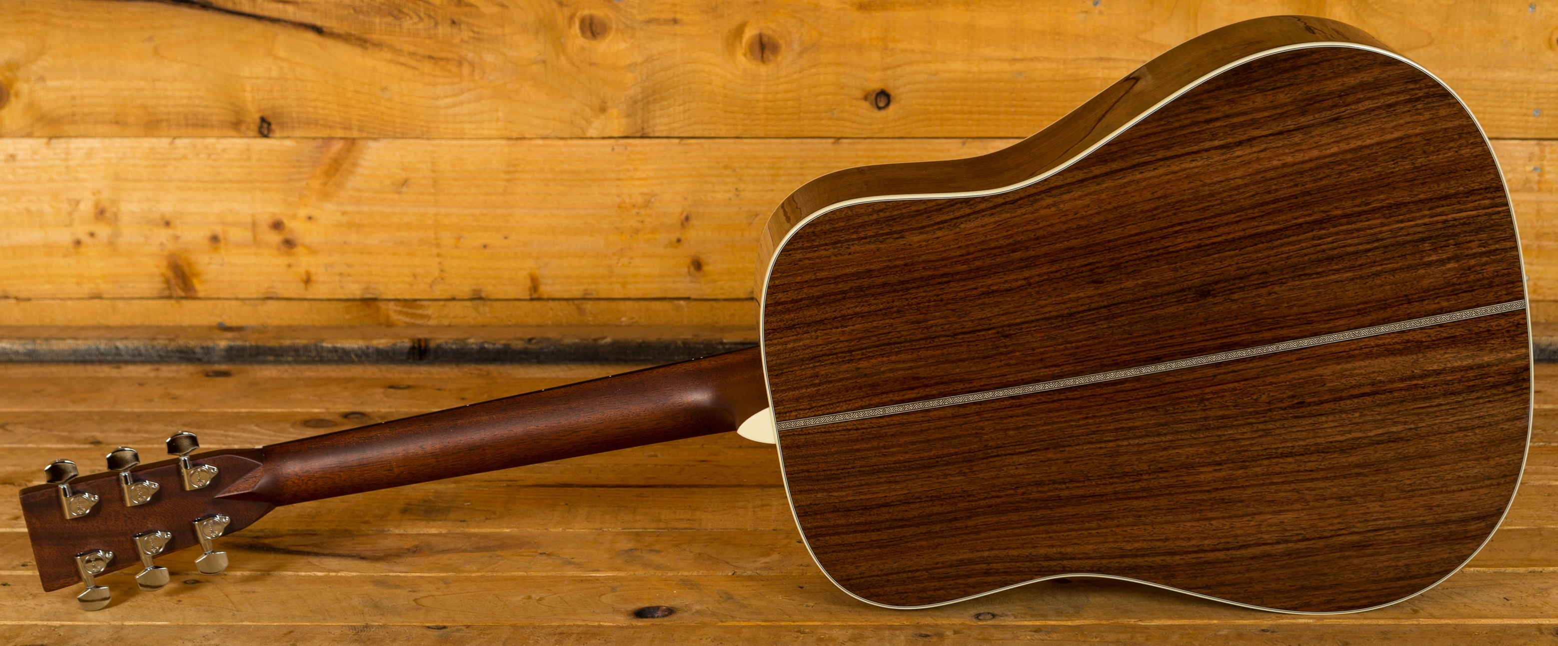 With its "Herringbone" trim and Custom Shop grade Rosewood back and sides, the D-14 features an Adirondack spruce top with scalloped braces. The top also has the amazing VTS treatment, which allows Martin to make a brand new guitar sound like an 80 year old vintage instrument. The top is heat treated to remove the moisture, which allows it to have the quickest response and the most detailed tone. This gives the most authentic look and a tone that's akin to a vintage guitar but with the stability of a modern guitar.