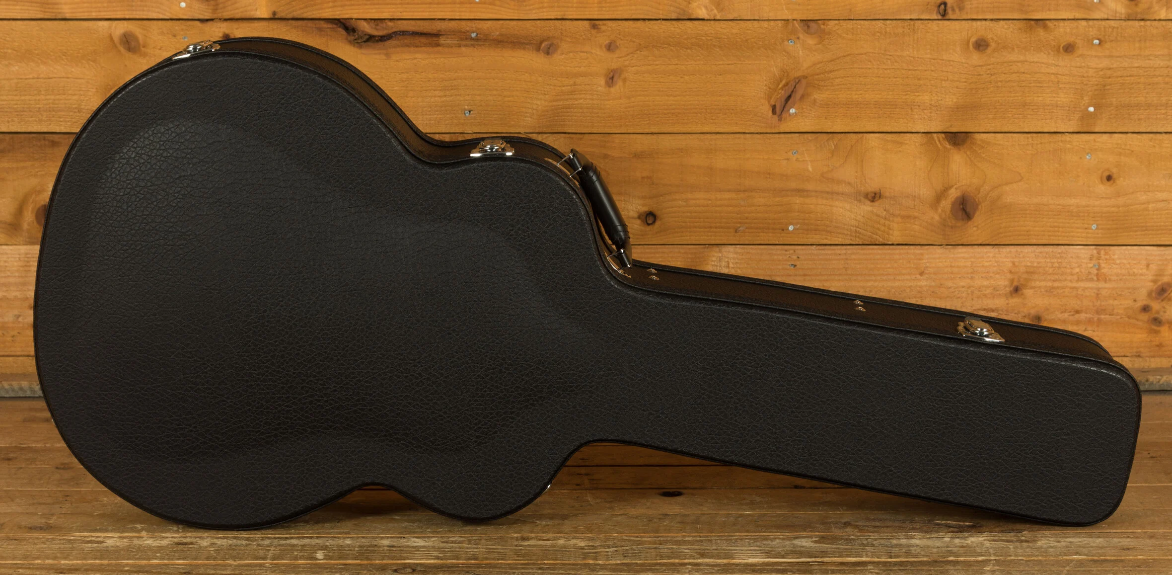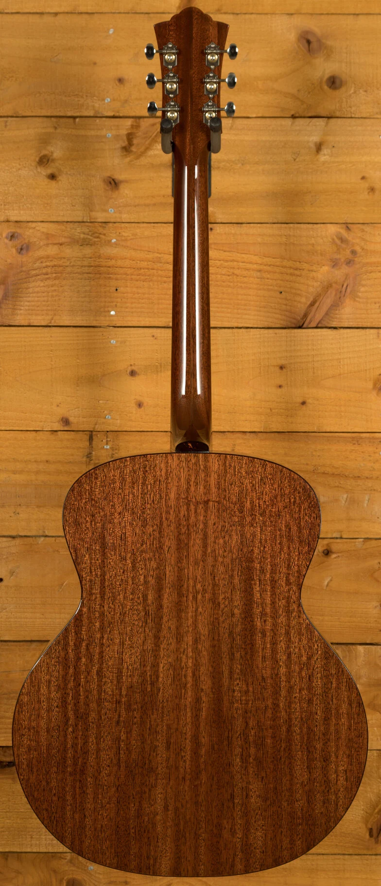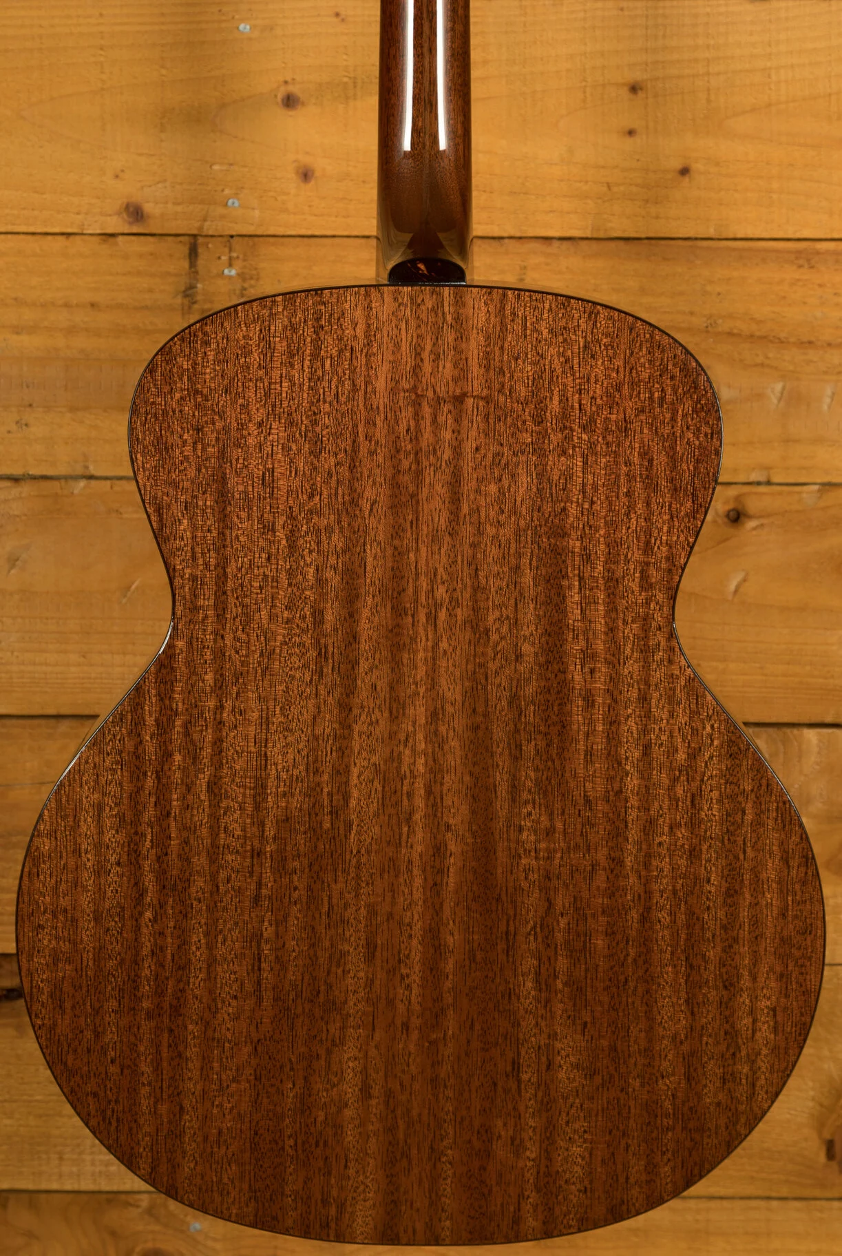 The nut width on this guitar is 43mm and the neck is a C-shape, offering a very comfortable feel for most players - not too big and not too small. The saddle and nut are made of bone which allow excellent energy transference between the strings and the wood and the guitar comes complete with a deluxe humidified wooden hard case.