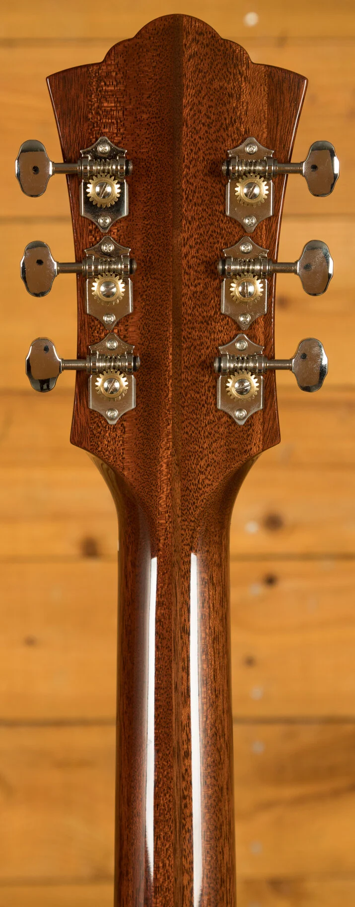 The F-40 Traditional brings the quality that always comes with Guild's USA models. The guitar features an all-solid build utilising the classic spruce and mahogany combination. If you have ever played one of Guild's jumbo-sized models, you'll know how awesome they are. They have an impressive thump to the bass and a crispness to the treble. If you prefer things on the more-vintage side, once the strings wear in a little the tone becomes deader and they have so much vibe to them. Inside the guitar we are treated to Adirondack spruce braces, which have been scalloped for a refined tone. The look of the guitar is gorgeous, featuring a gloss nitrocellulose finish.