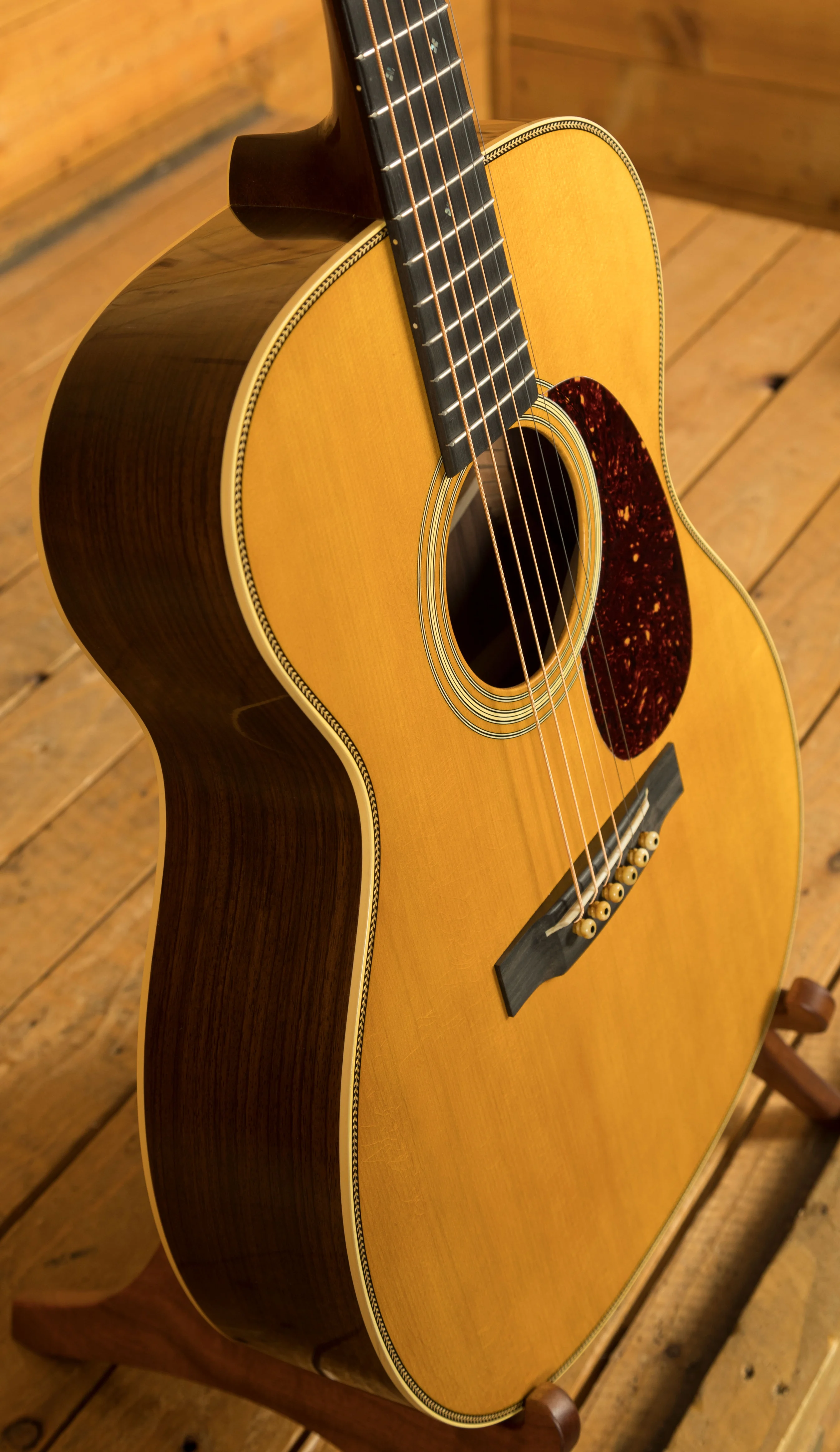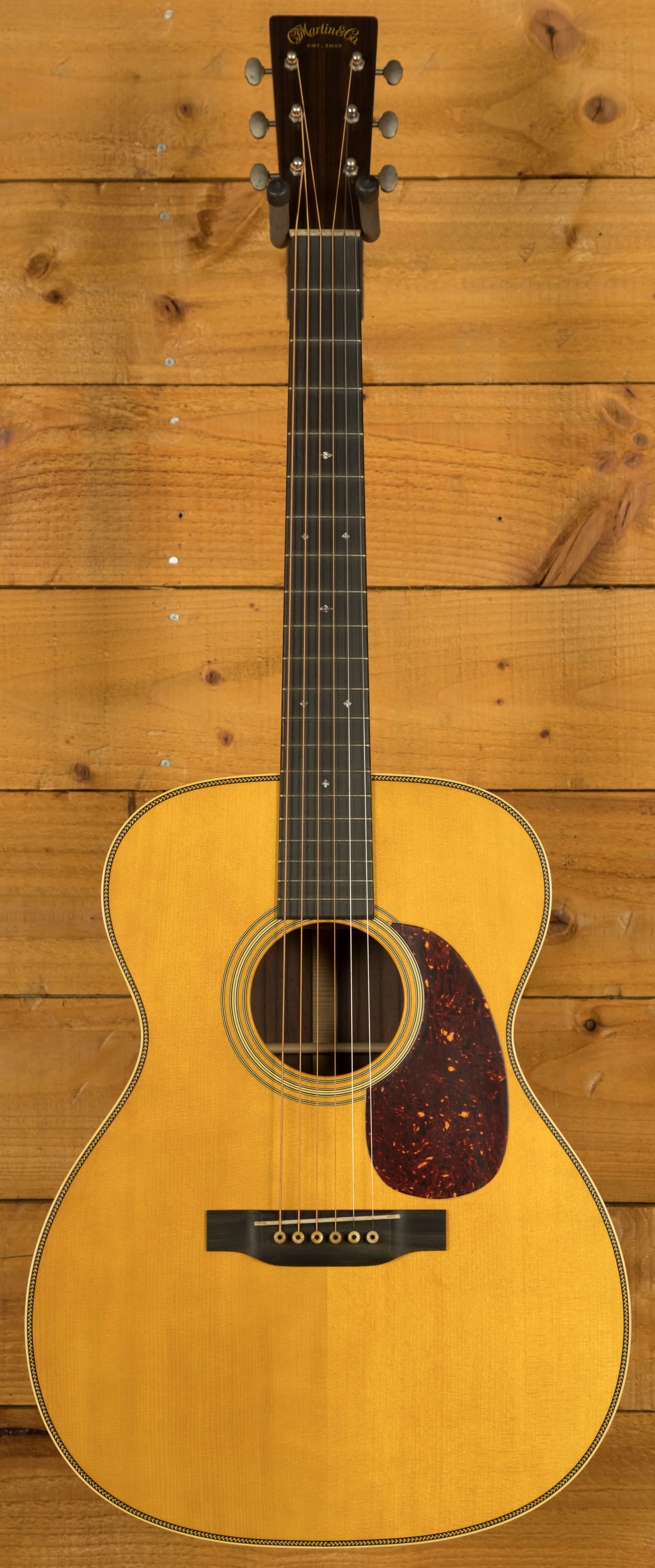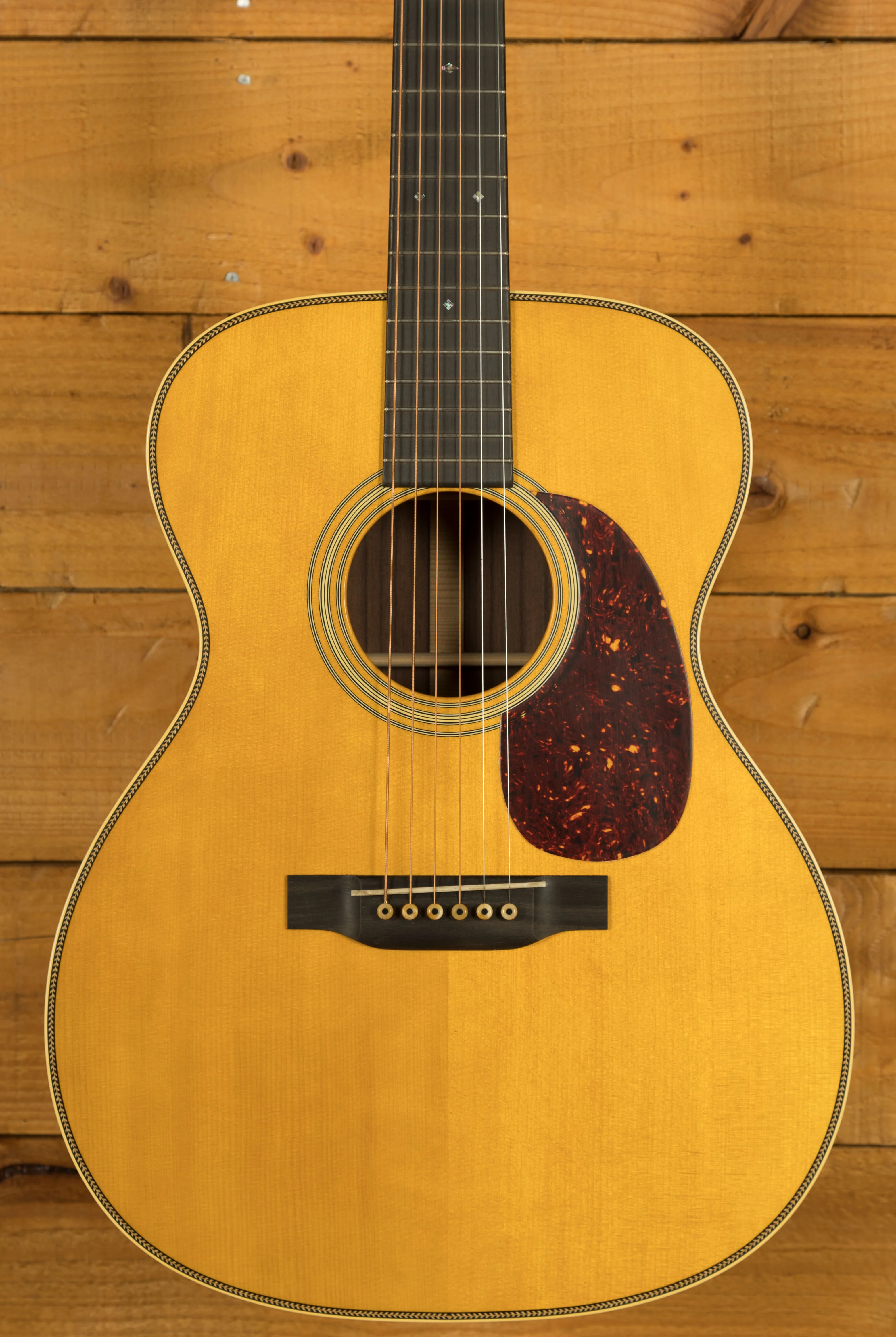 The C.F Martin Custom Shop 000-28 1937 offers authentic vintage styling, every element of this guitar has been designed to offer a true vintage playing experience. With a thin Adirondack Spruce top and premium East Indian Rosewood back and sides, beautifully aged to give the aesthetic qualities of a well loved and cherished instrument passed down through the generations. Thanks to the Authentic Pattern X-brace the Custom Shop Expert 00-28 is equally at home fingerpicking or strumming big, brash chords. The stunning Spruce top is topped off with Antique White binding, a 28 Multi-Stripe Rosette and a bold Herringbone inlay, it looks super slick.