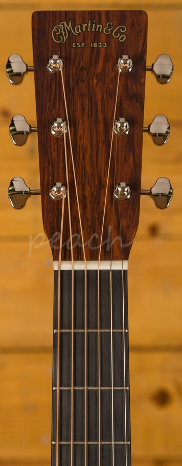 The neck is an absolute dream to play. With a Modified Low Oval neck shape, 16” radius, 24.84” scale length and a 1 11/16” nut width, this Martin is supremely comfortable and smooth underhand. The Black Ebony fingerboard is the perfect partner for this neck; beautifully crafted it’s a real treat to play.