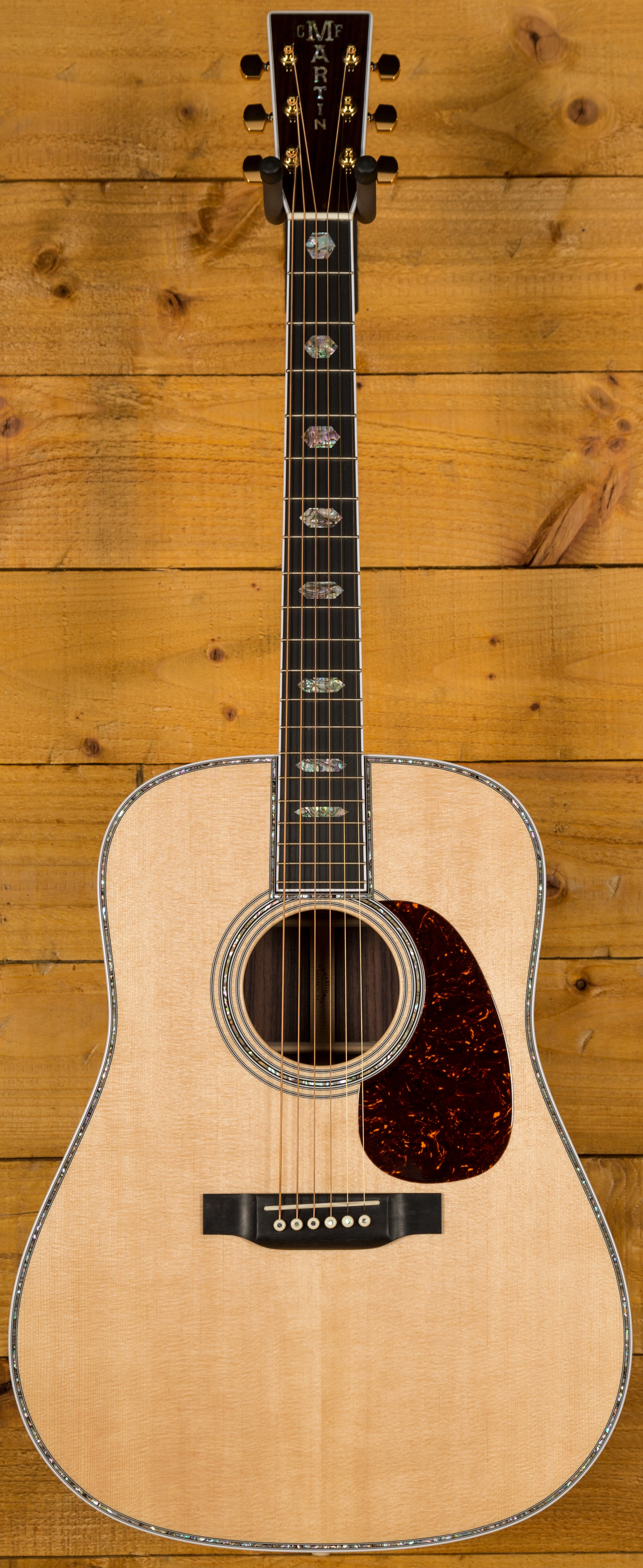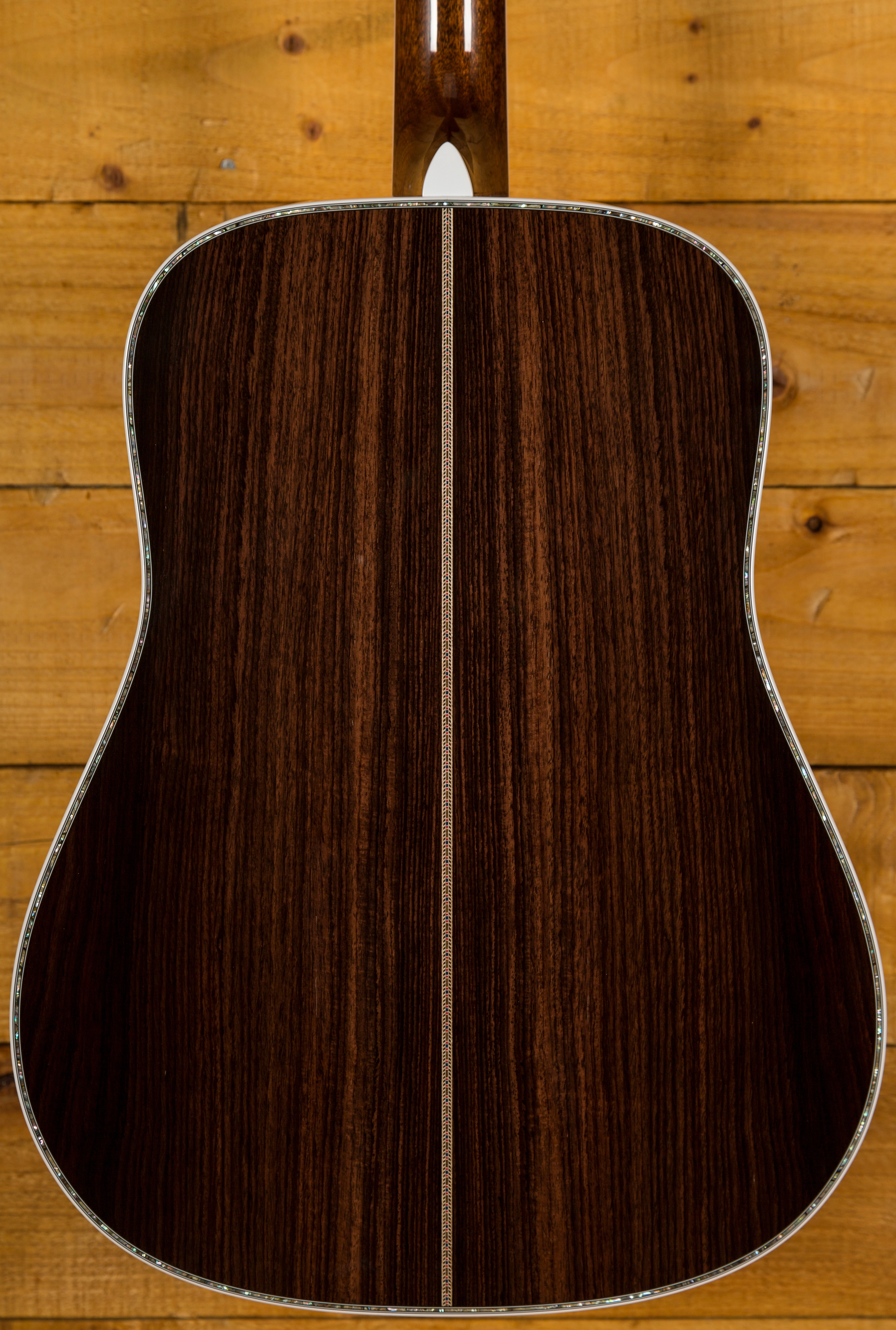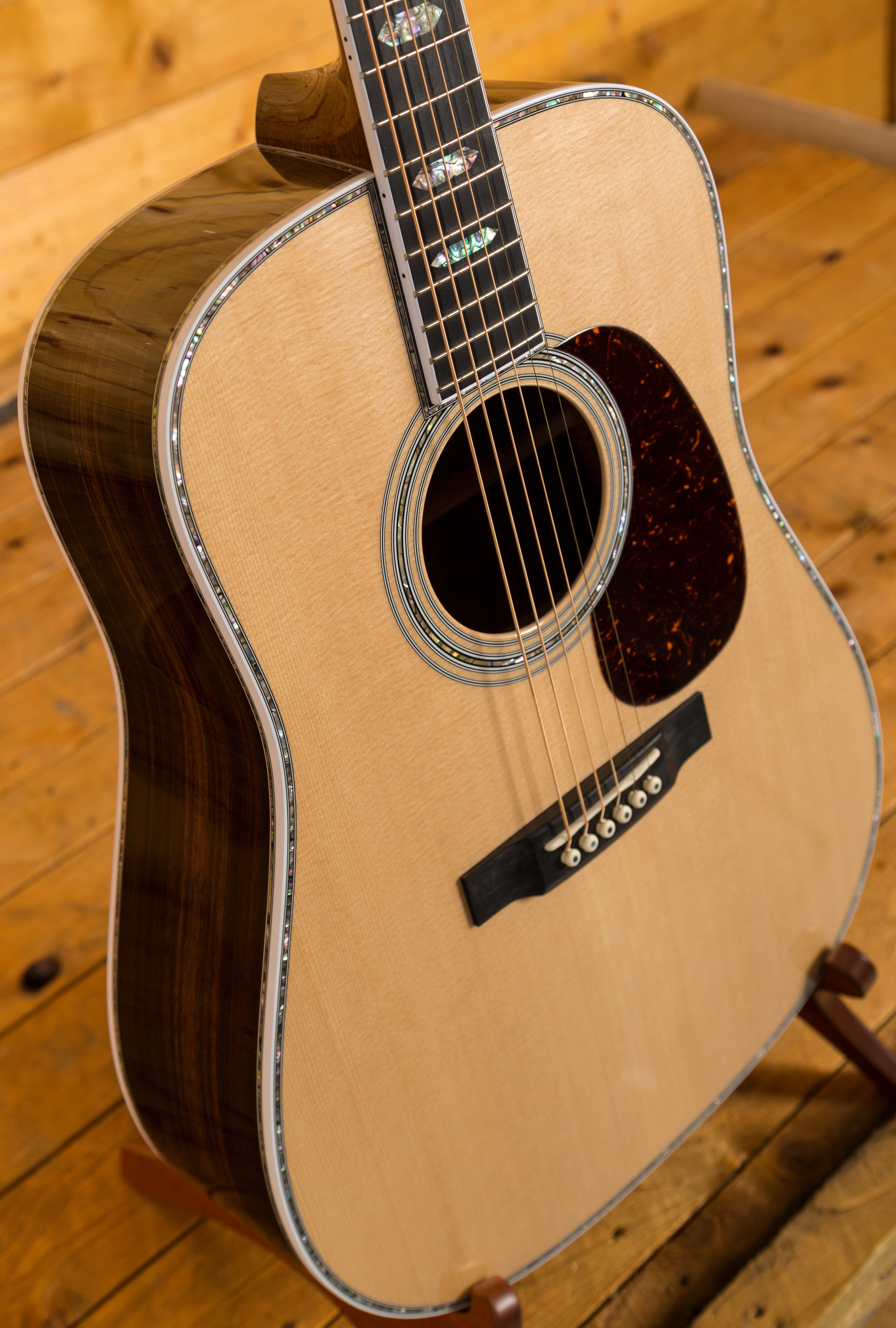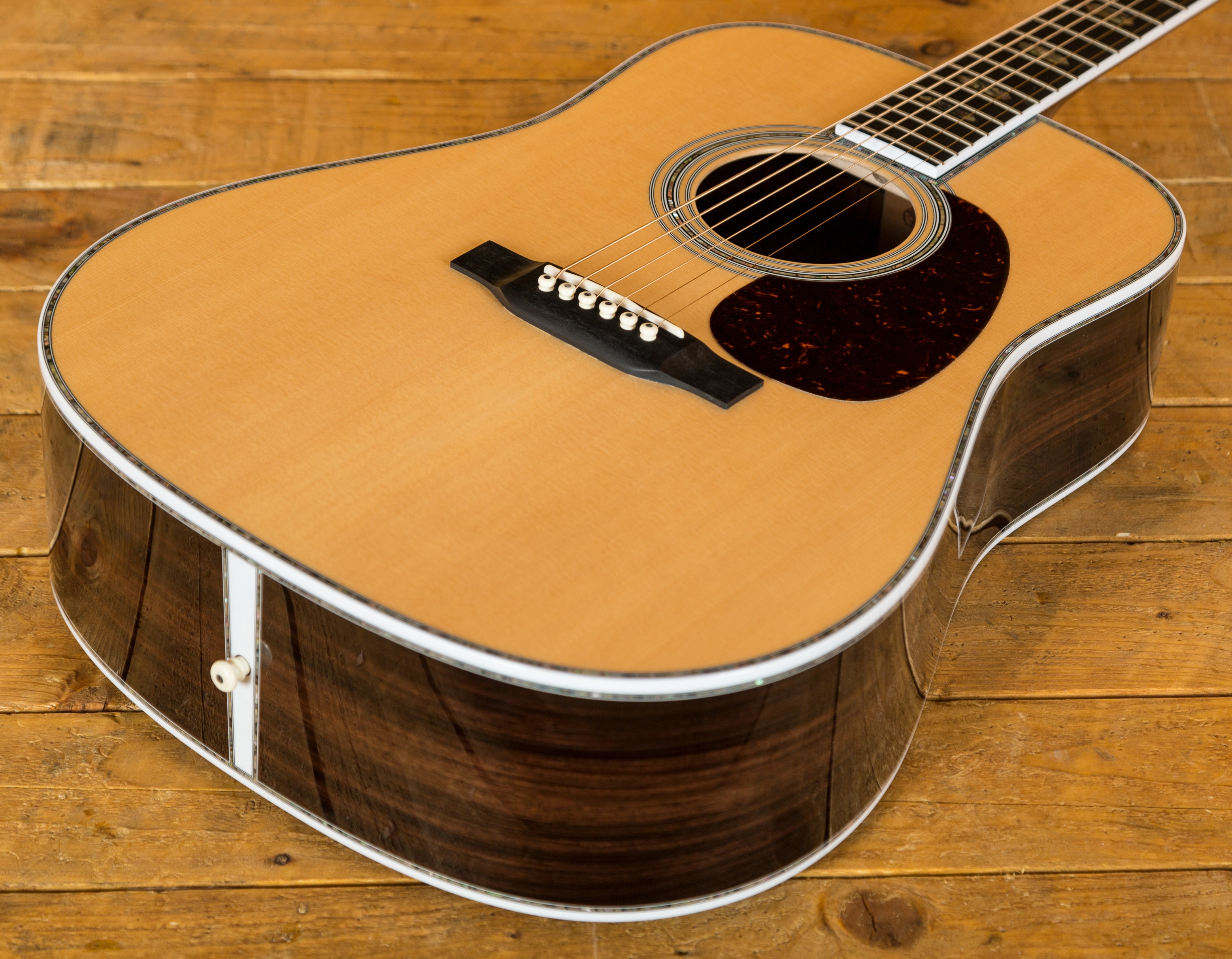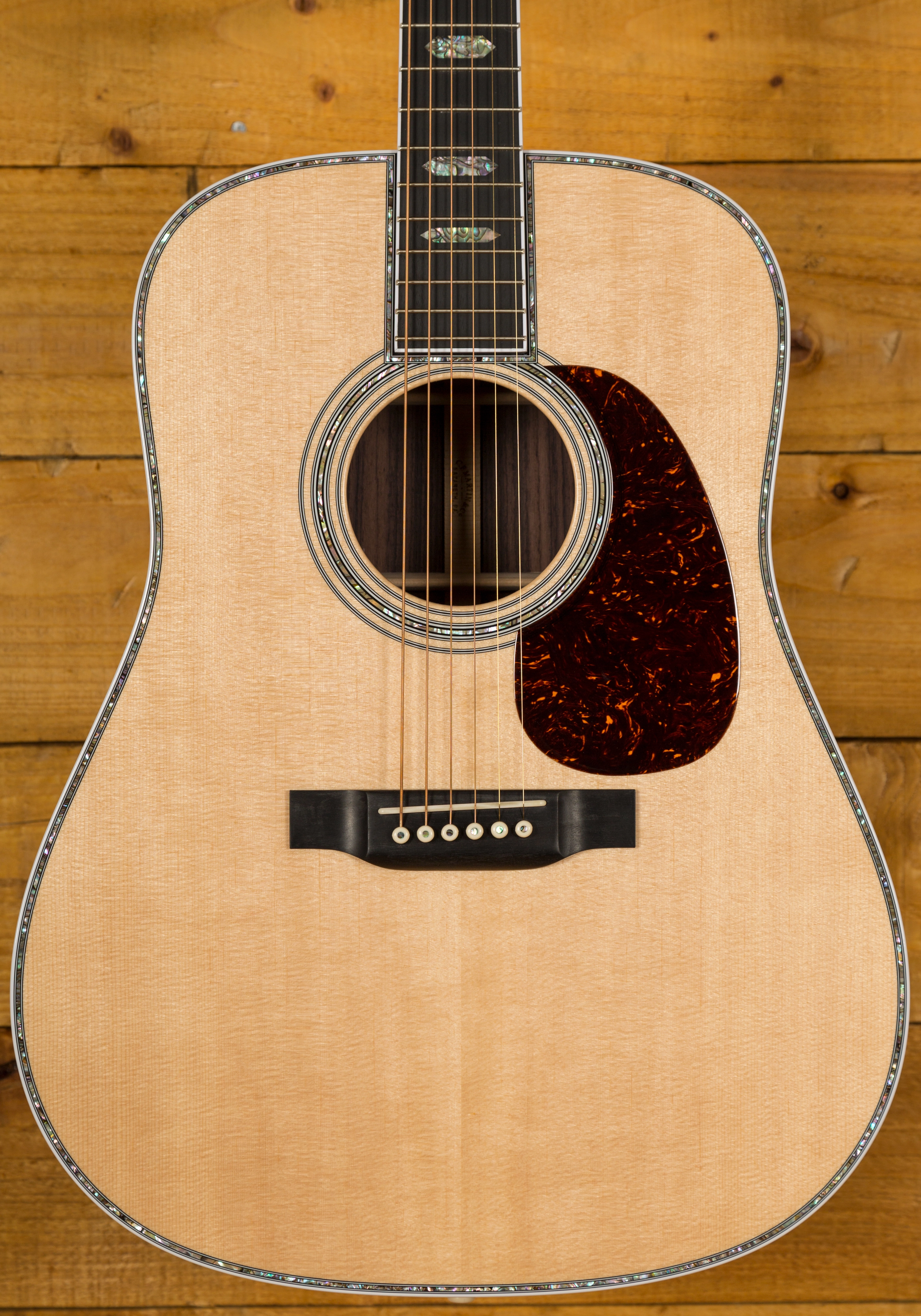 With a solid Sitka Spruce top and East Indian Rosewood back and sides, the Martin D-45 is equally at home fingerpicking or strumming big, brash chords. With its rich tonal variation and lovely organic feel, it's the perfect partner for players who need a guitar that can compete right across the board. The scalloped Sitka Spruce bracing offers great stability and vintage tonality while the stunning Abalone in the binding and rosette offers a real feel of luxury