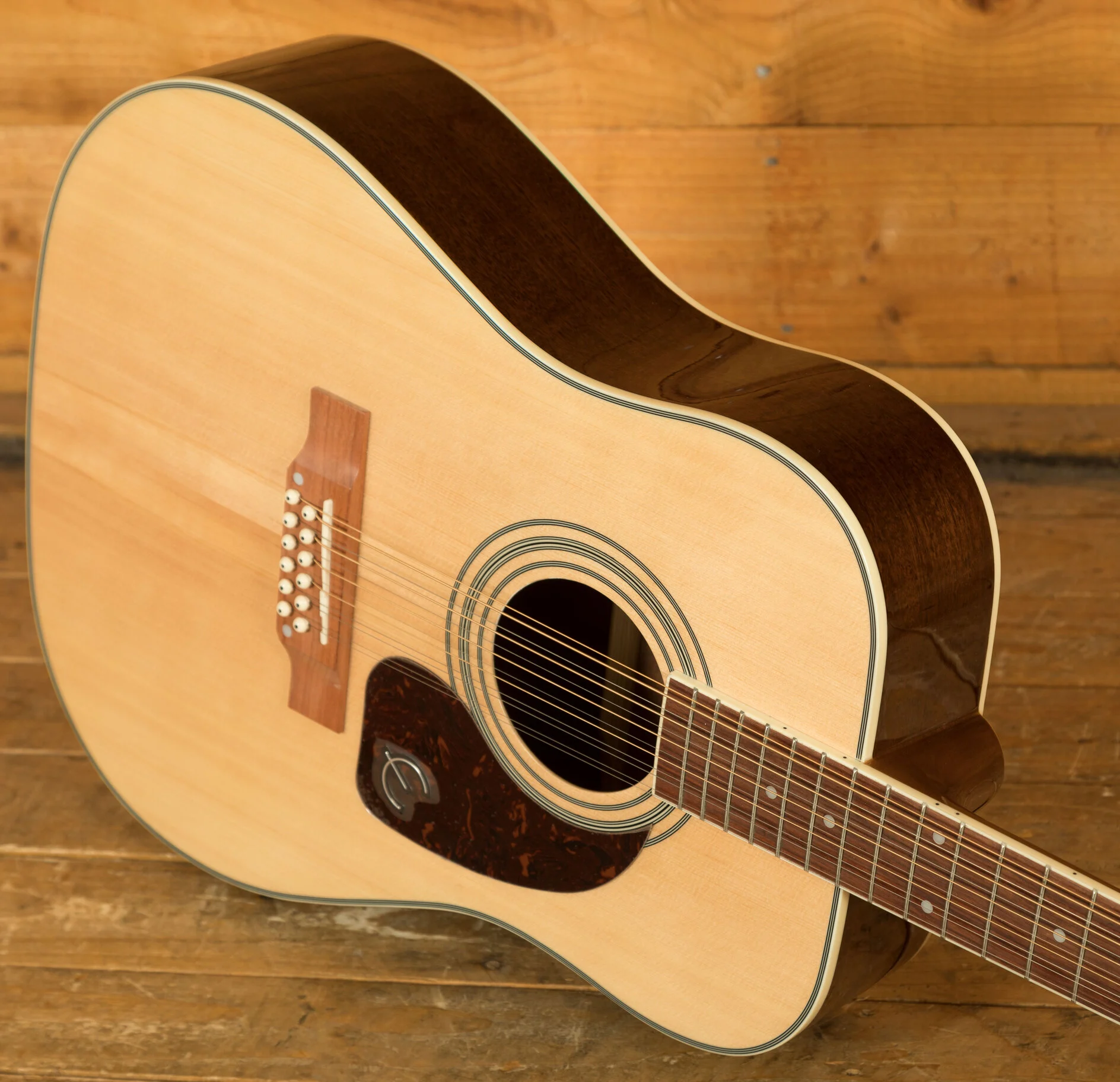 The Epiphone Songmaker DR-212 is a 12-string acoustic guitar that offers the classic sound and reliable craftsmanship associated with Epiphone. Designed specifically to handle the tension of 12 strings, this guitar ensures enhanced durability while delivering a resonant and balanced sound that suits a variety of musical styles, including blues, folk, rock, and country.