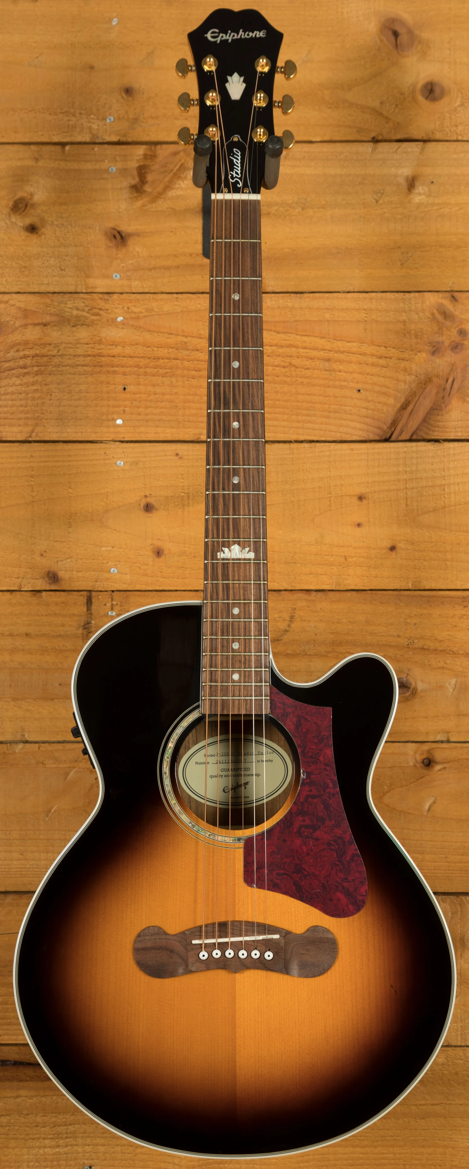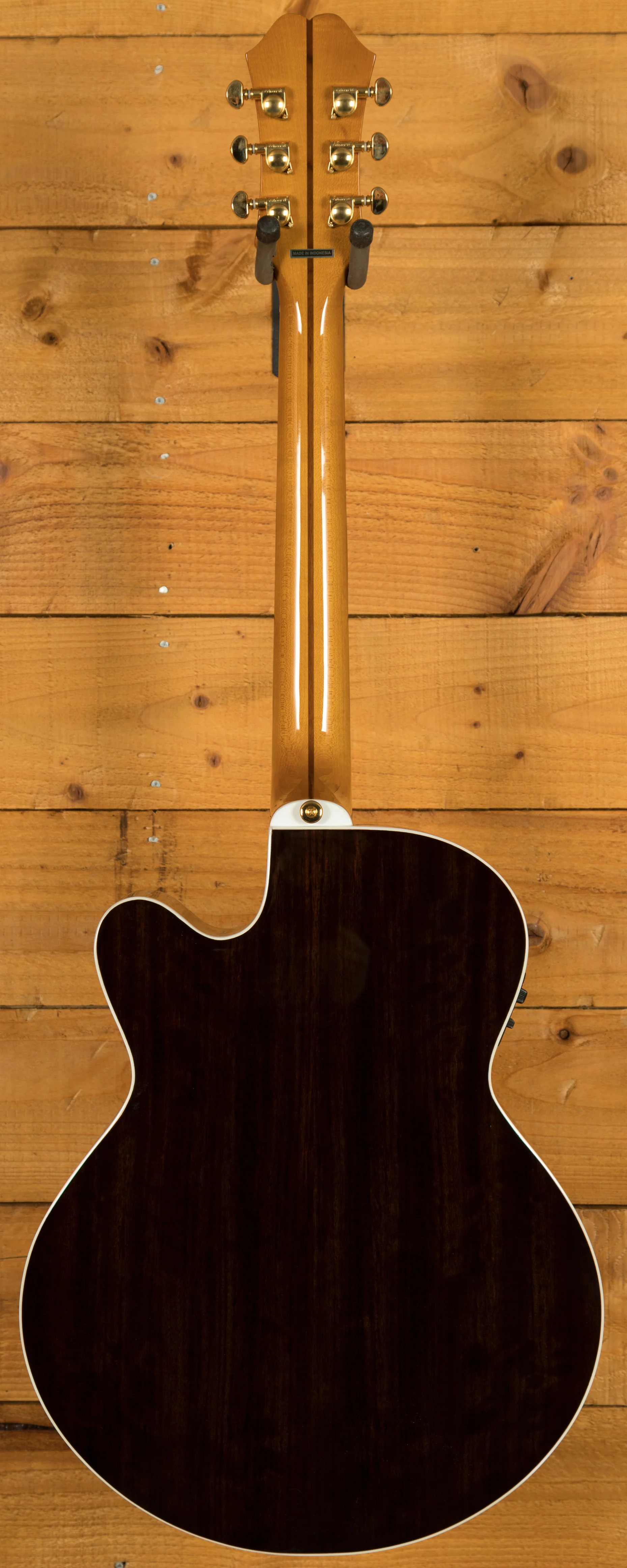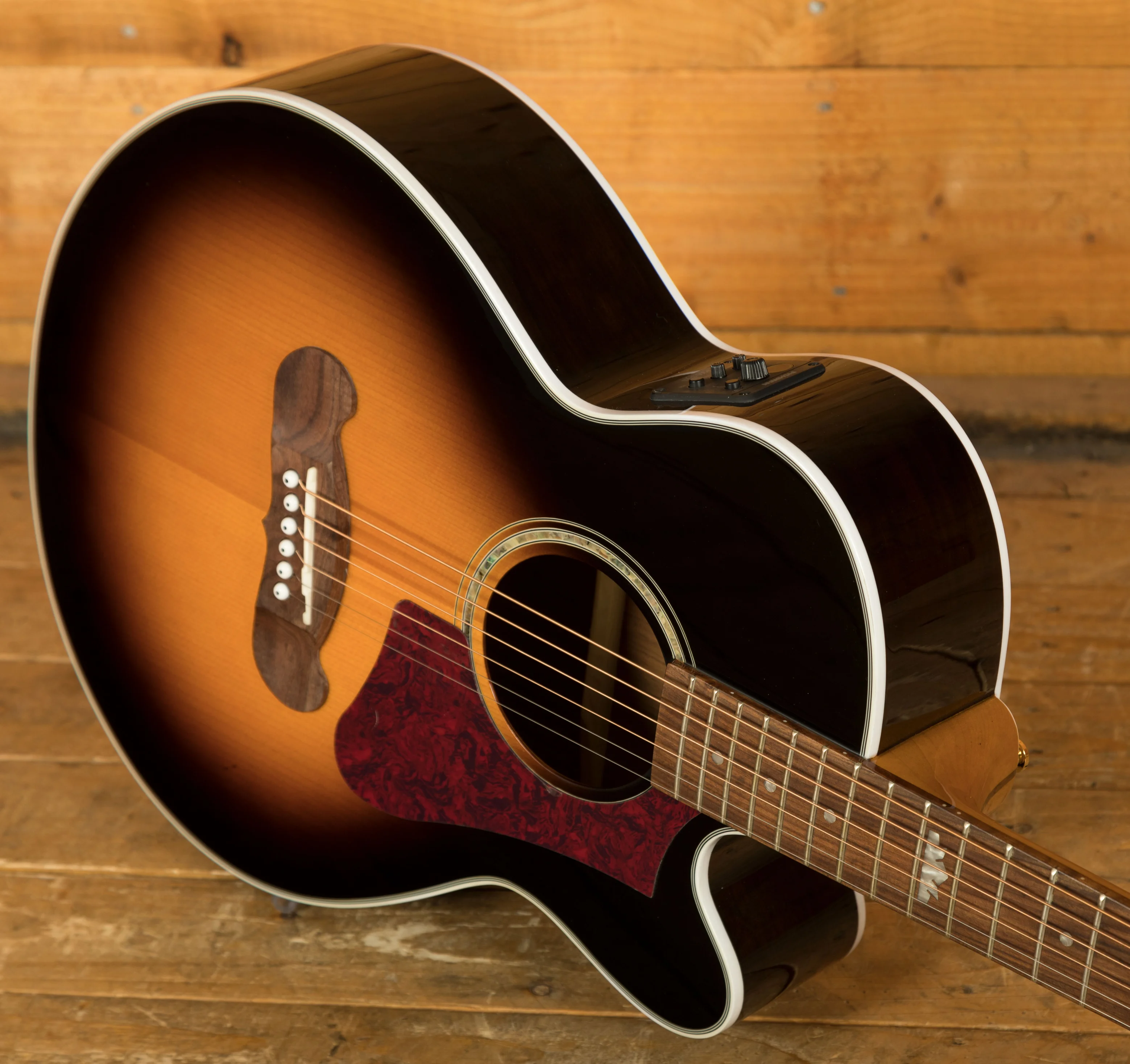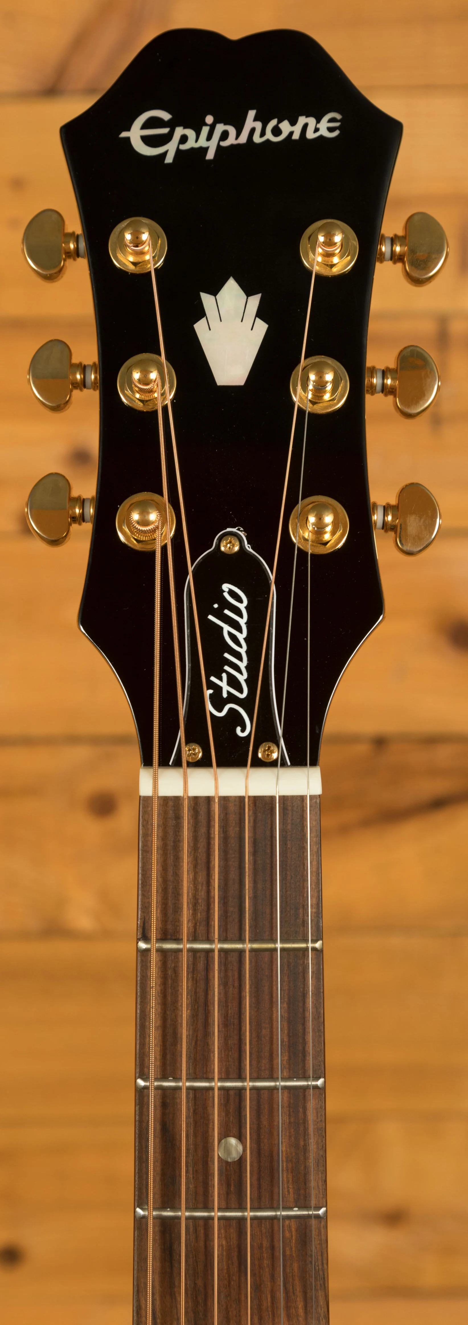 Completing the exquisite design of the J-200 EC Studio Parlor is the imitation tortoise pickguard, adding a touch of elegance and protection to this extraordinary instrument. Epiphone's attention to detail is evident in every aspect of this guitar, making it a true work of art that is sure to captivate both musicians and enthusiasts alike.