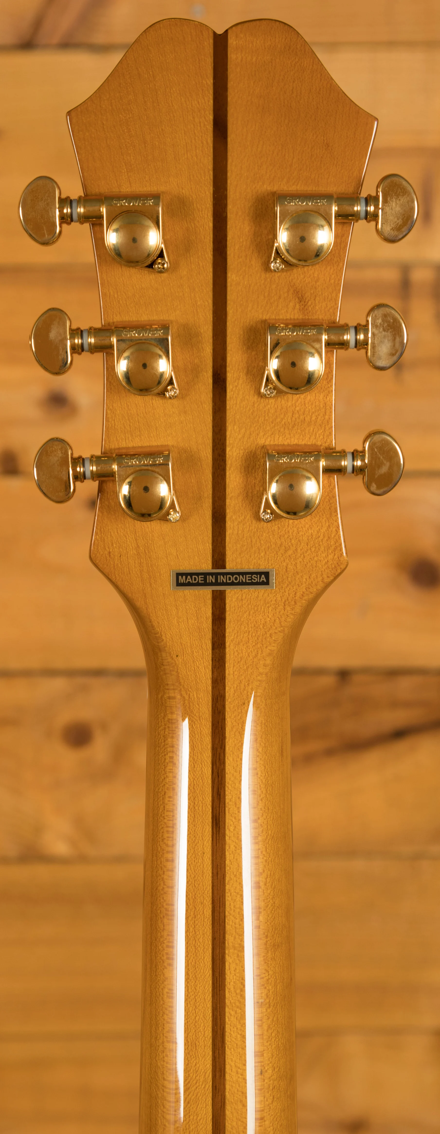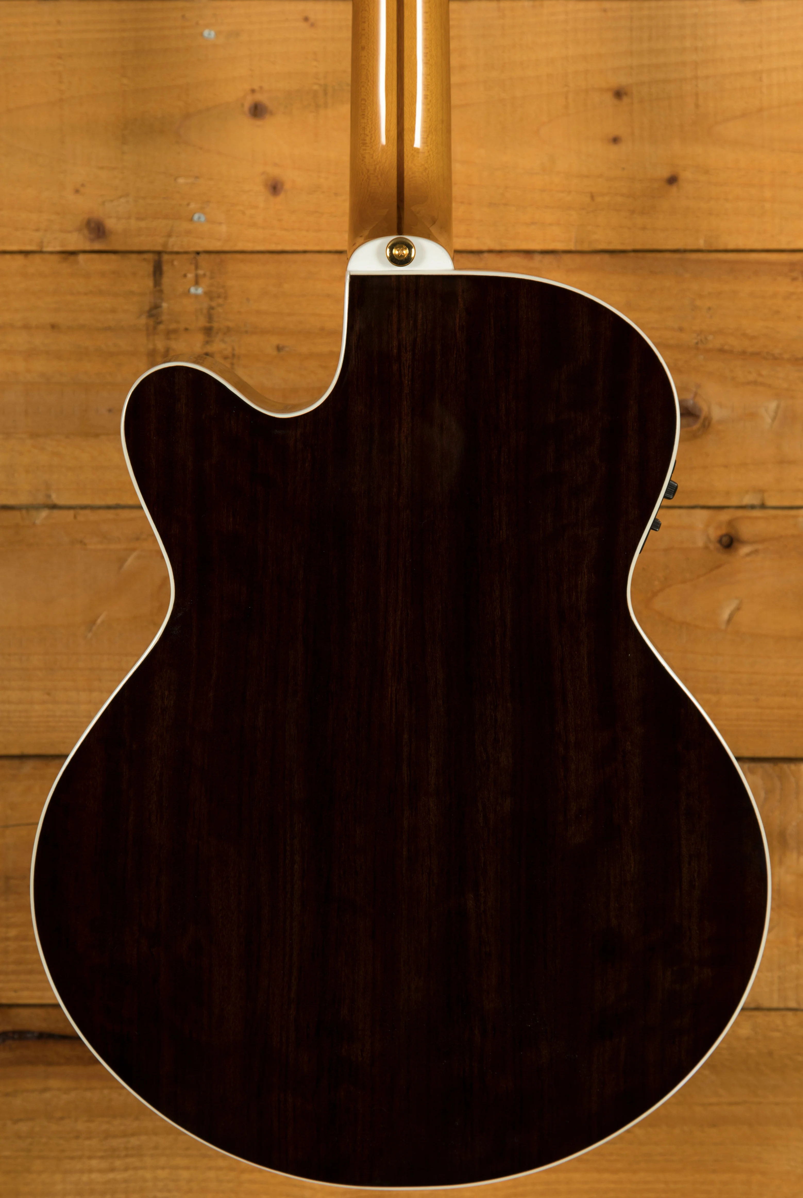 Epiphone goes the extra mile in crafting the J-200 EC Studio Parlor with premium materials. The nut and compensated saddle are made of bone, ensuring optimal string spacing and intonation for enhanced playability and tonal accuracy. The bridge, also made of Pau Ferro, further enhances the guitar's resonance and sustain.