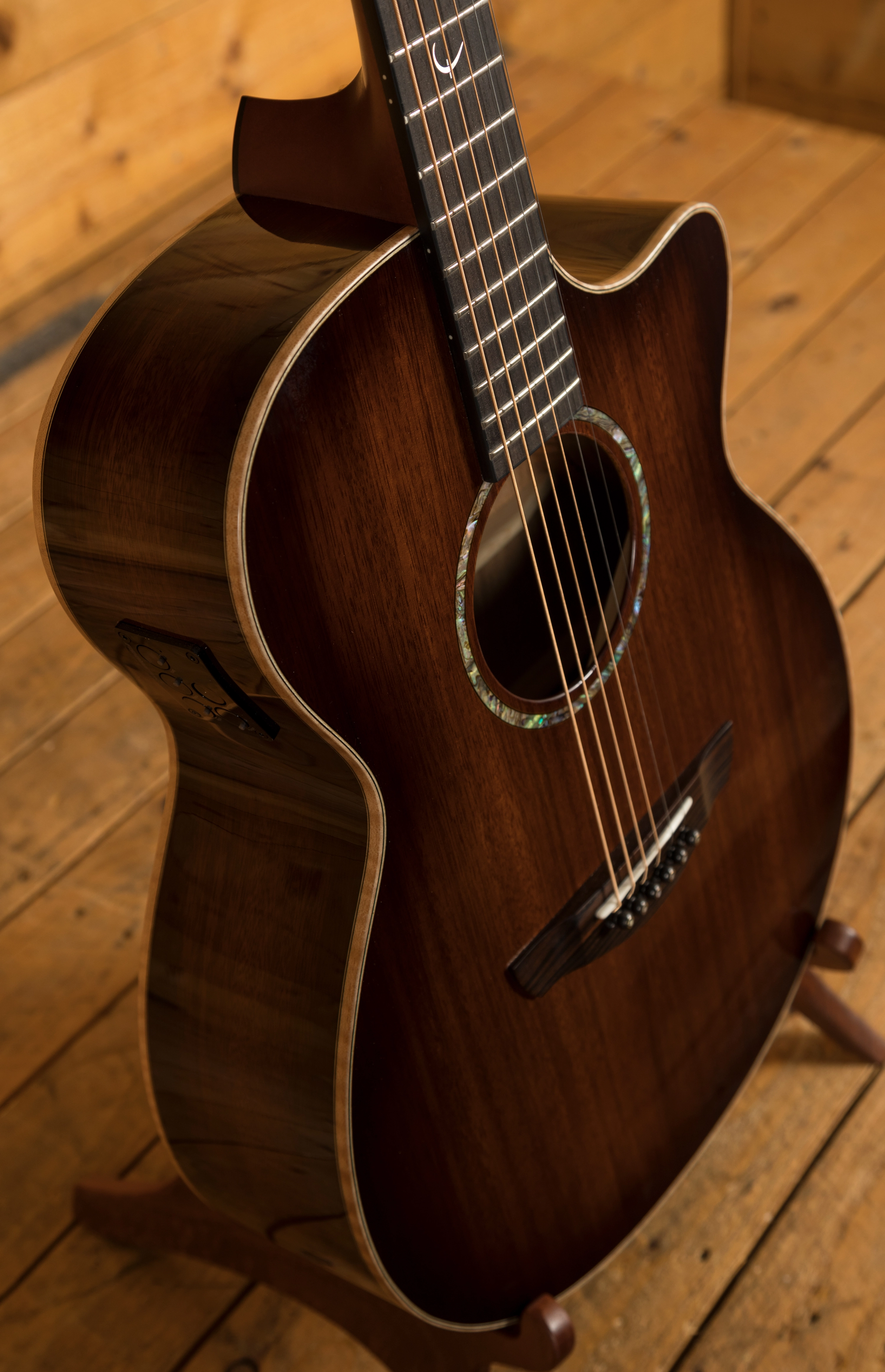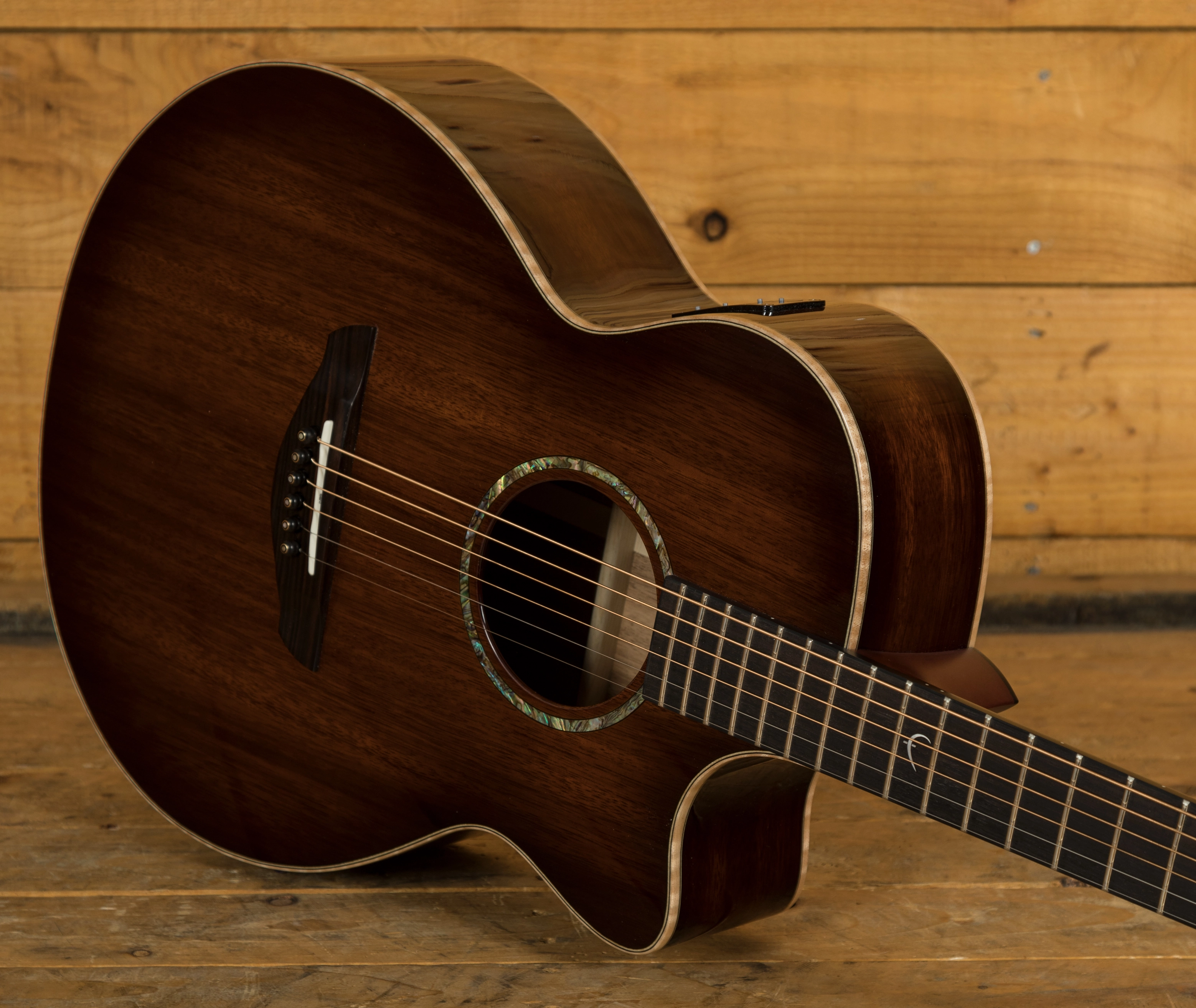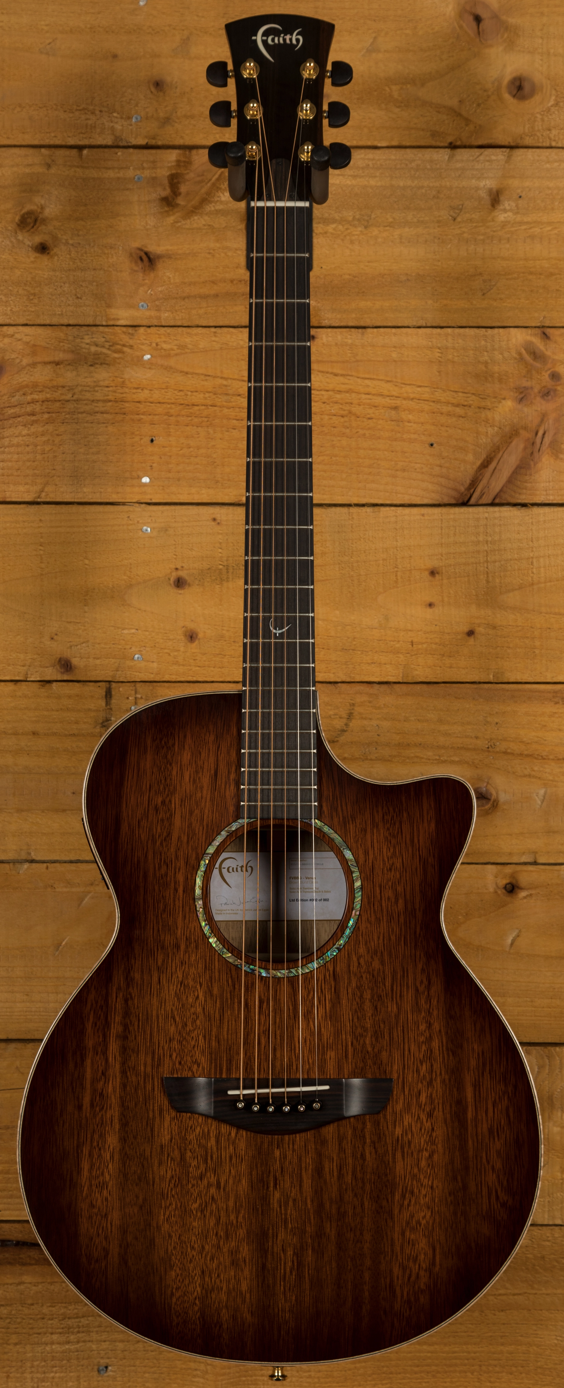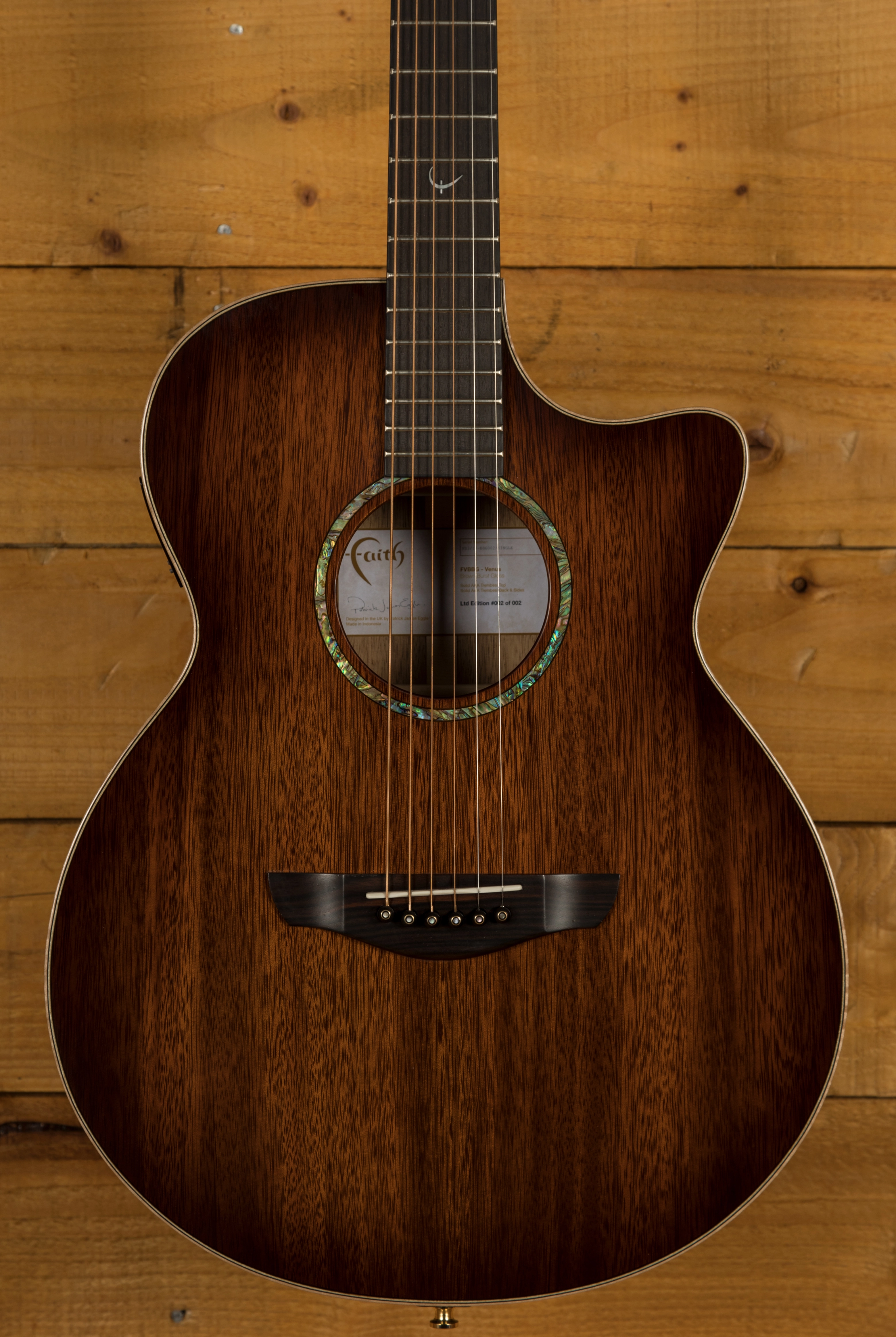 This Venus Trembesi Brown Burst prototype features a AAA Grade Trembesi top, back and sides. Indigenous to Indonesia, where the Faith workshops are based, this beautifully grained, exotic wood sits comfortably between the tonal offerings of Mahogany and Rosewood. This guitar was a prototype for the ever popular Blood Moon Series. There are some very minor marks on the top of this guitar.