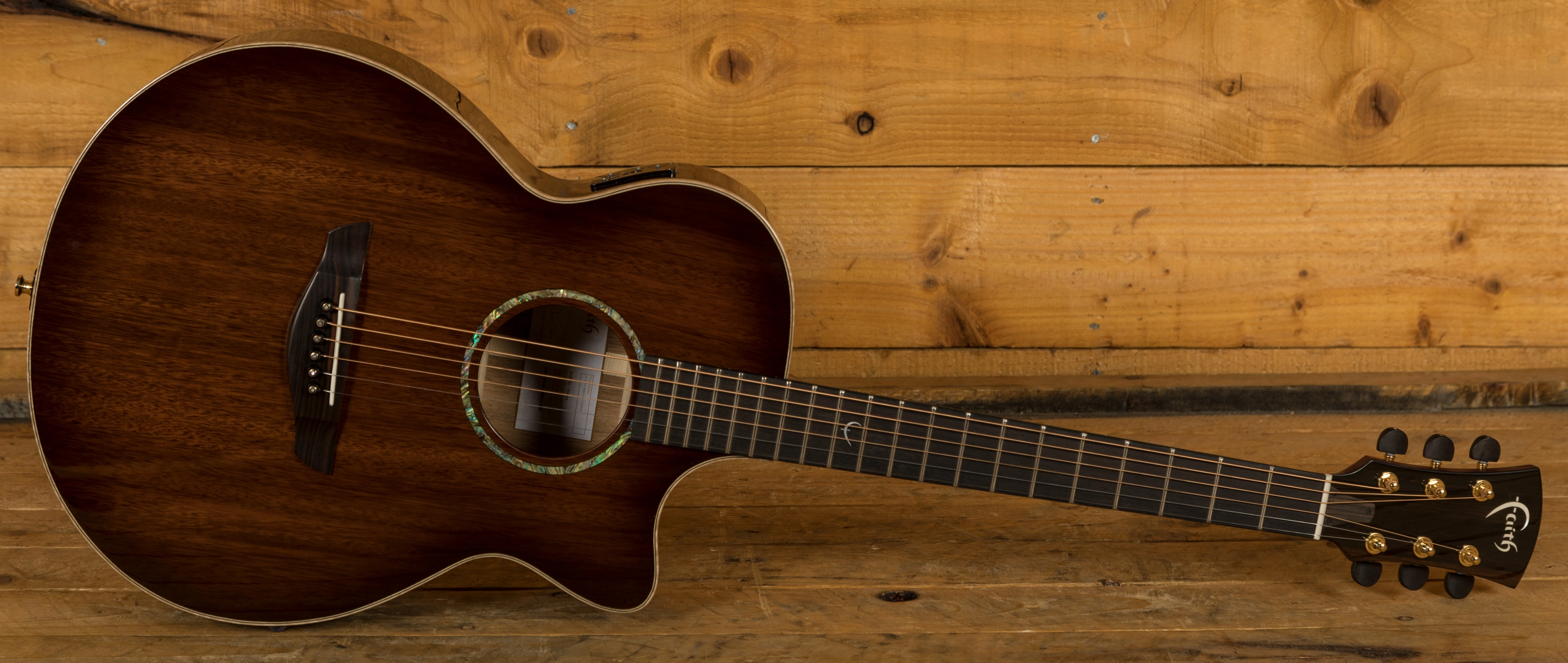 A Mahogany neck boasts an impressive Macassan Figured Ebony fingerboard with the signature Faith mother of pearl 'F' at the 12th fret but does feature a small mark on the back. With a Fishman preamp and pickup, this guitar is ready to hit the stage. Delivering incredible clarity and definition, it's the perfect solution for the gigging musician.